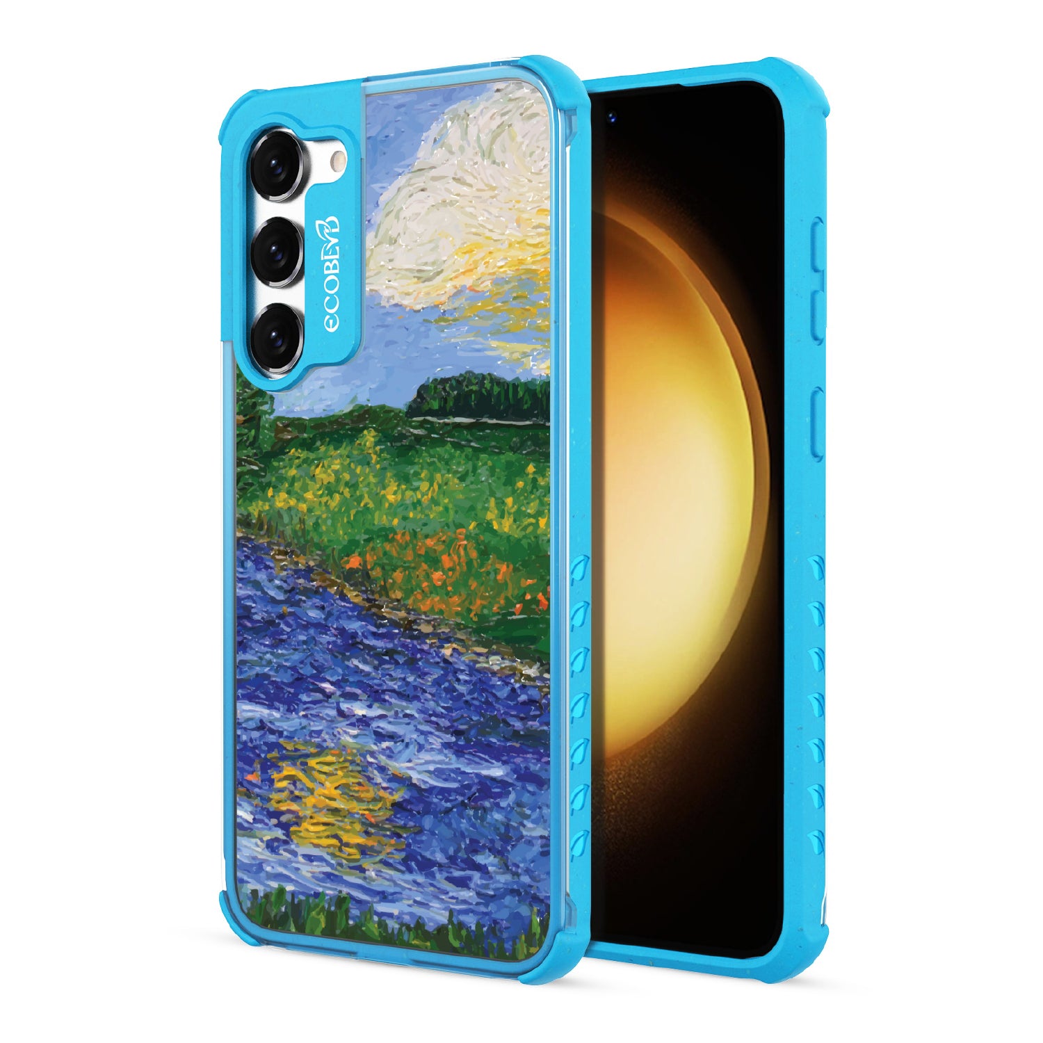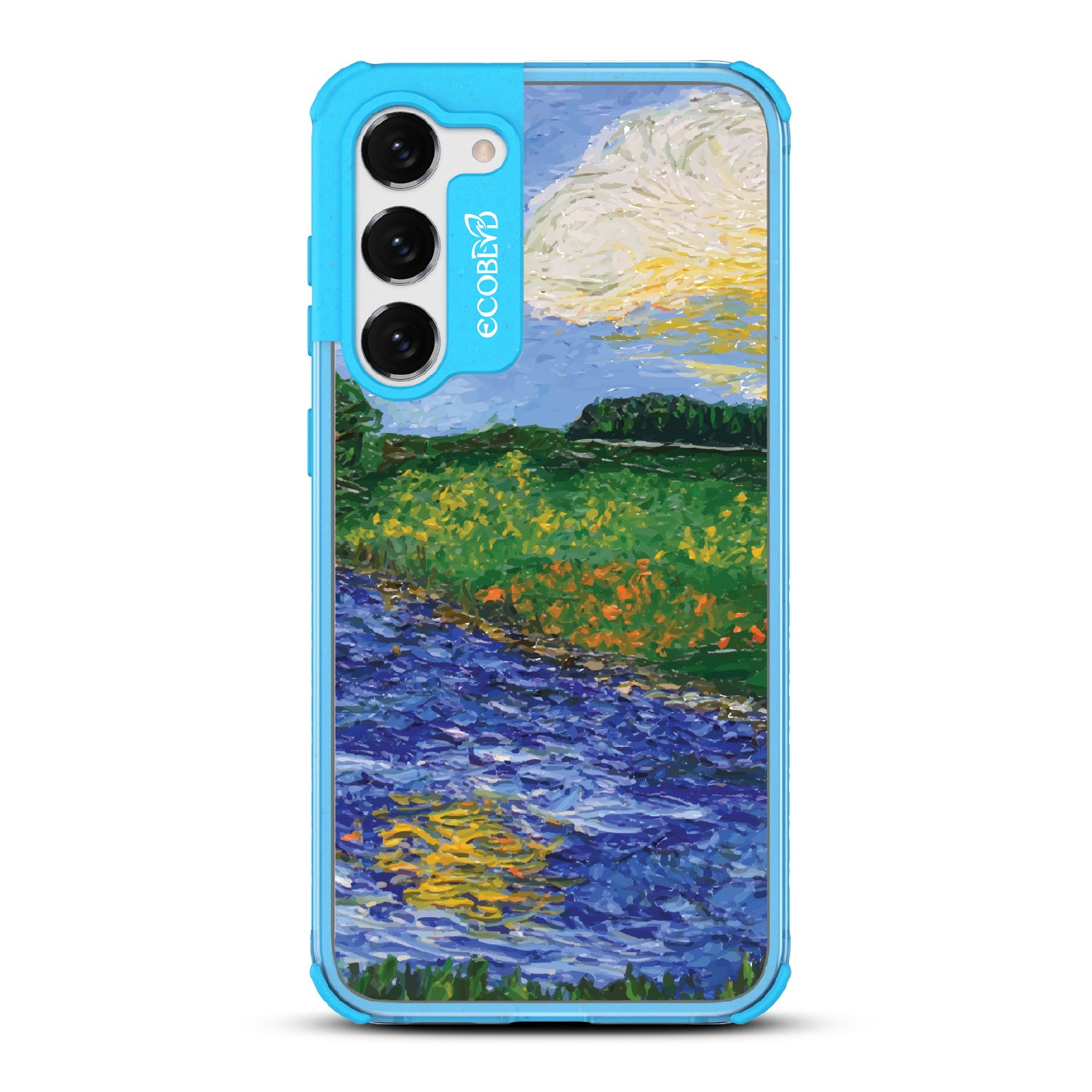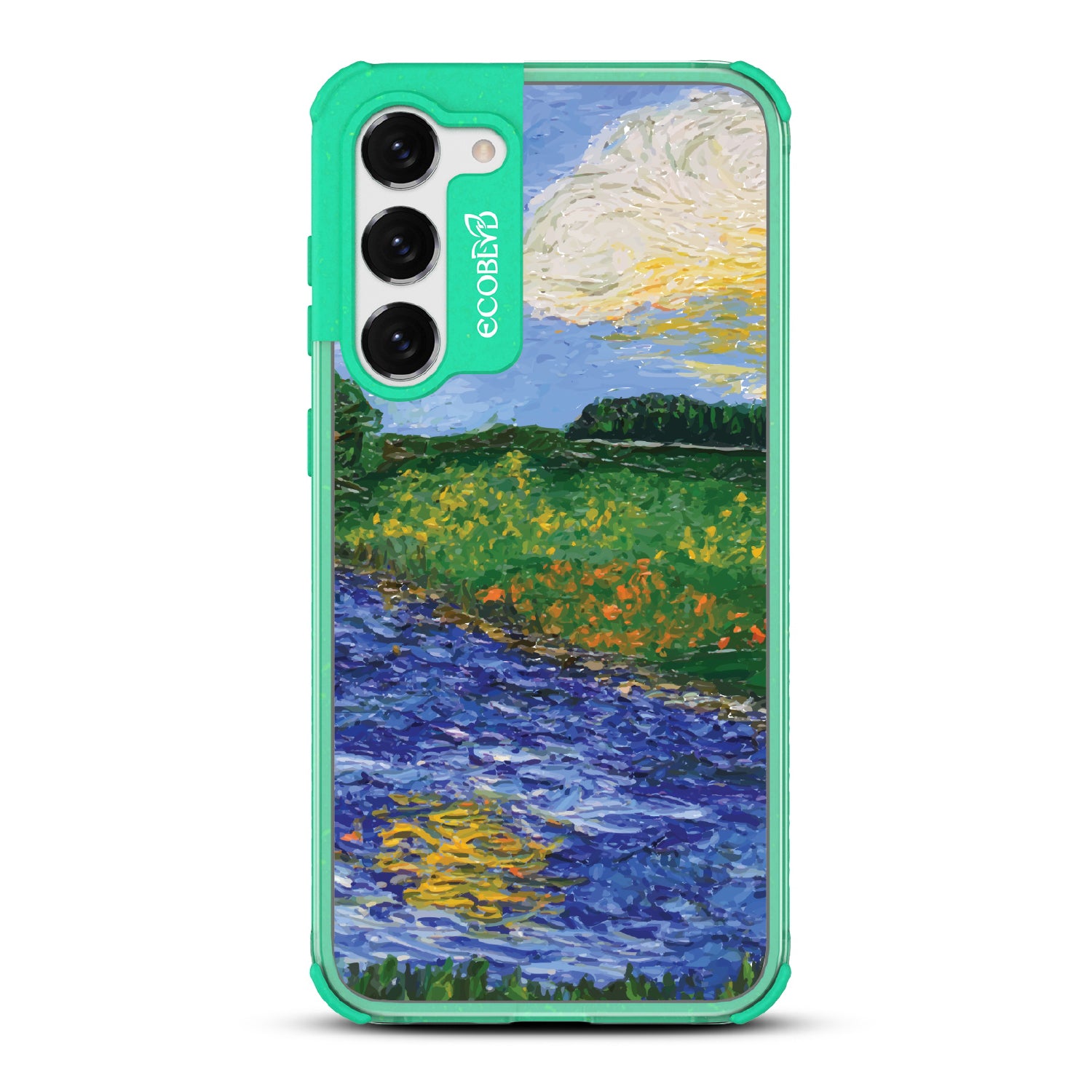 The landscape is yours to interpret. The Field of Vision design on our Laguna clear Galaxy S23 Plus case blurs rolling fields, bright skies, and rushing water into rich, painterly textures, creating a scene that feels both real and imagined. A composition that captures the fleeting beauty of nature—one stroke at a time.