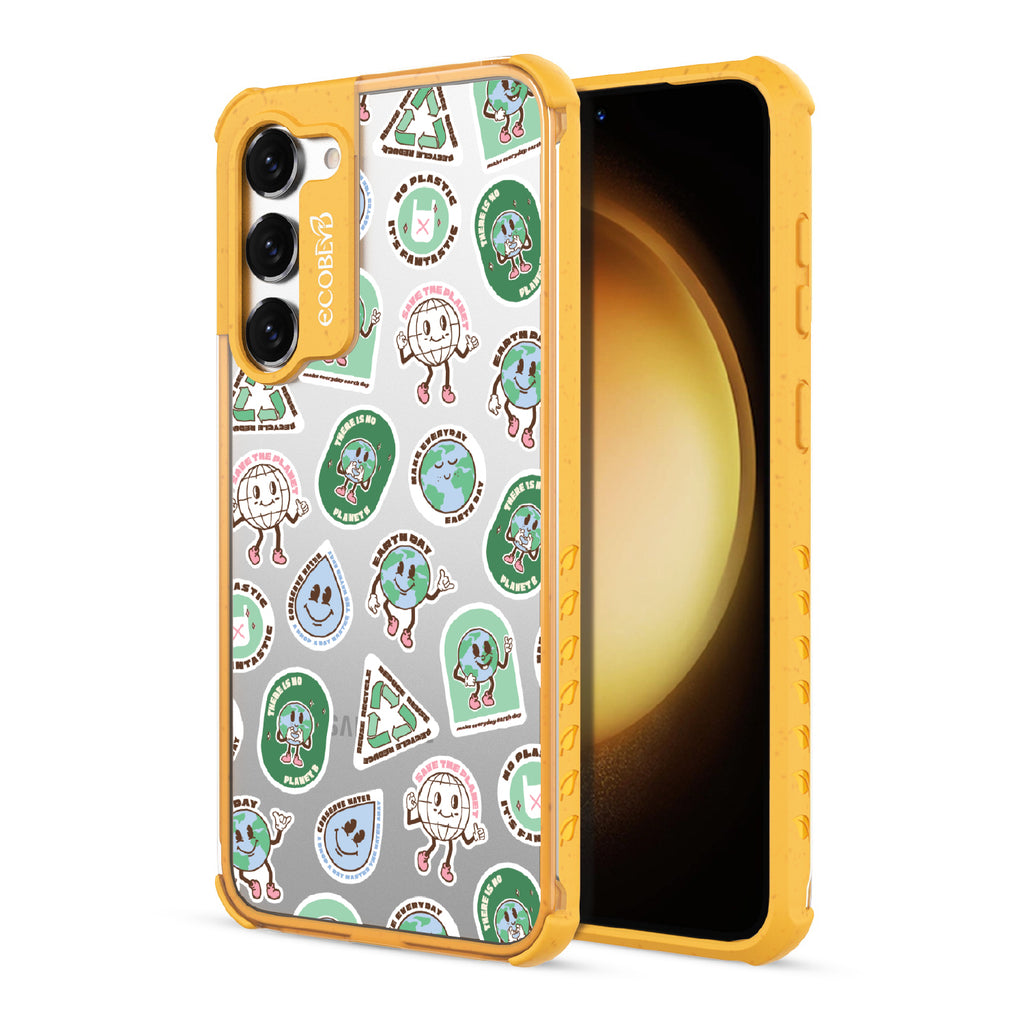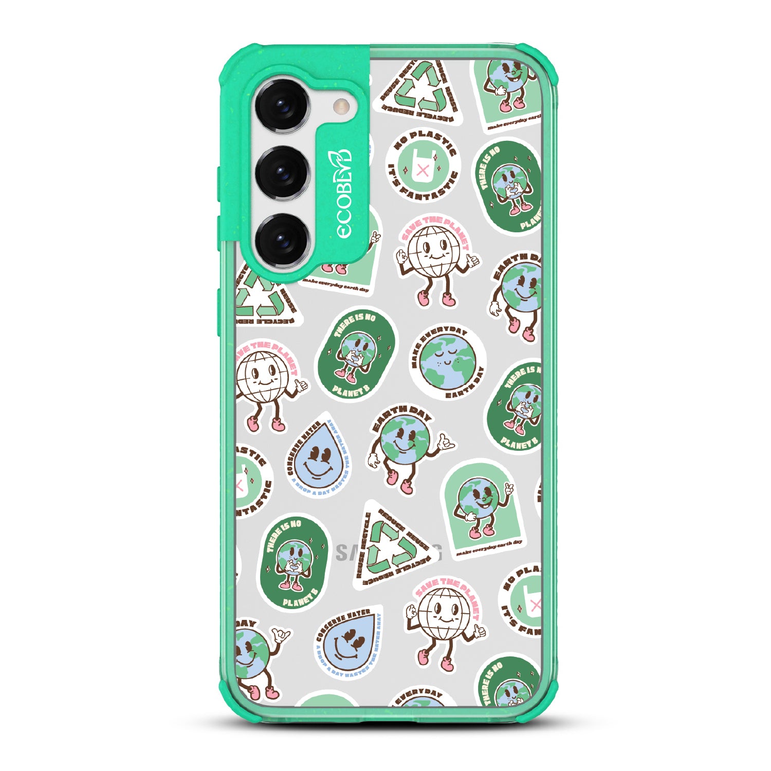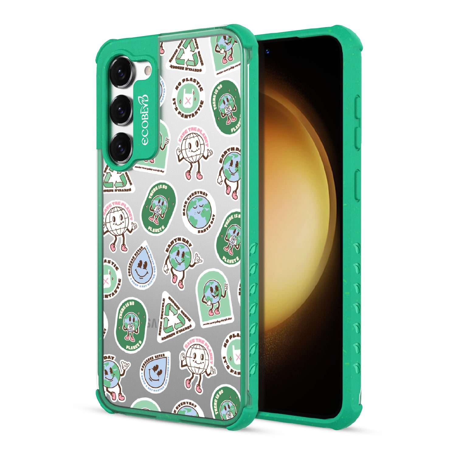 For the love of the planet, let's do it for the Greener Good with this cute design on our Laguna clear Galaxy S23 Plus  case. Plastered with stickers that shout 'reduce, renew, recycle' and 'no plastic, it's fantastic,' this case is a walking billboard for eco-activism. Carry this message, spread the word, and let's sticker our way to a greener world together.