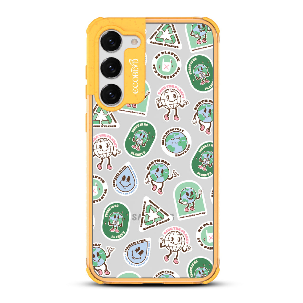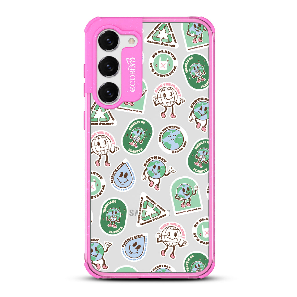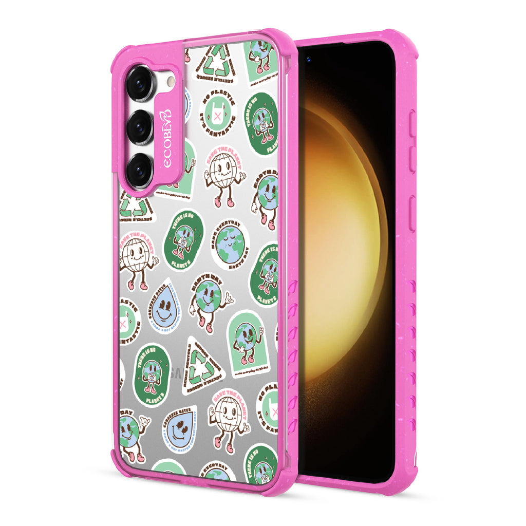 For the love of the planet, let's do it for the Greener Good with this cute design on our Laguna clear Galaxy S23 Plus  case. Plastered with stickers that shout 'reduce, renew, recycle' and 'no plastic, it's fantastic,' this case is a walking billboard for eco-activism. Carry this message, spread the word, and let's sticker our way to a greener world together.