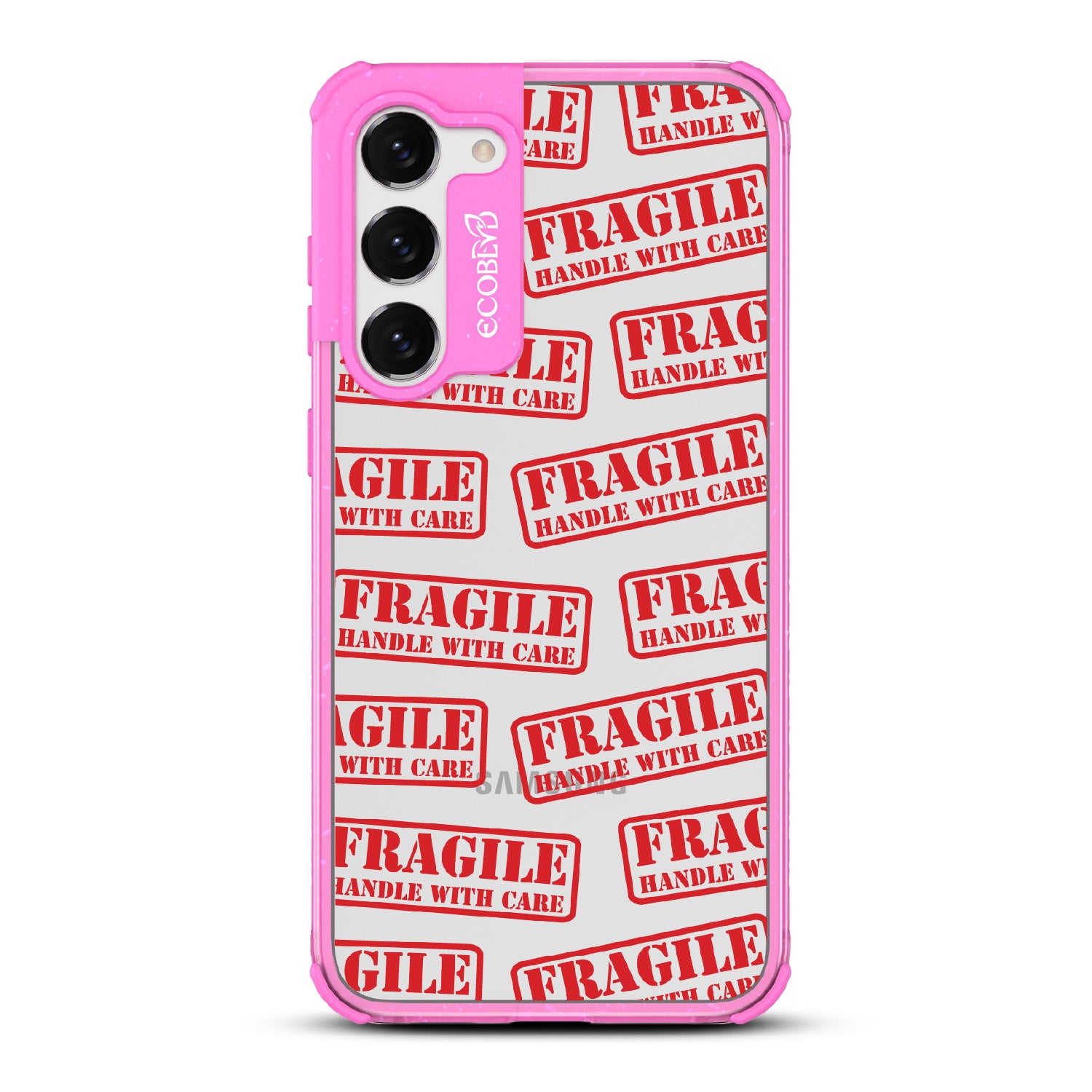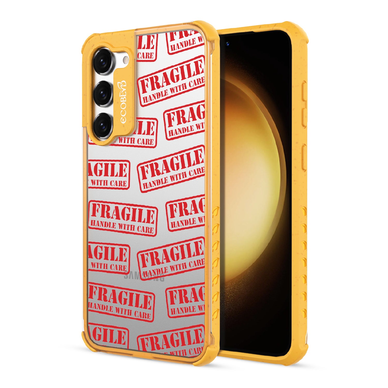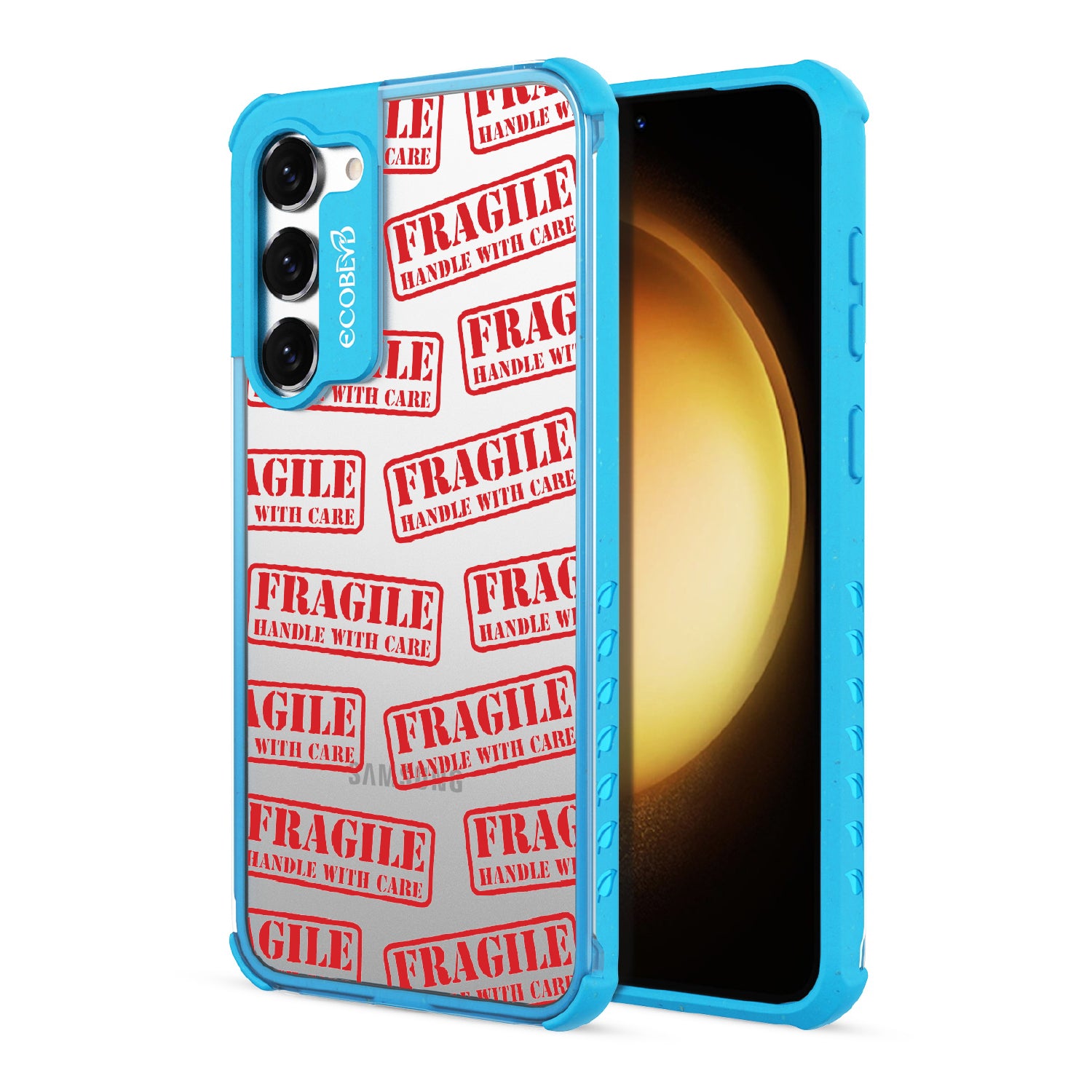 Your phone is precious cargo, and the Handle With Care design on our Laguna clear Galaxy S23 Plus case makes sure everyone knows it. Like the most treasured package in the post, this design stamps your device with VIP status, demanding the gentle touch and special attention reserved for the things we can't live without.