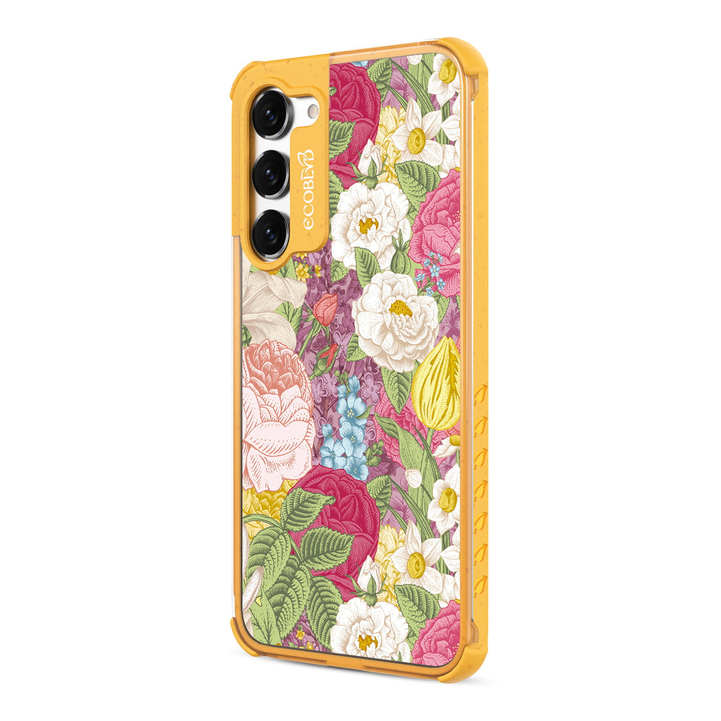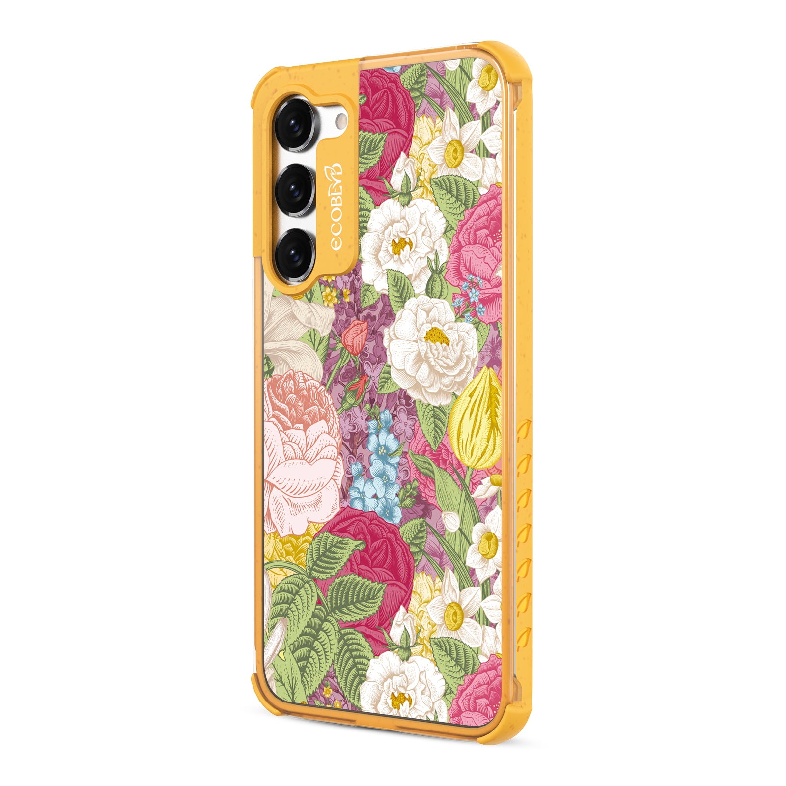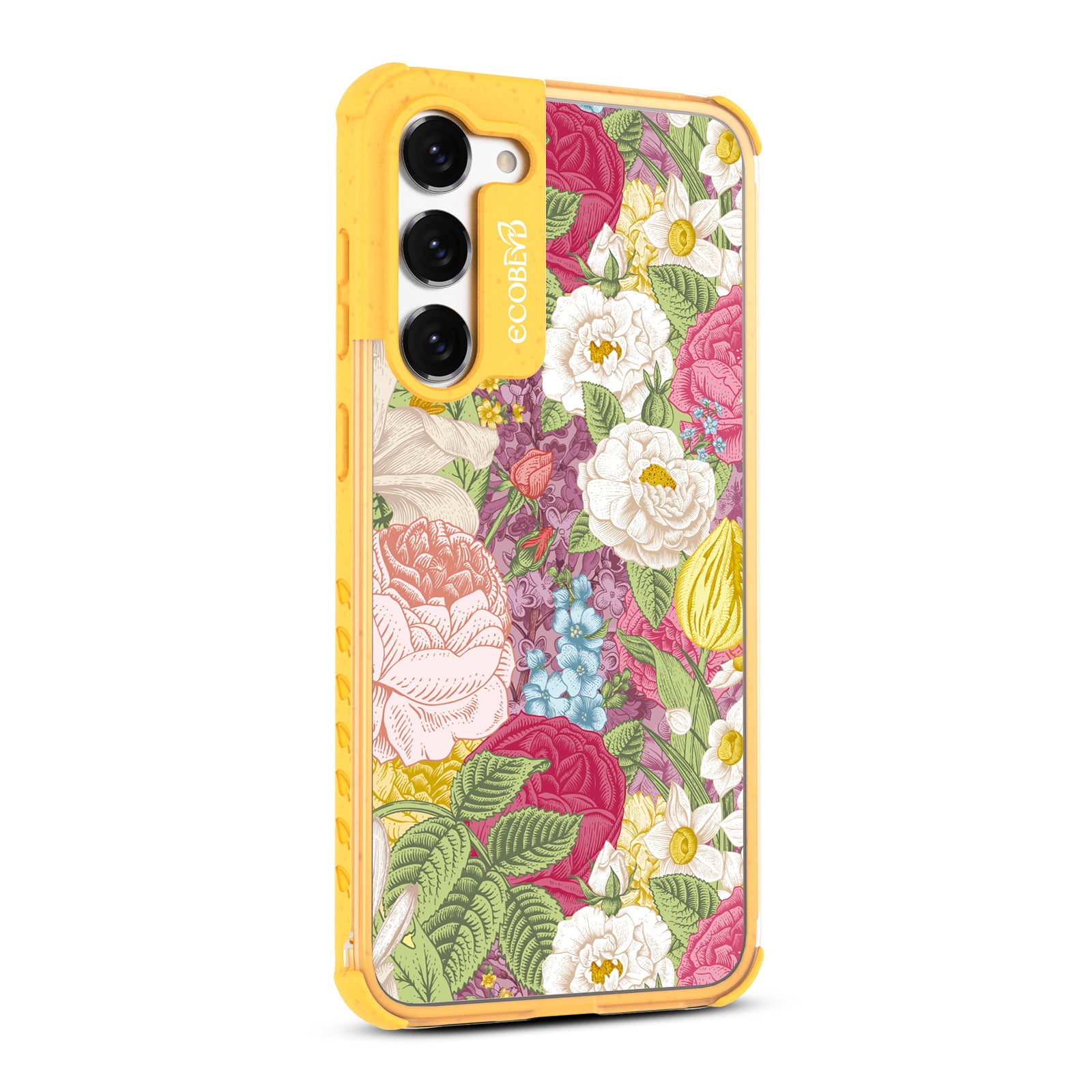 Live life fully with the In Bloom design on our Laguna clear Galaxy S23 Plus phone case as its bright watercolor flowers offer a retro-styled bouquet of luscious and radiant roses and peonies that will add some classic freshness to your phone with five vibrant color options: Midnight Black, Cascade Blue, Foliage Green, Illuminating Yellow, and Wildflower Pink.