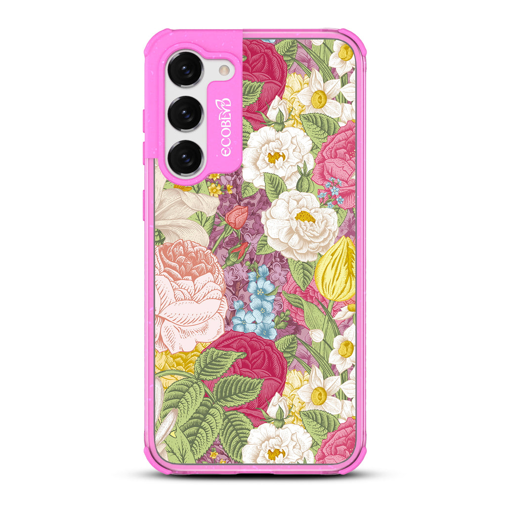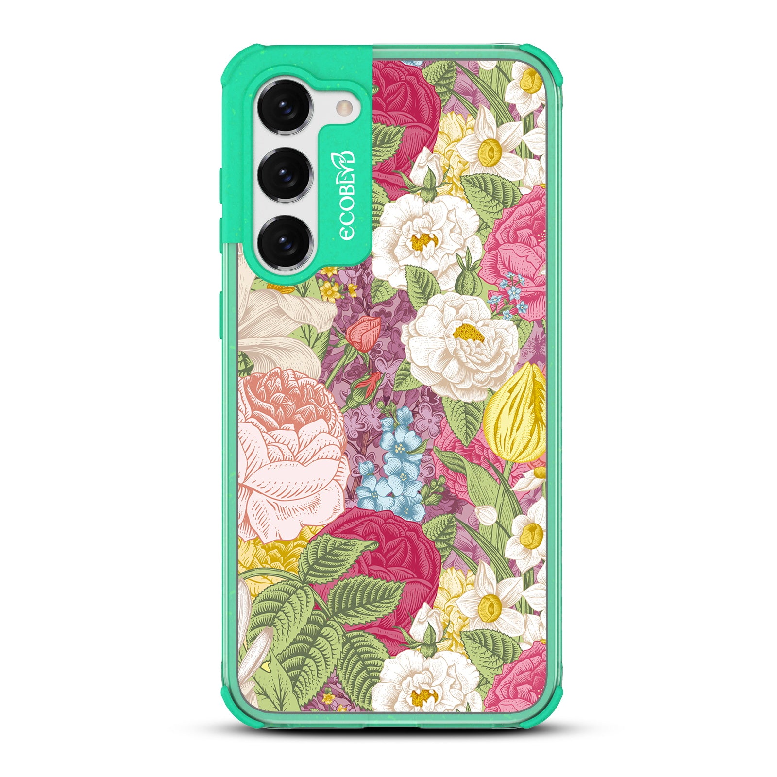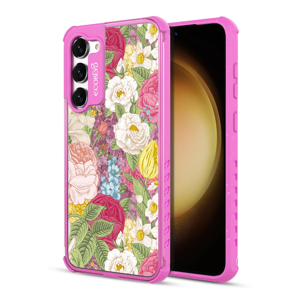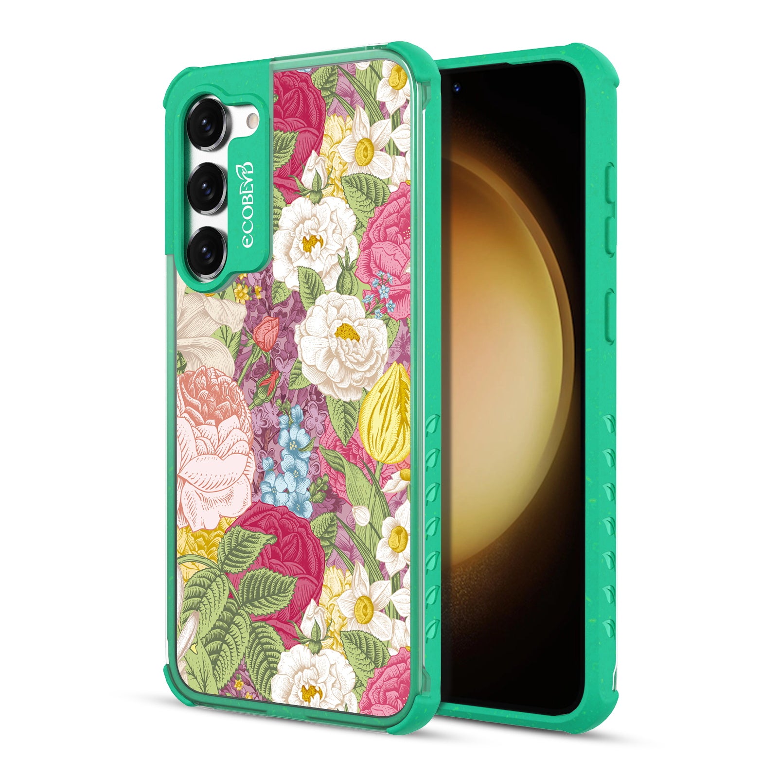Live life fully with the In Bloom design on our Laguna clear Galaxy S23 Plus phone case as its bright watercolor flowers offer a retro-styled bouquet of luscious and radiant roses and peonies that will add some classic freshness to your phone with five vibrant color options: Midnight Black, Cascade Blue, Foliage Green, Illuminating Yellow, and Wildflower Pink.