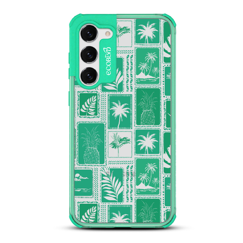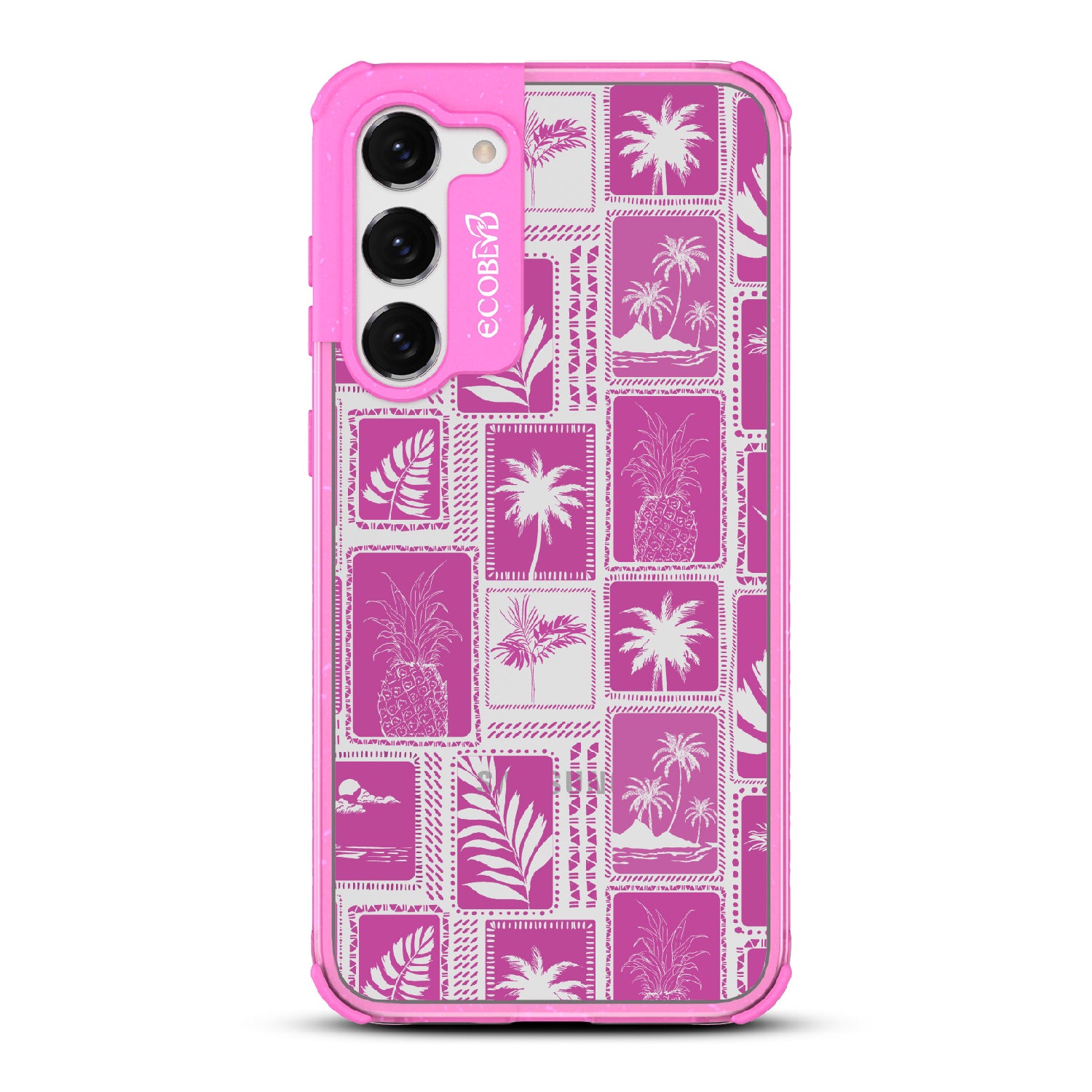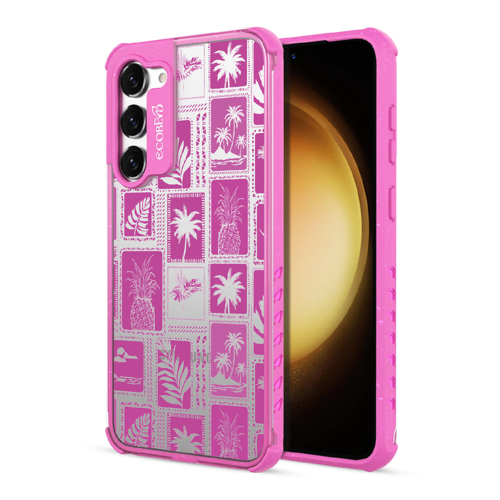 Get lost in the paradise of the Oasis design on our Laguna clear Galaxy S23 Plus case. It's like a secret hideaway where palm trees, palm fronds, pineapples, and islands await your discovery. Slip your phone into this tropical wonderland and allow it to light up your imagination, fuel your wanderlust, and transport you to sun-soaked shores!