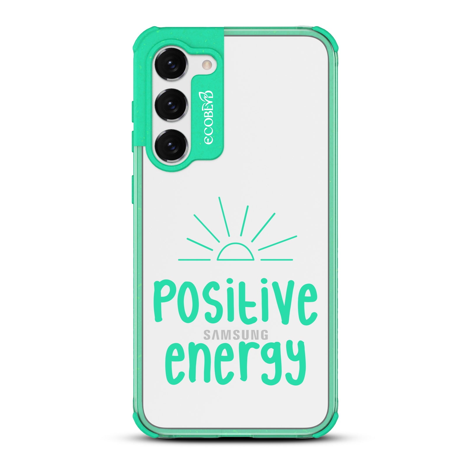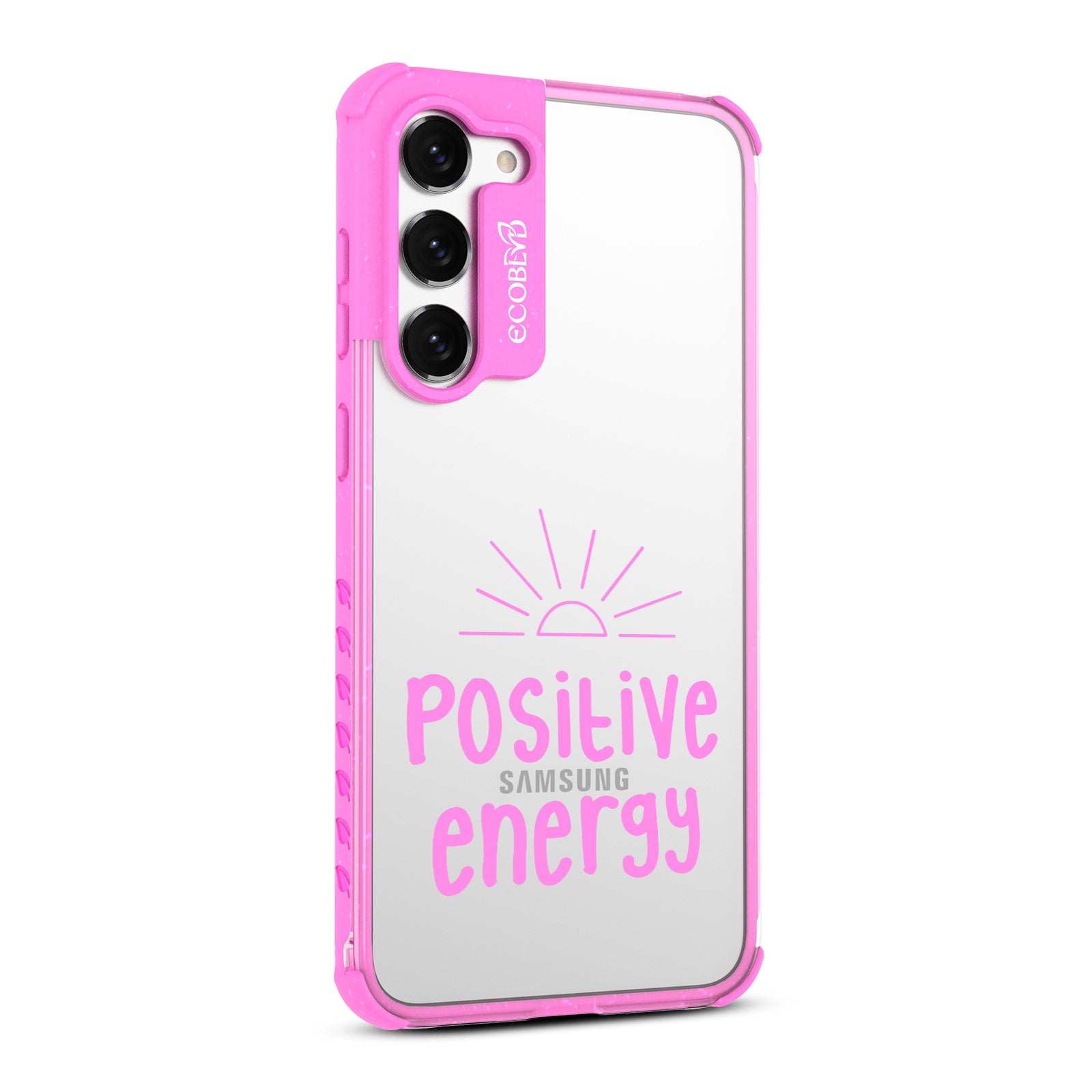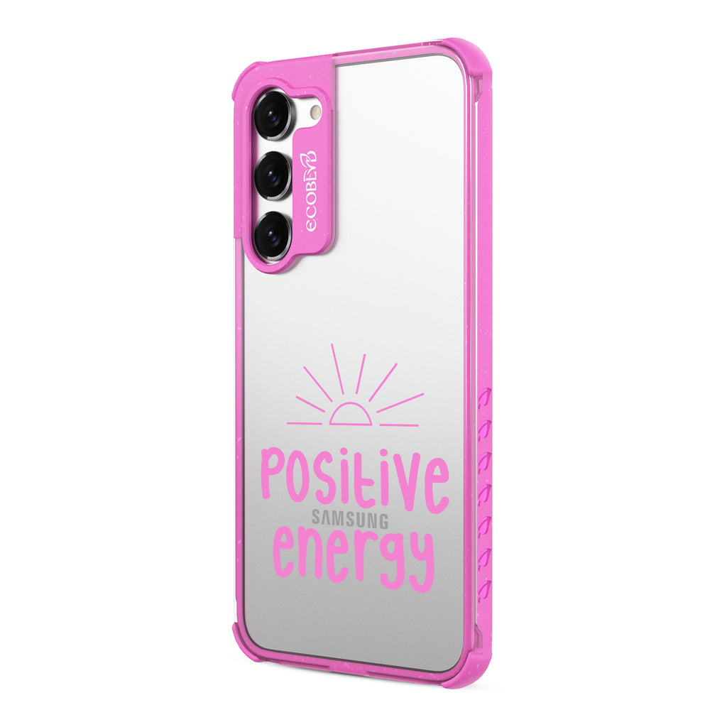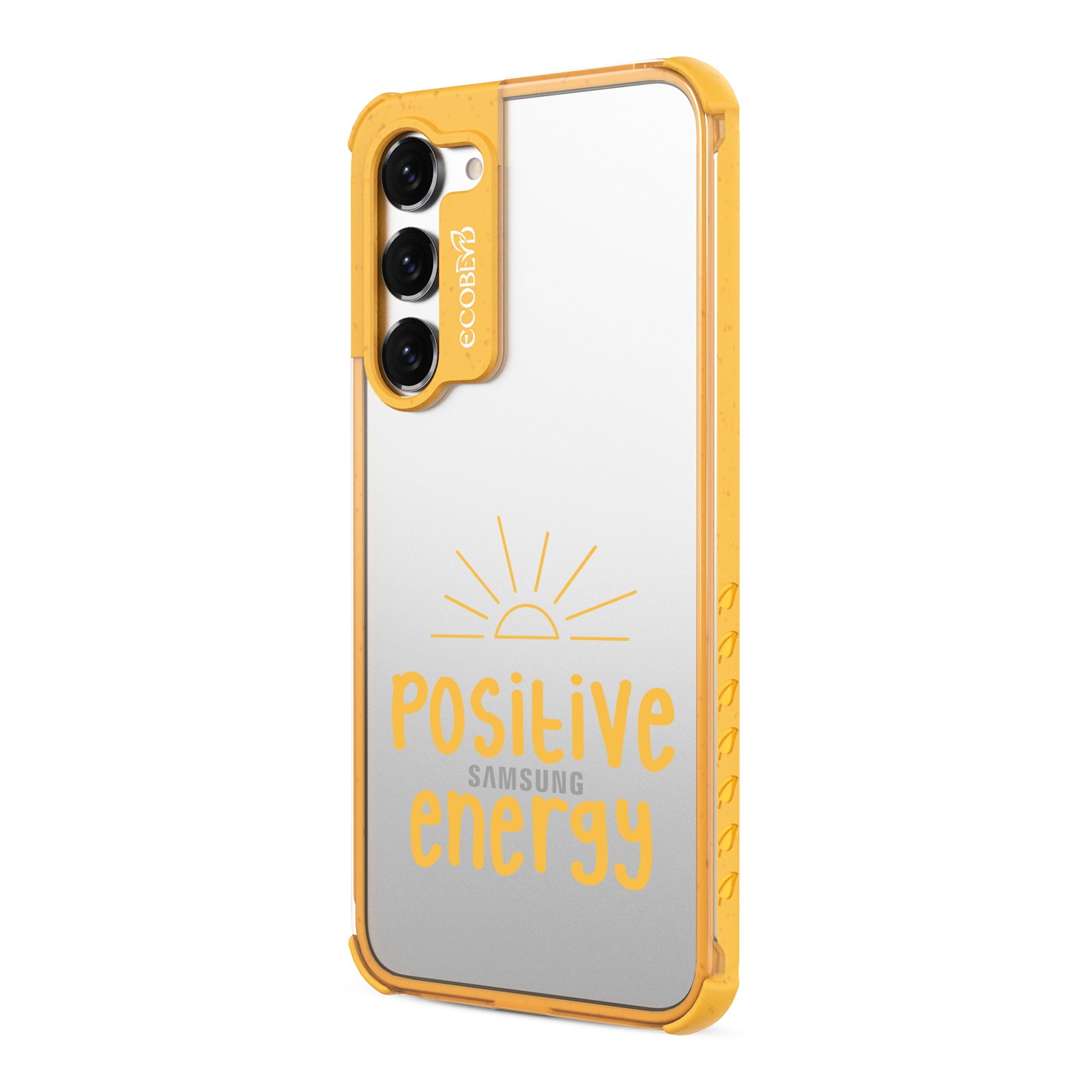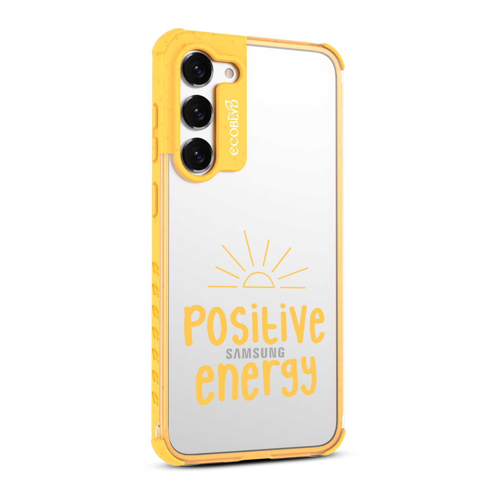 Radiate warmth and happiness from your phone with the Positive Energy design on our Laguna clear Galaxy S23 Plus case, as the rising sun inspires you to spread joy from your Galaxy S23 Plus in five vibrant colorways: Midnight Black, Cascade Blue, Foliage Green, Illuminating Yellow, and Wildflower Pink.