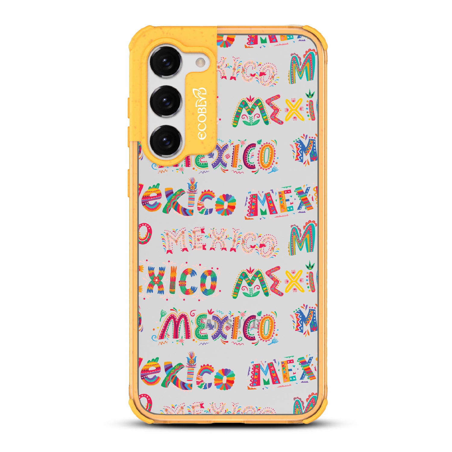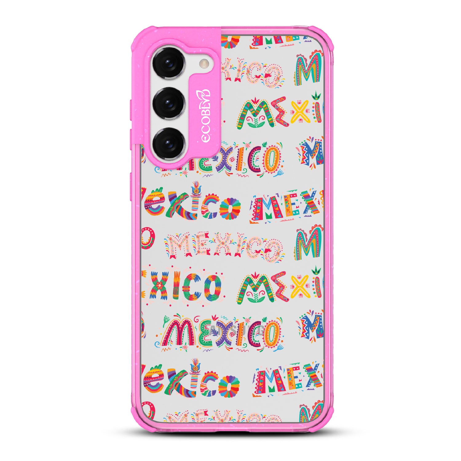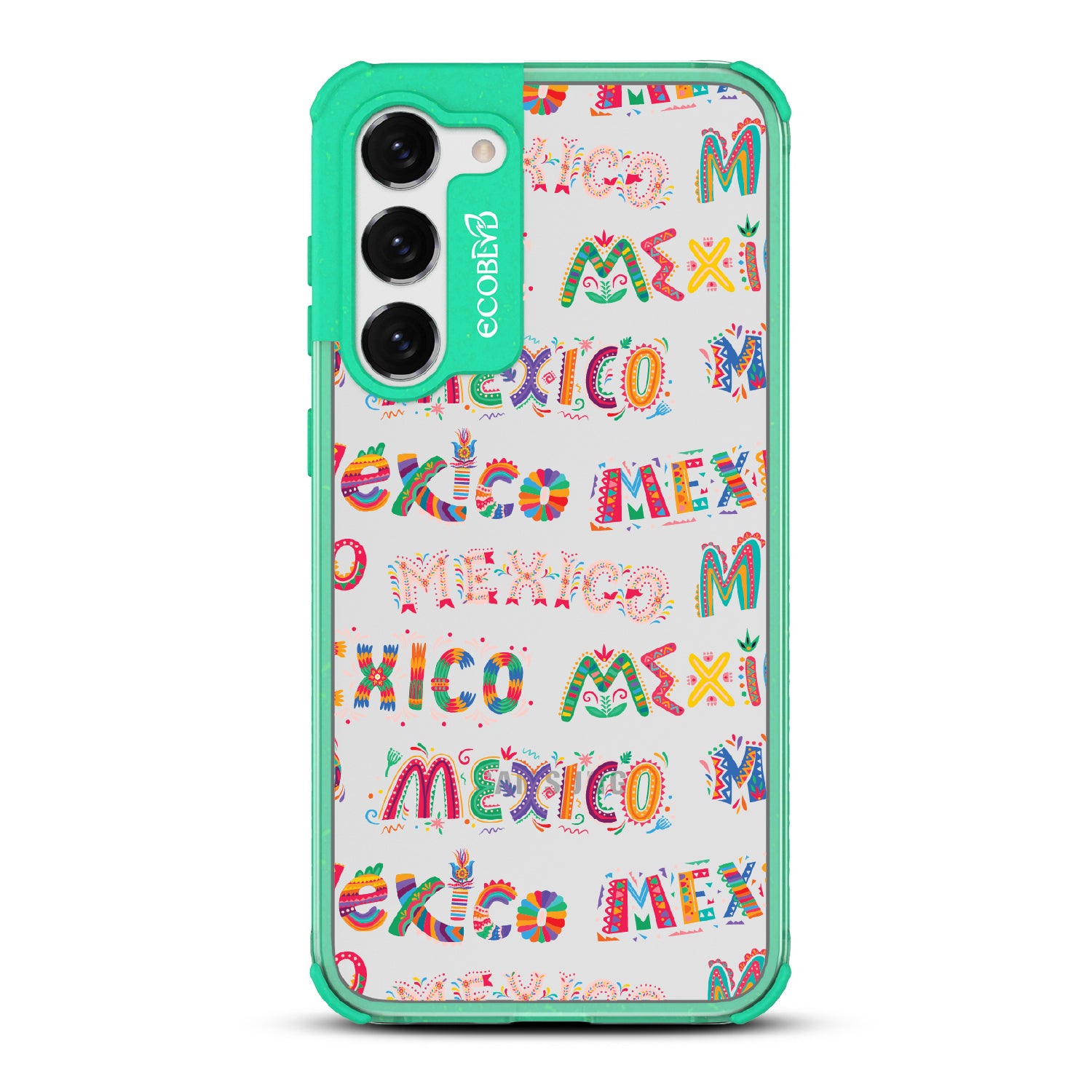 Celebrate the heart of Mexico with the 'Viva Mexico' design on our Laguna clear Galaxy S23 Plus case, a dynamic homage to the nation's rich cultural tapestry. Just like the festive murals that adorn the streets of Oaxaca, each letter is a reflection of Mexico's soulful artistry, traditions and culture, inviting you to carry a piece of its vibrant history wherever you go.
