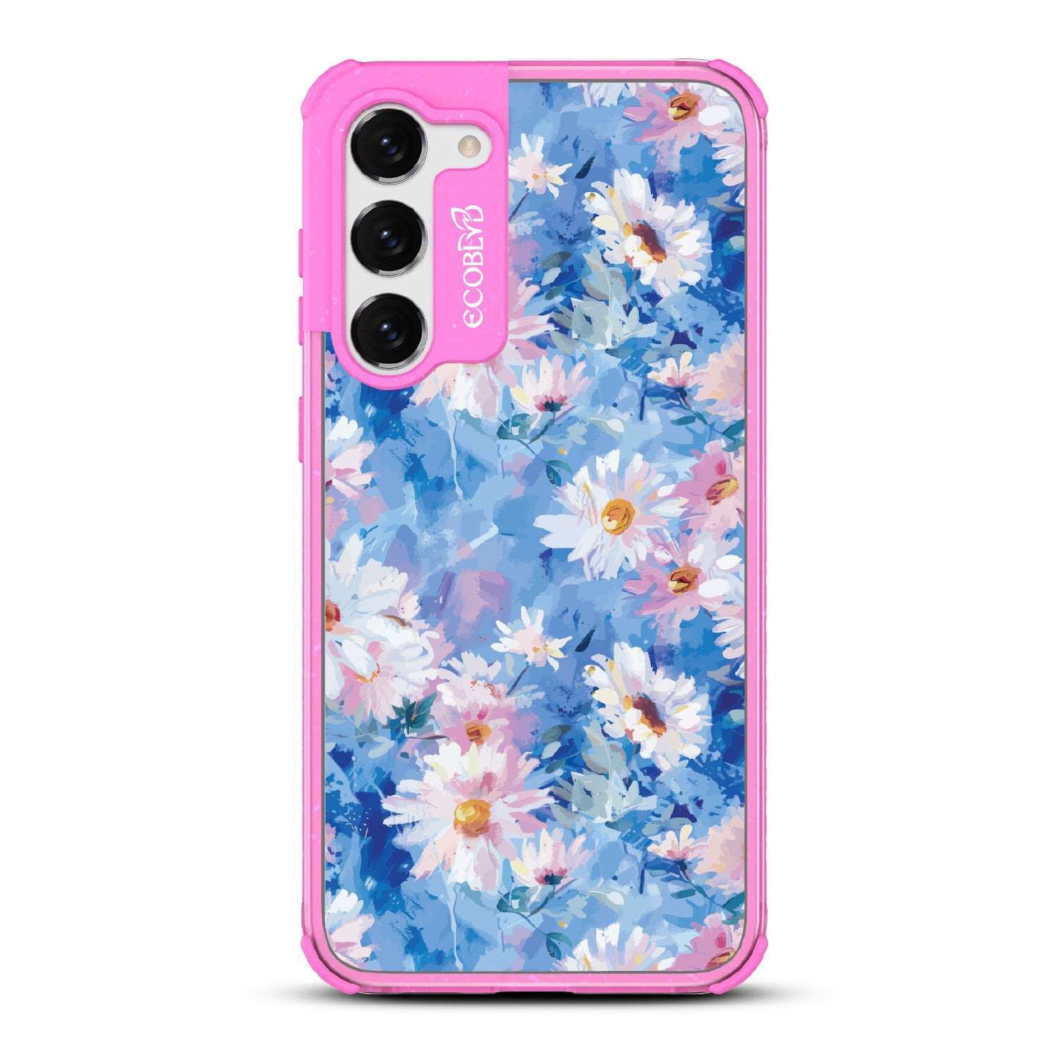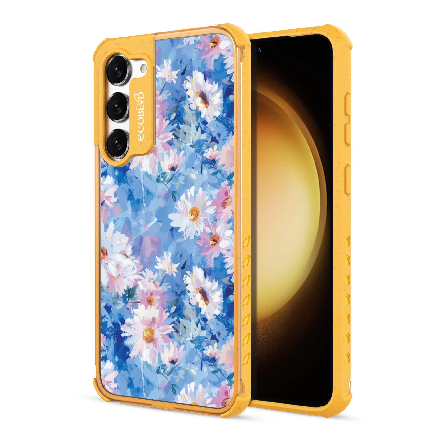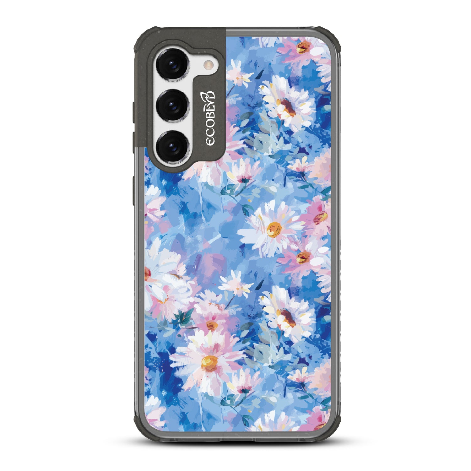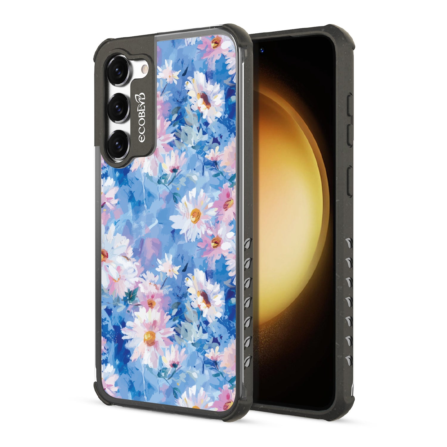 It’s a breeze really. The Blown Away design on our Laguna clear Galaxy S23 Plus case sends soft daisy petals swirling across layered blue strokes, like a gust caught mid-canvas. Each pastel bloom feels weightless but intentional—an airy moment you can hold onto.