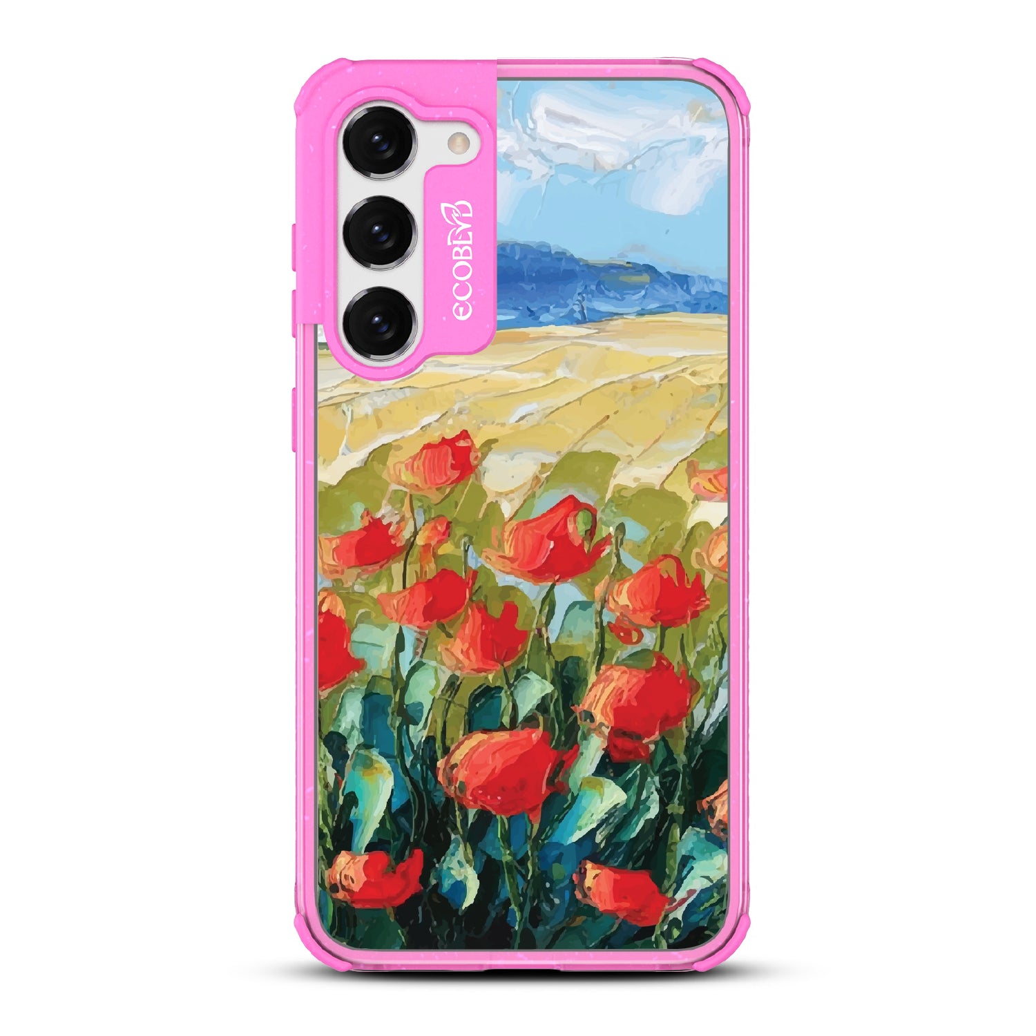 Looks can lull. The Sleepy Bloom design on our Laguna clear Galaxy S23 Plus case surrounds bold poppies with diffused light and stillness, creating a moment so vivid it could almost close your eyes for you. Soft. Lush. Spell-like.