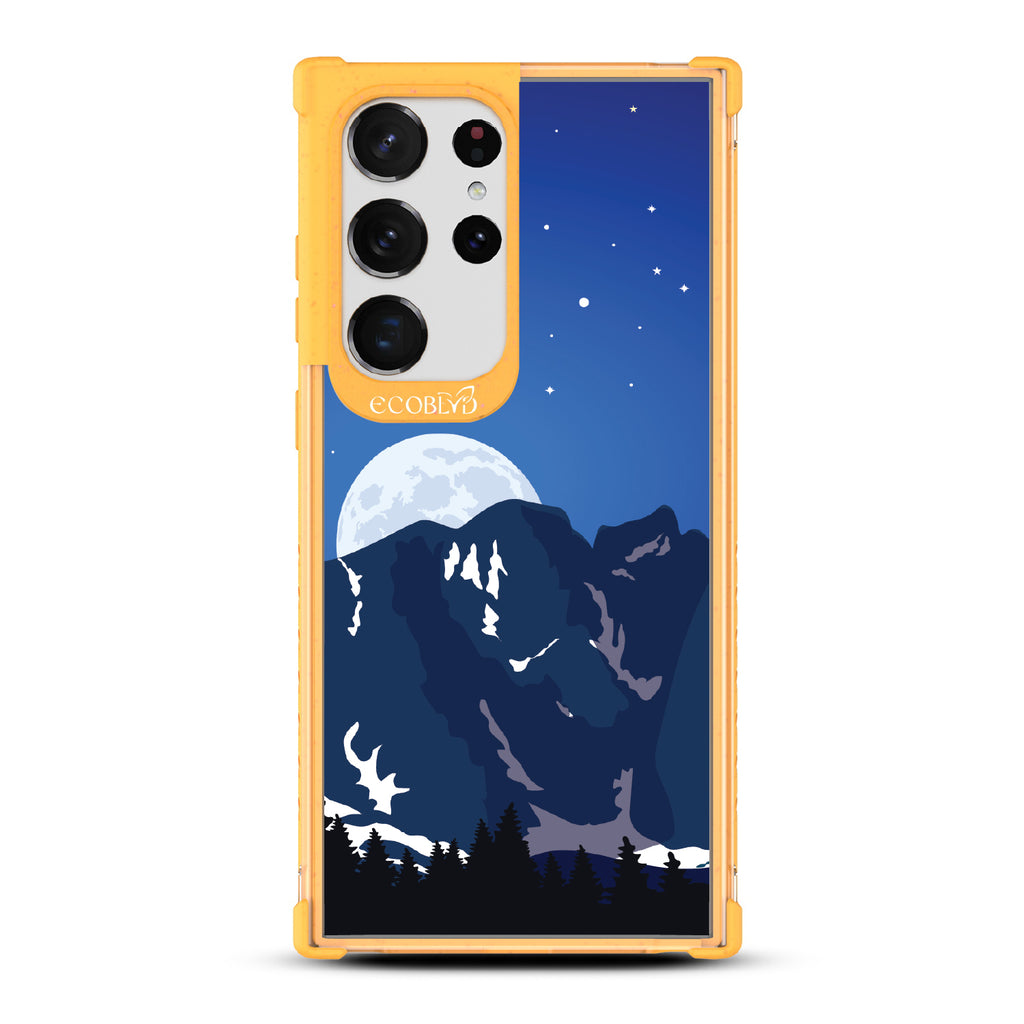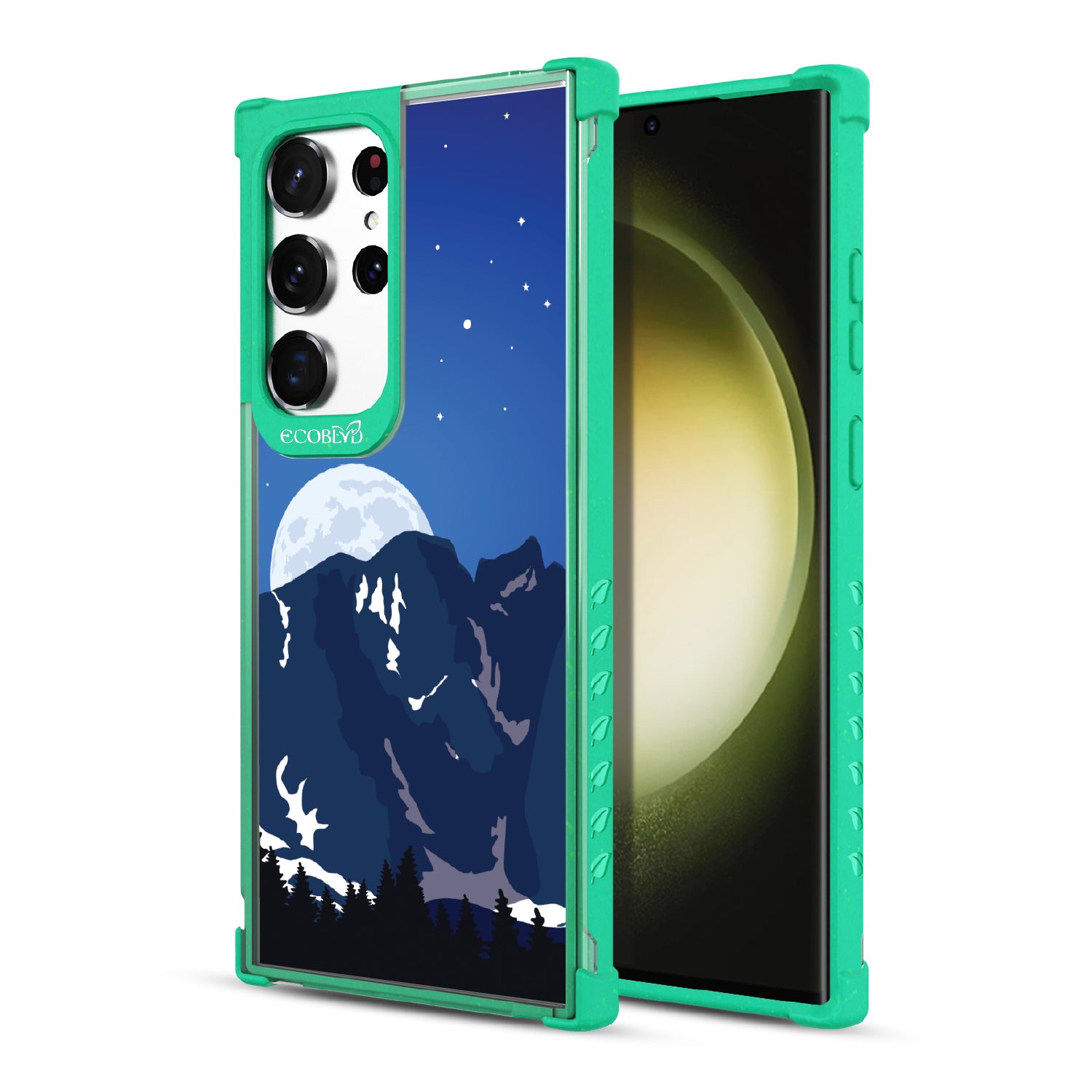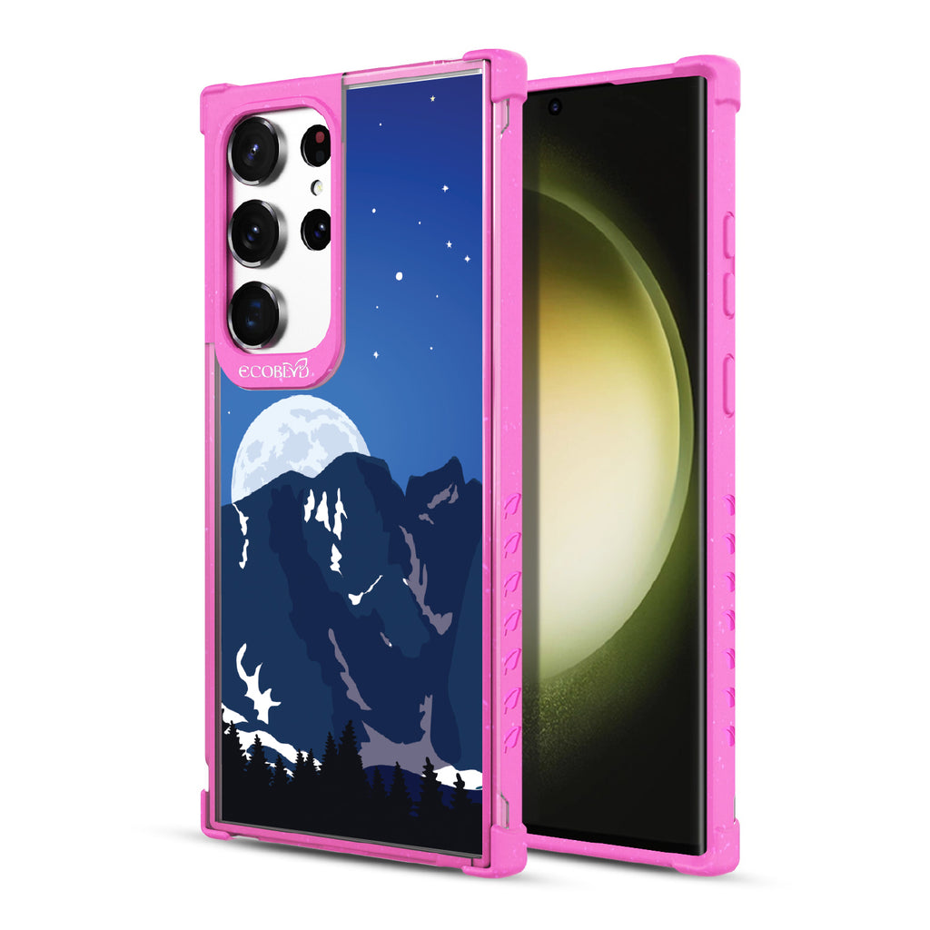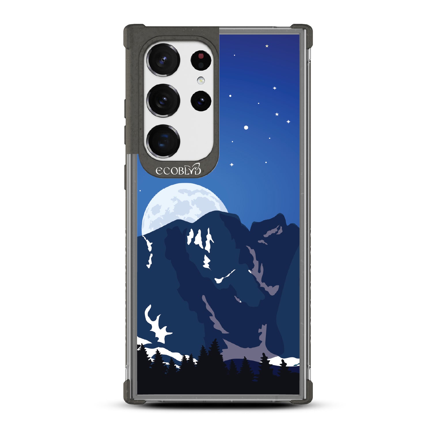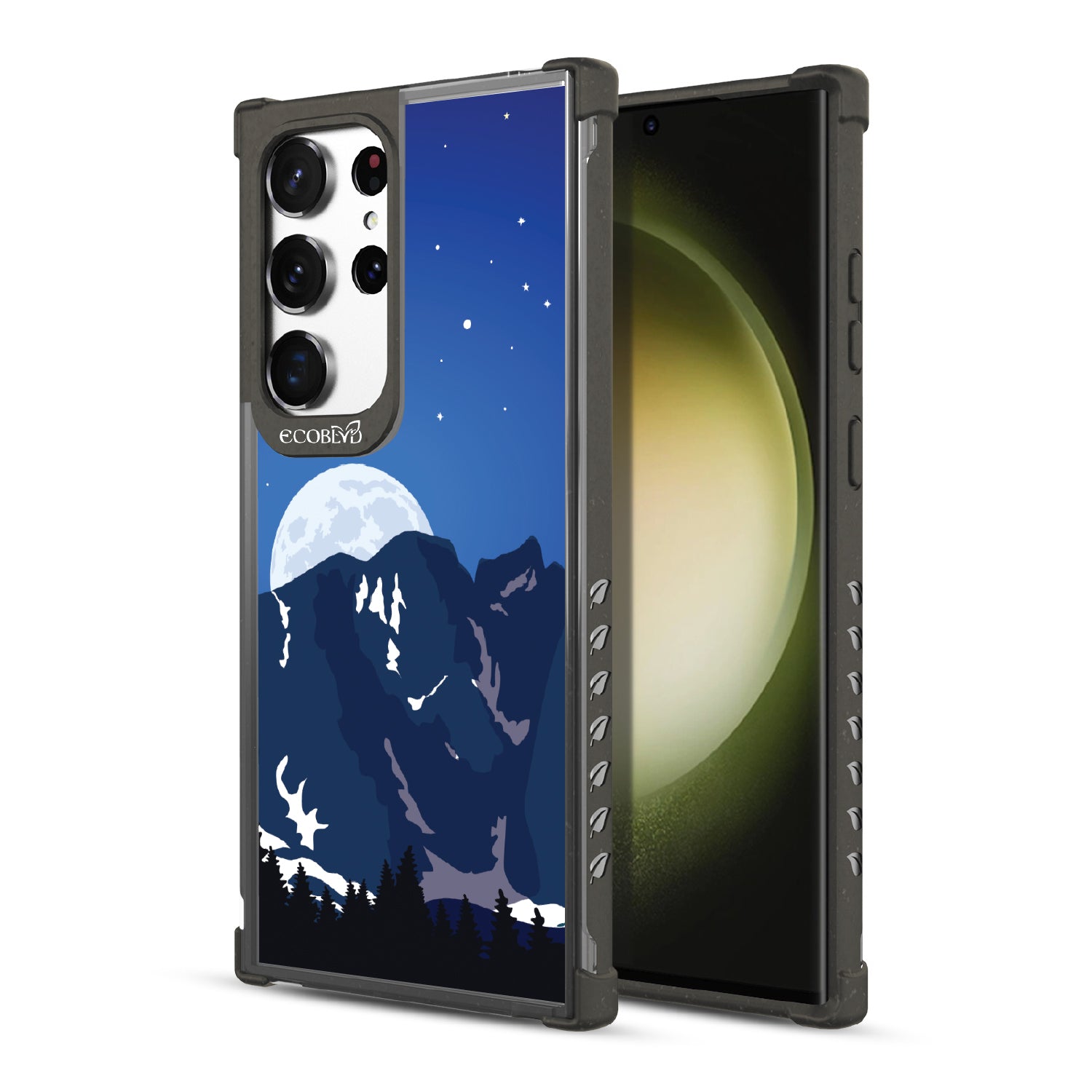 Bask in the ethereal glow of our Alpine Moon design on our Laguna clear Galaxy S23 Ultra case, where the moon hangs like a luminous pearl against the velvet canvas of the night sky, casting its soft radiance upon the rugged terrain below.