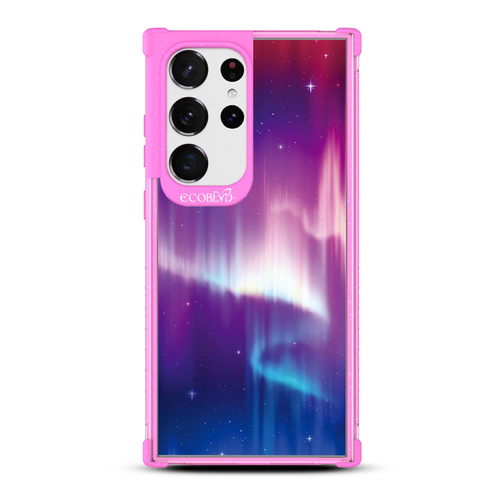 You don't need to travel far to see the Northern Lights; in fact, you can have the Aurora Borealis design on our Laguna clear compostable Galaxy S23 Ultra case, so you can see them whenever you want and on three breathtaking colorways: Midnight Black, Cascade Blue, and Wildflower Pink.