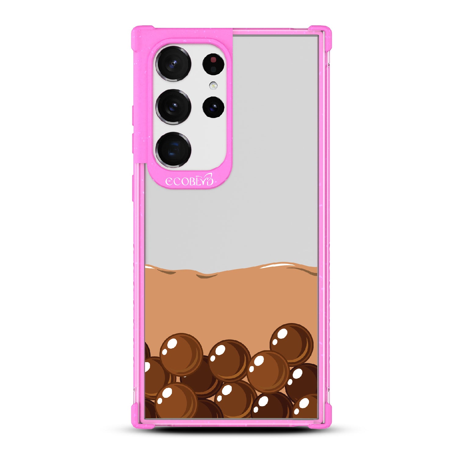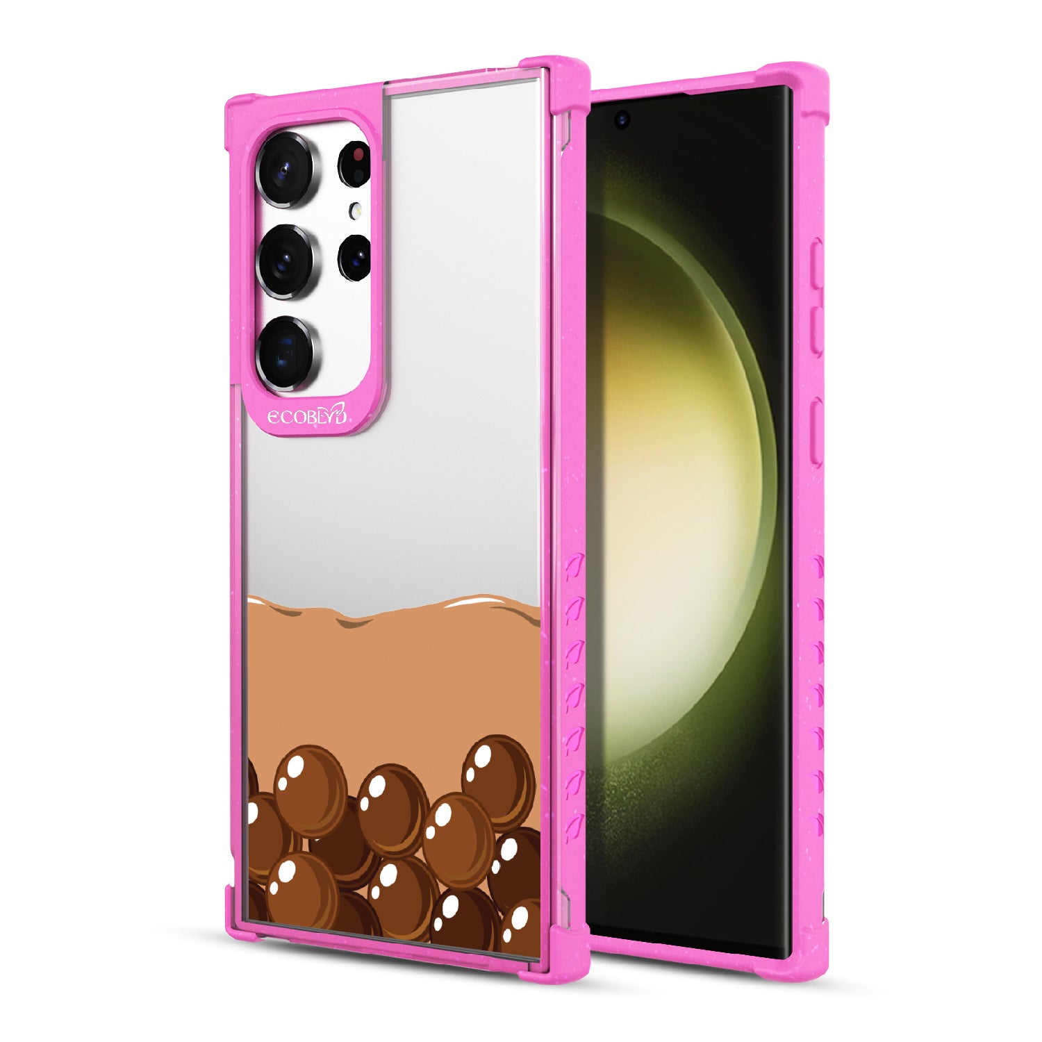 The Brown Sugar Boba design on our Laguna clear Galaxy S23 Ultra case captures the creamy beauty of caramel swirls layered with glossy tapioca pearls. A sweet celebration of the drink that always hits the spot.