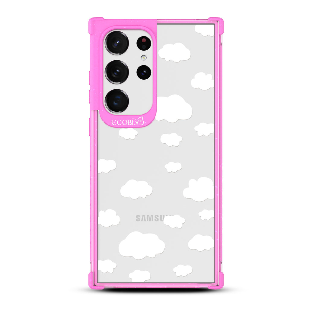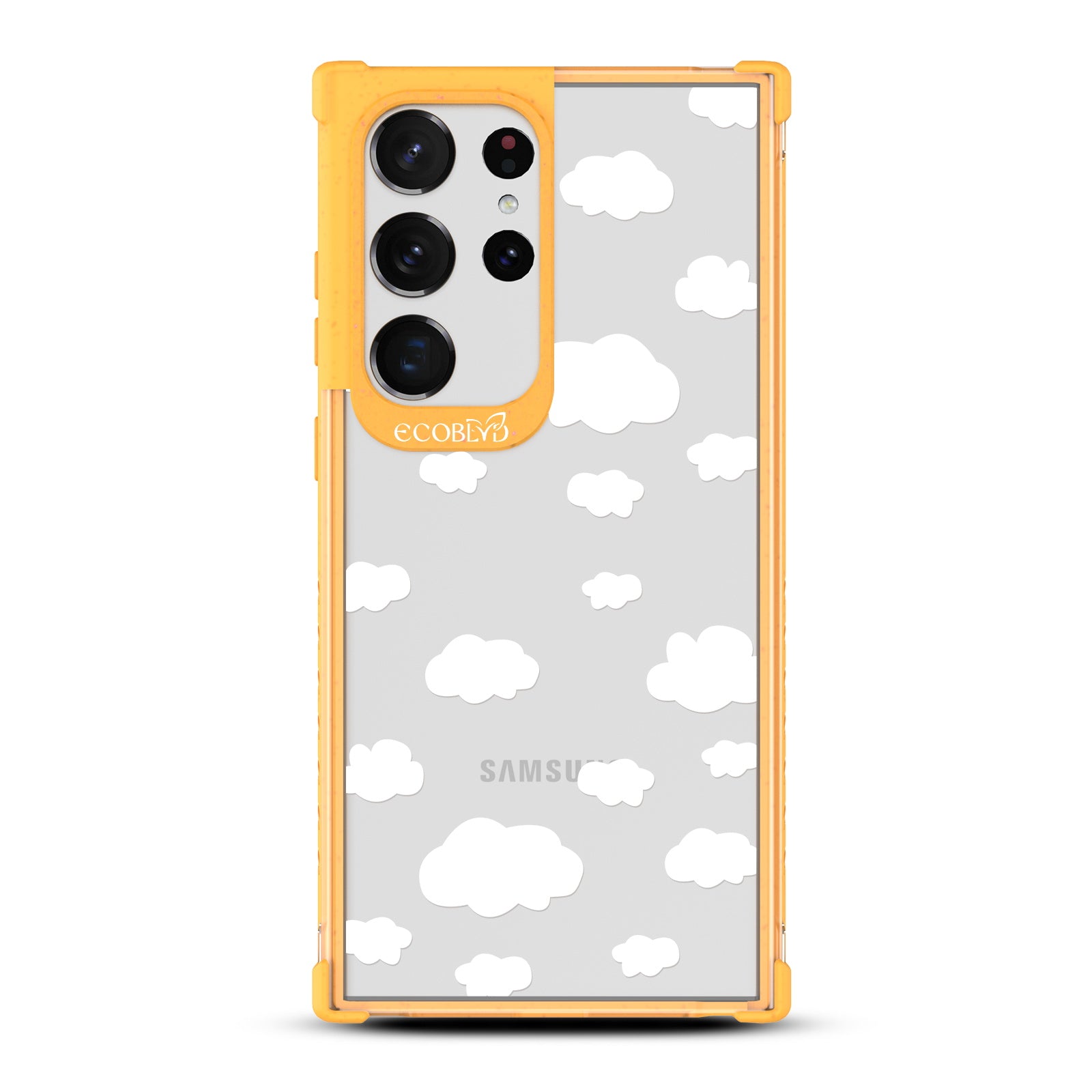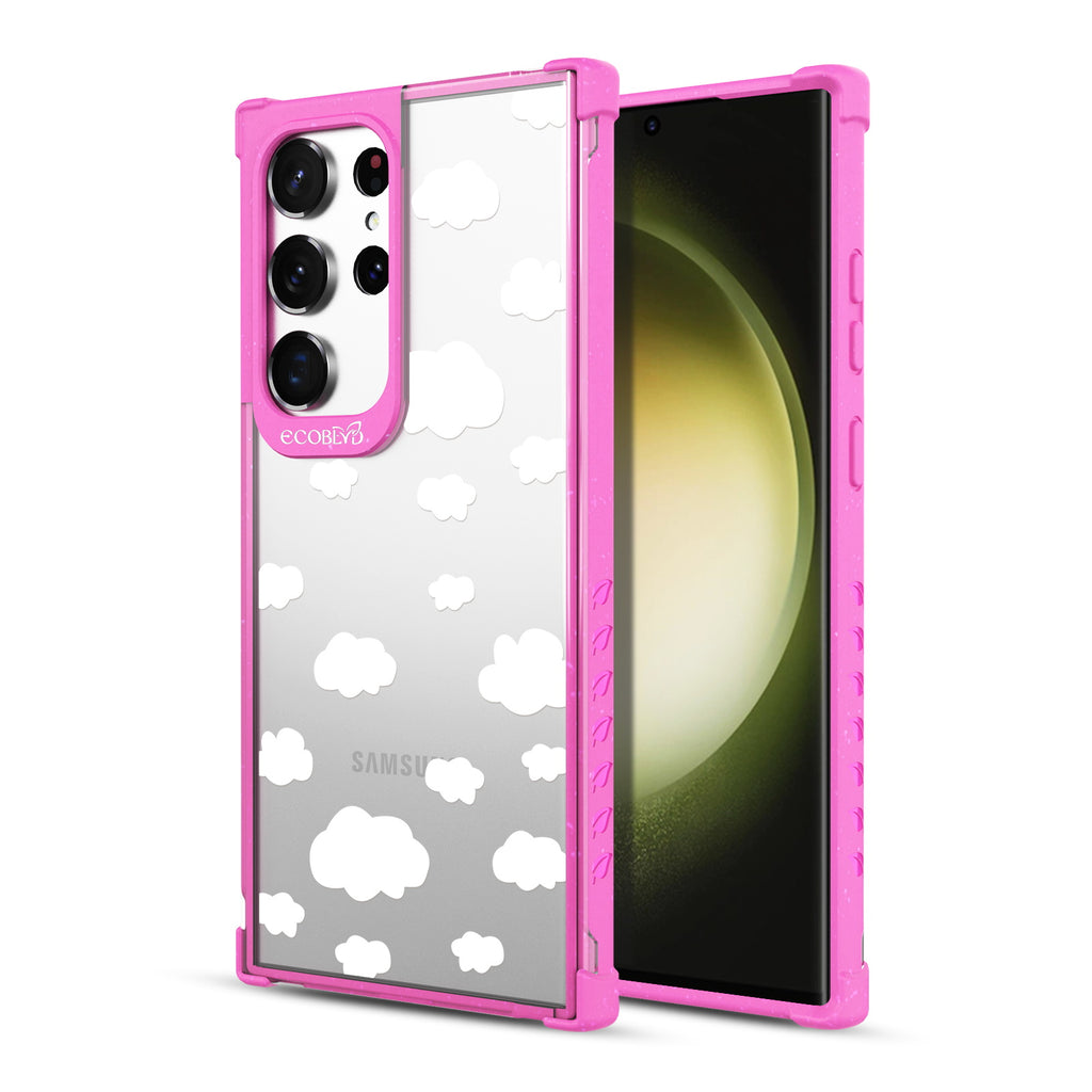 Keeping your phone on cloud nine is no problem as the Clouds design on our Laguna clear Galaxy S23 Ultra case surrounds your Galaxy S23 Ultra with a light, airy, and incredibly dreamy look that comes in five vibrant colors: Midnight Black, Cascade Blue, Foliage Green, Illuminating Yellow, and Wildflower Pink.