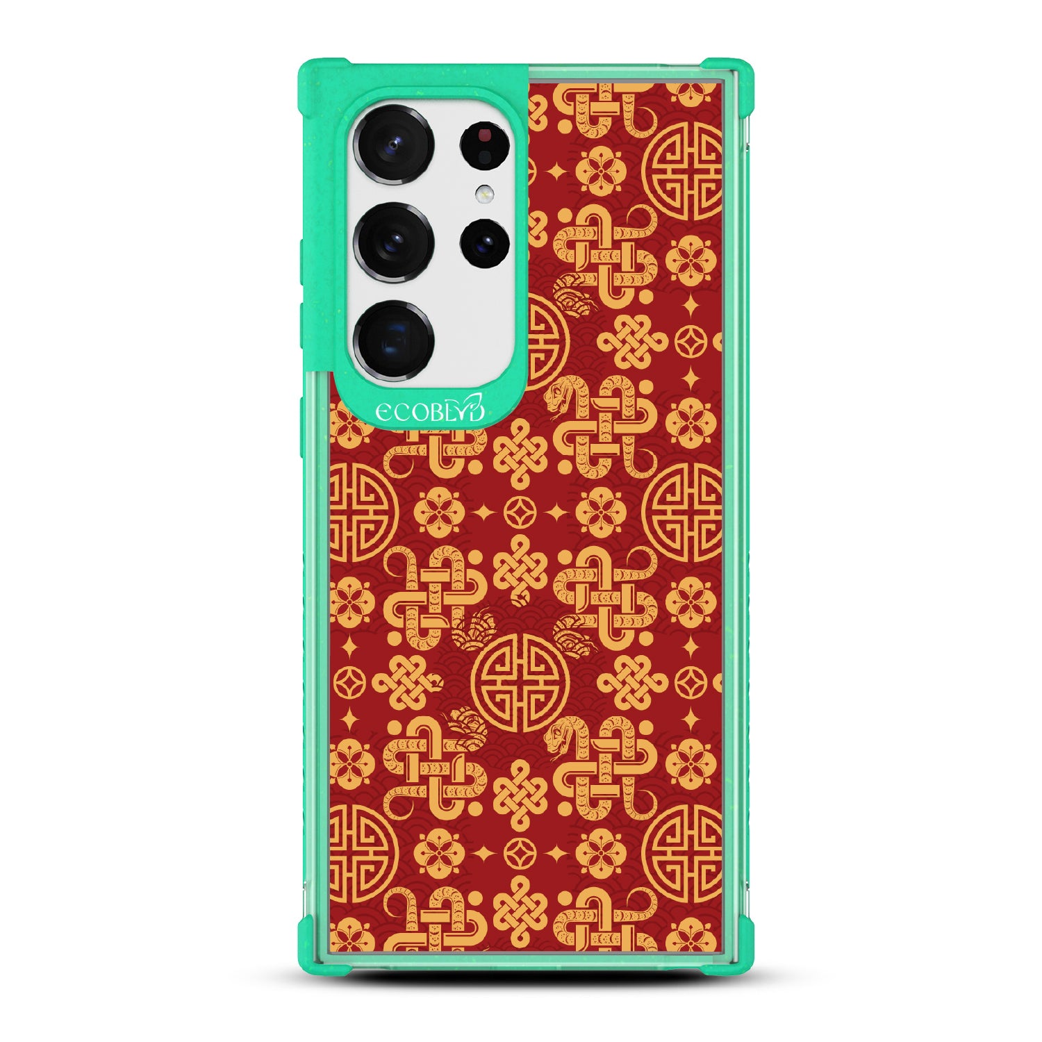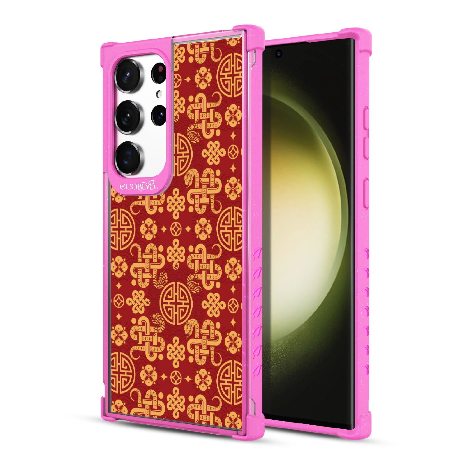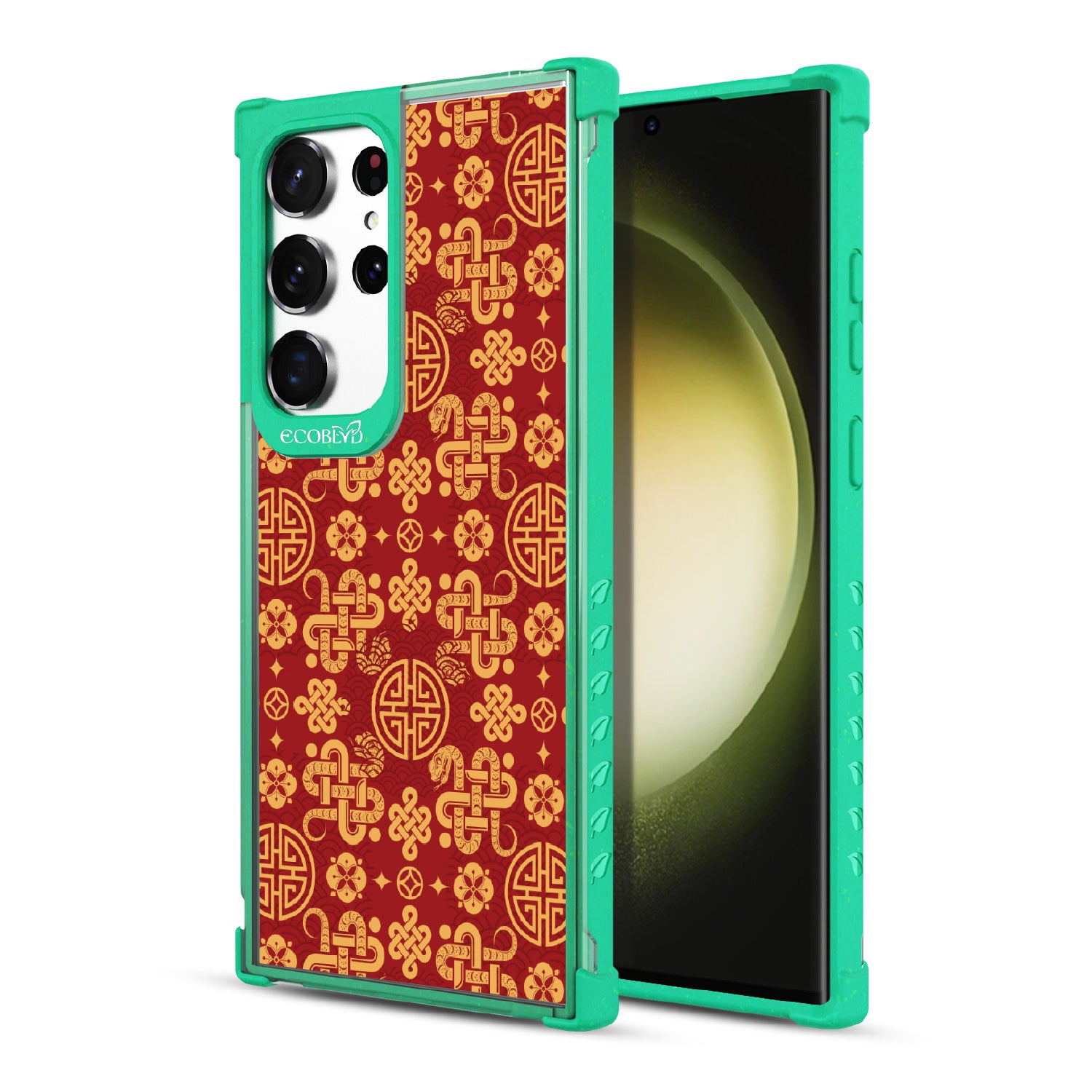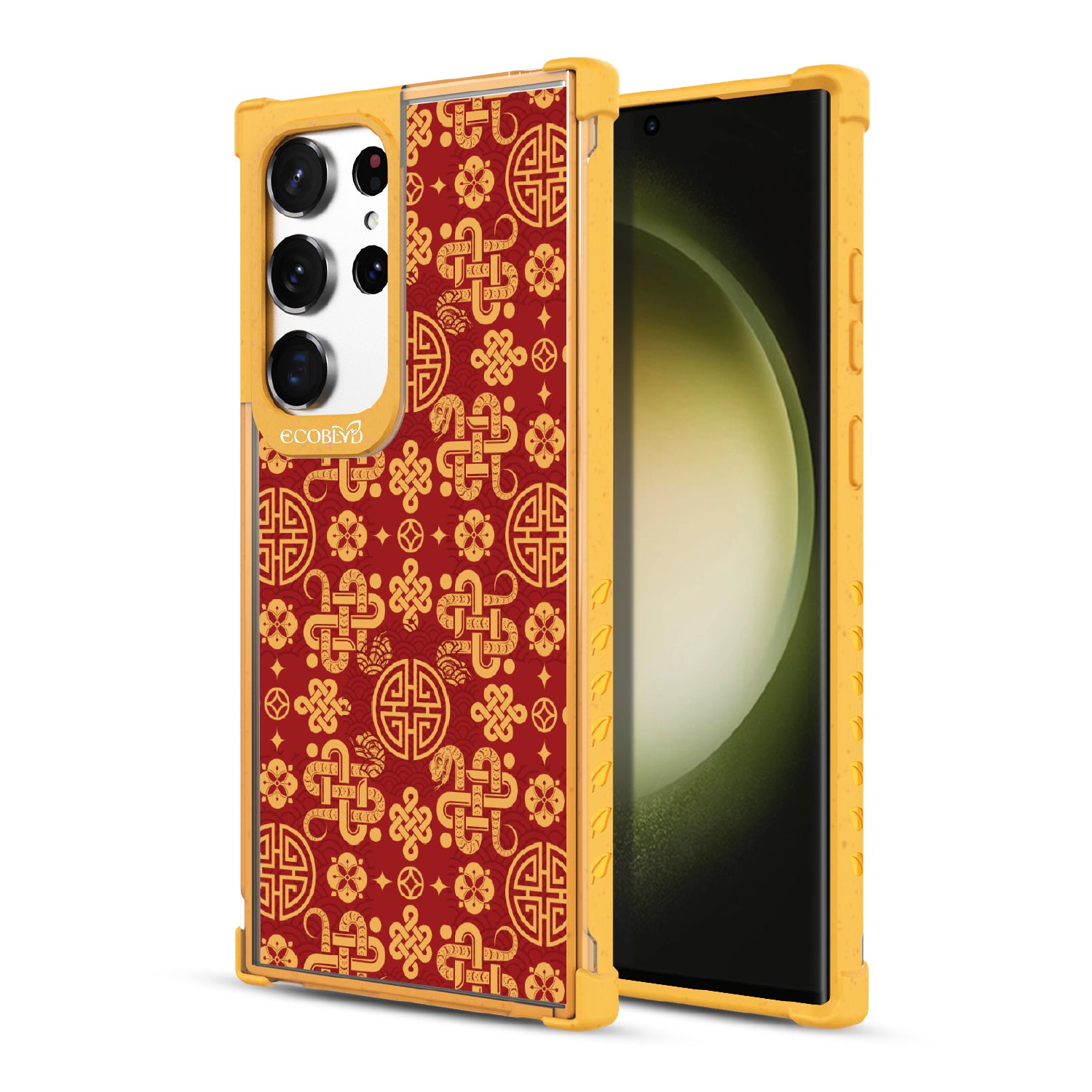 Uncoil the promise of prosperity with the Coiled In Gold design on our Laguna clear Galaxy S23 Ultra case. The golden serpents twist and spiral, shedding their past skins as they wind their way into a new cycle of growth and transformation. With every golden coil, this design captures the essence of renewal—leaving behind the old to make room for the fortune and success 2025 brings.