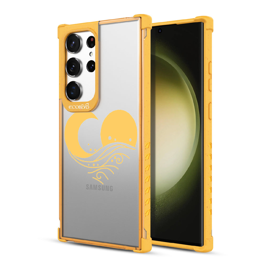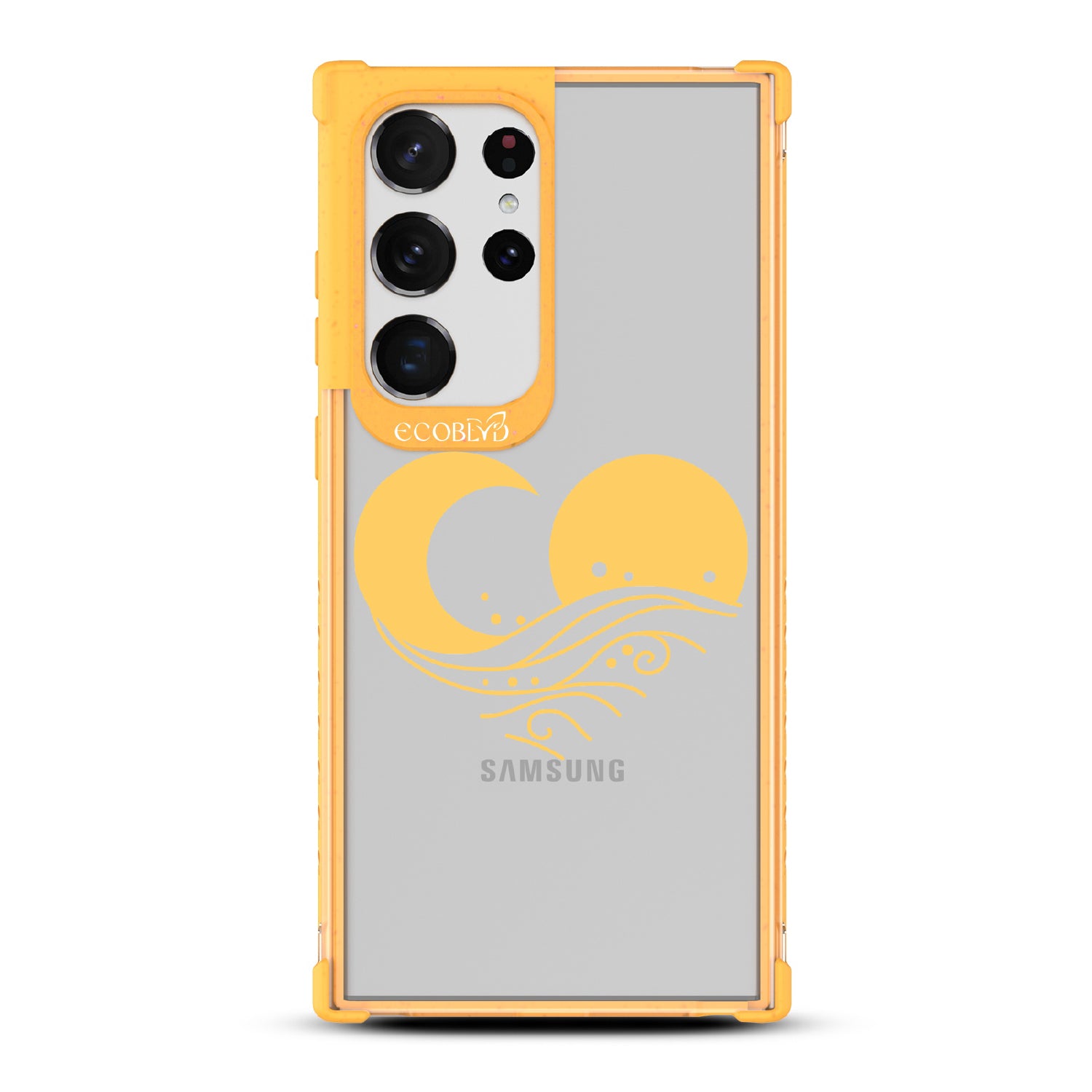 A perfect balance between light and dark, day and night, keeps the Eternal Wave design on our Laguna clear Galaxy S23 Ultra case going and covers your phone in complete harmony as they come together, forming a heart across five vibrant colors: Midnight Black, Cascade Blue, Foliage Green, Illuminating Yellow, and Wildflower Pink.
