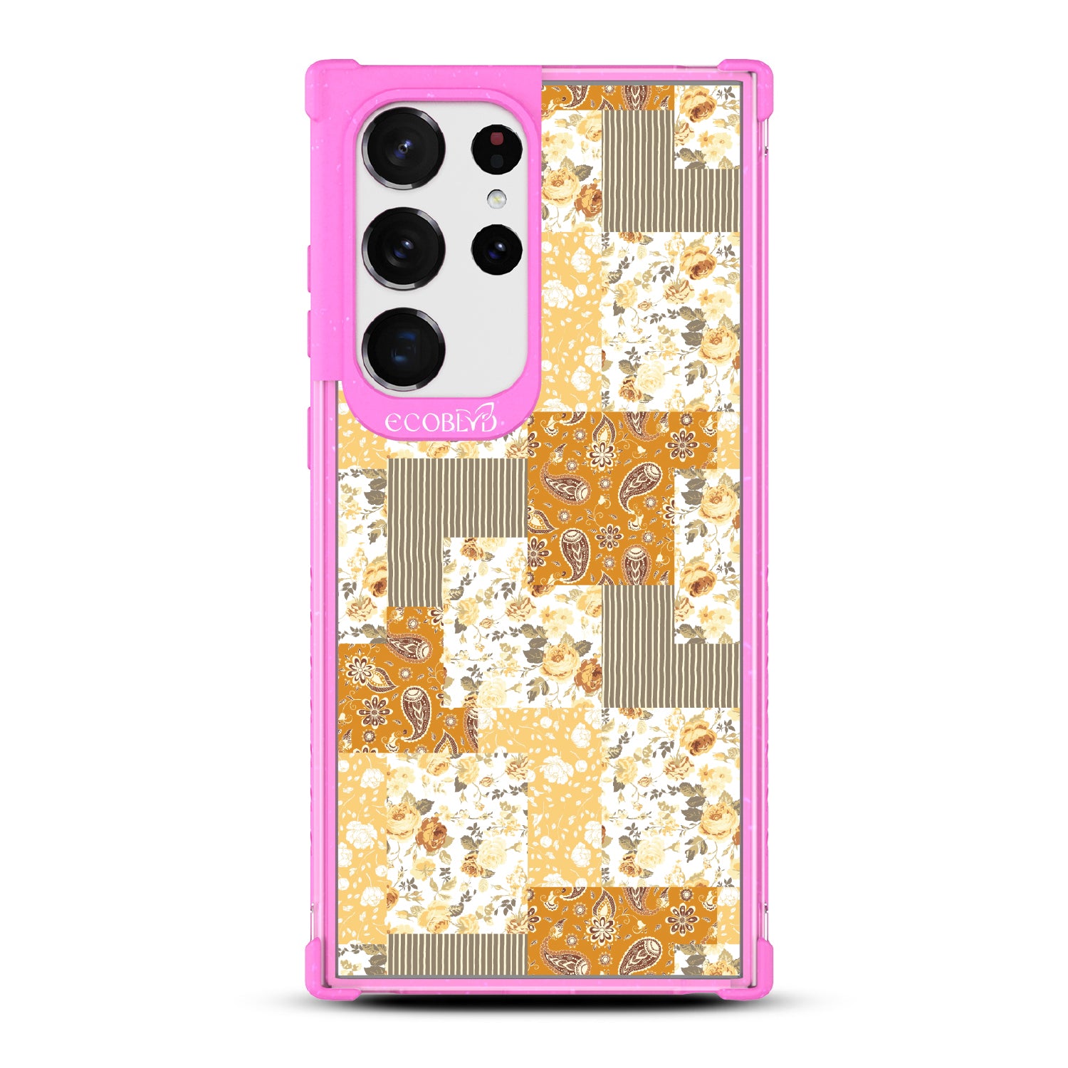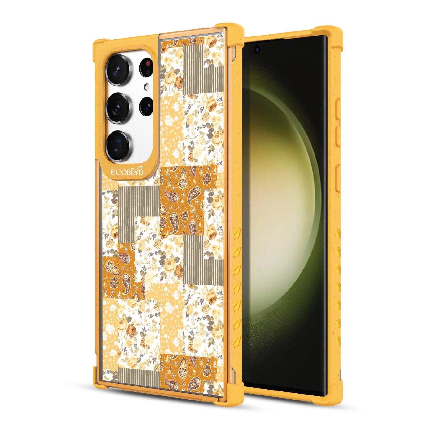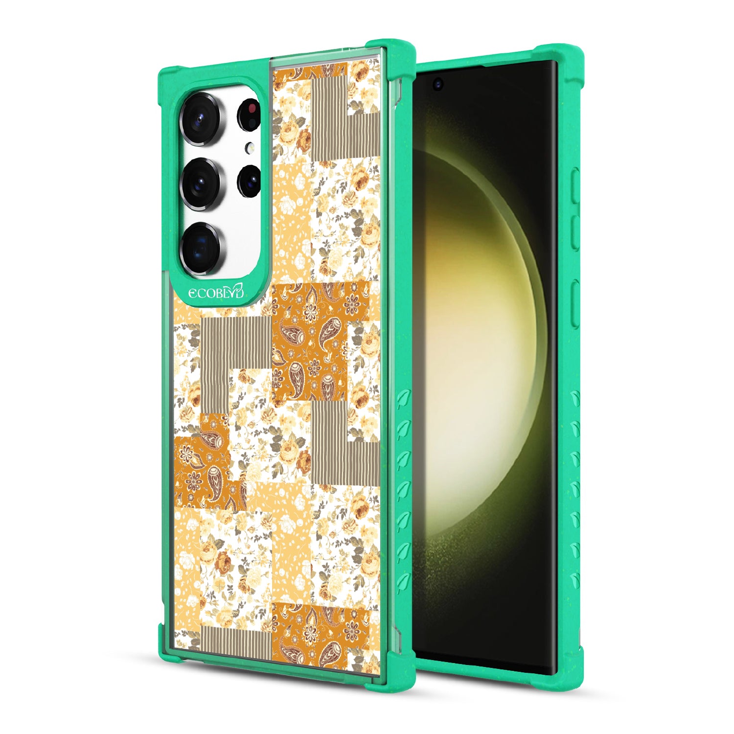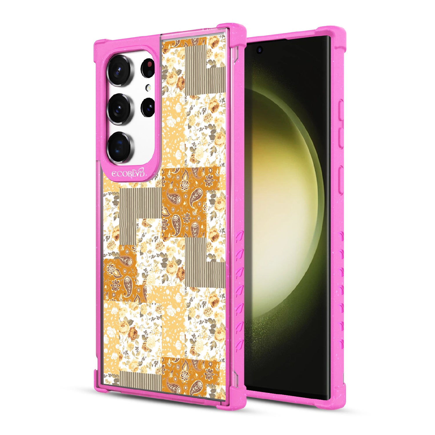 Everything falls into place with the Fall into Place design on our Laguna clear Galaxy S23 Ultra cases. Layered with intricate florals, bold stripes, and earthy tones of mustard, cream, and rust, this patchwork mirrors the textured complexity of fall. From the crisp rustle of leaves underfoot to the soft warmth of layered knits, this design reflects autumn’s depth and richness at every turn.