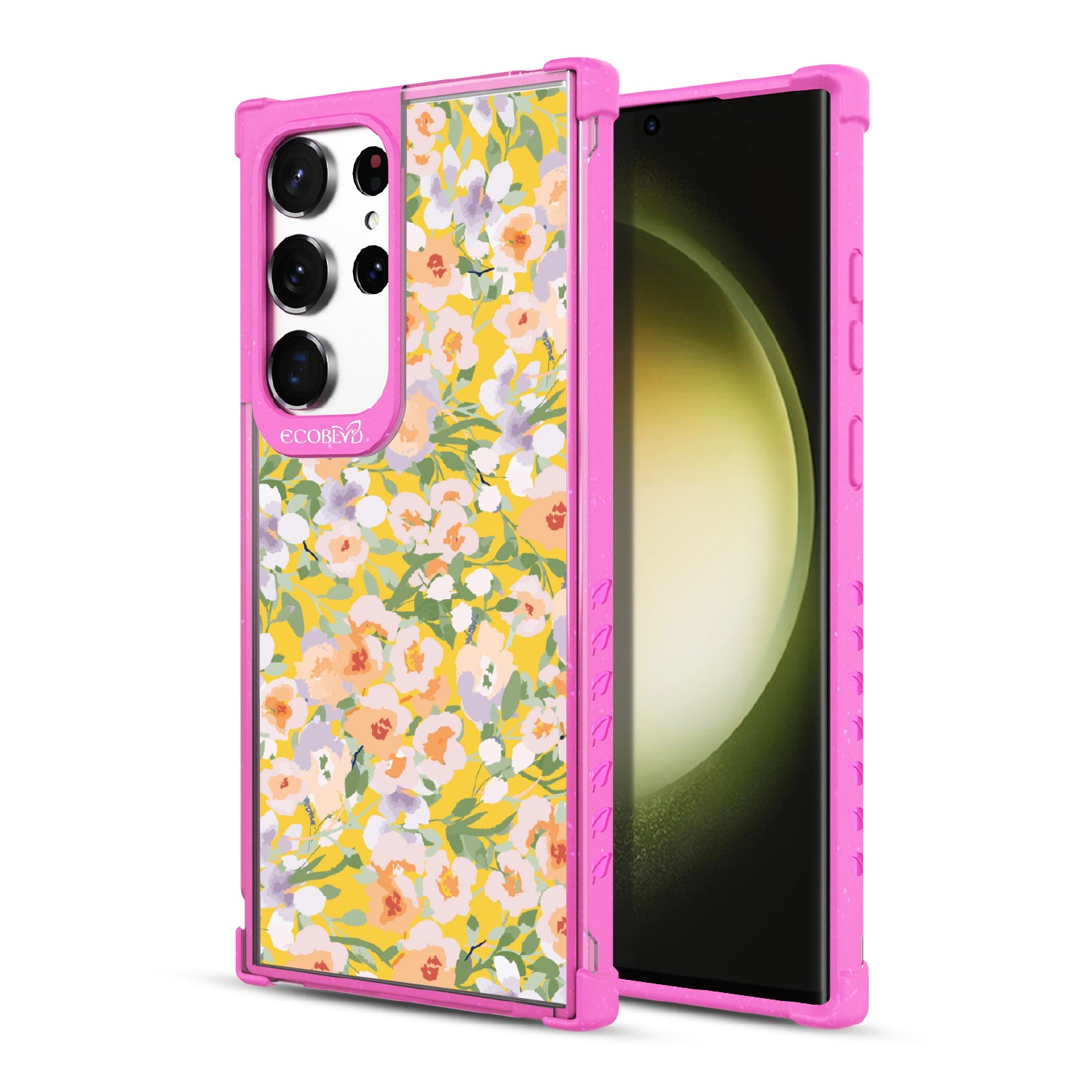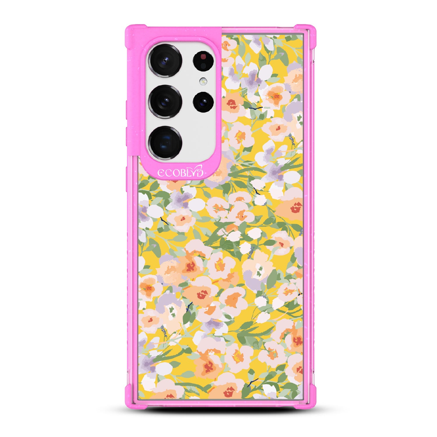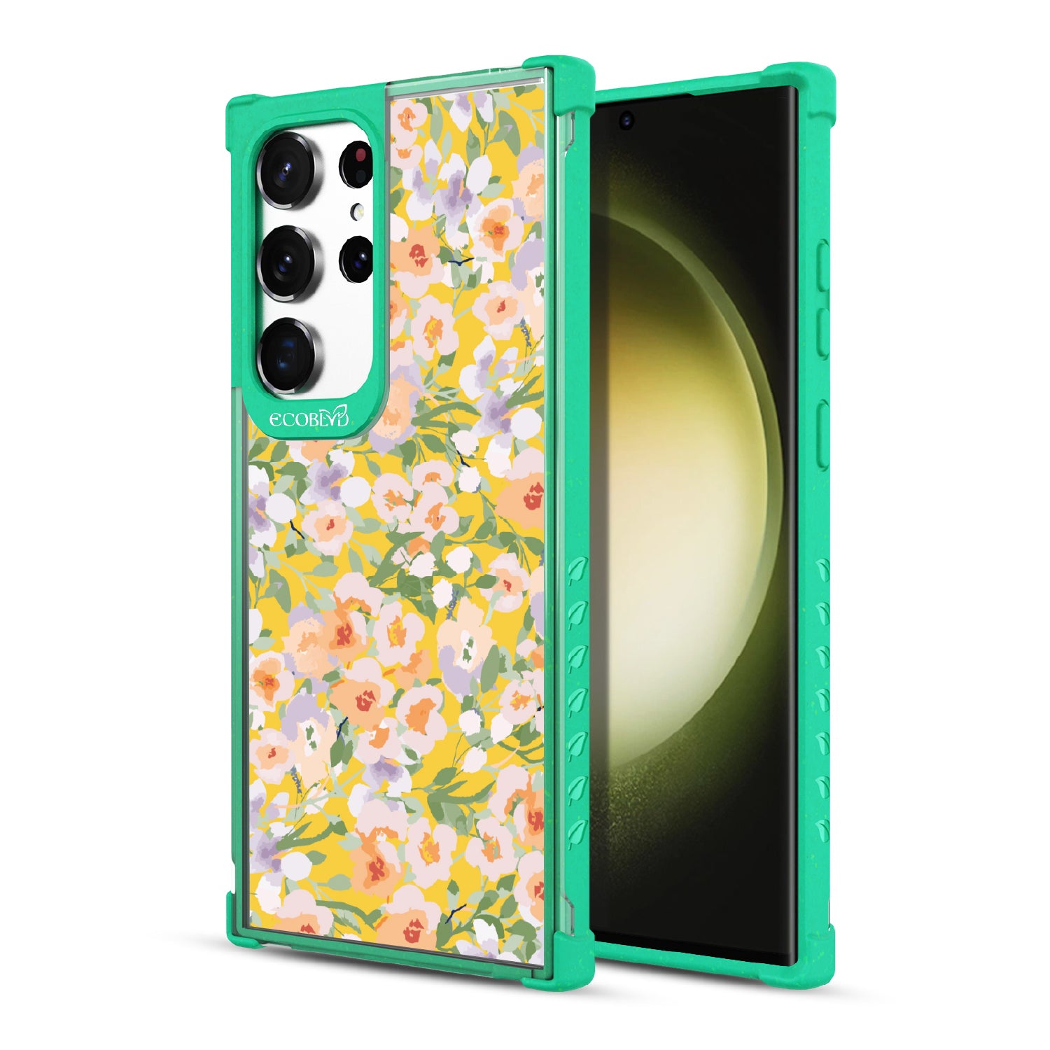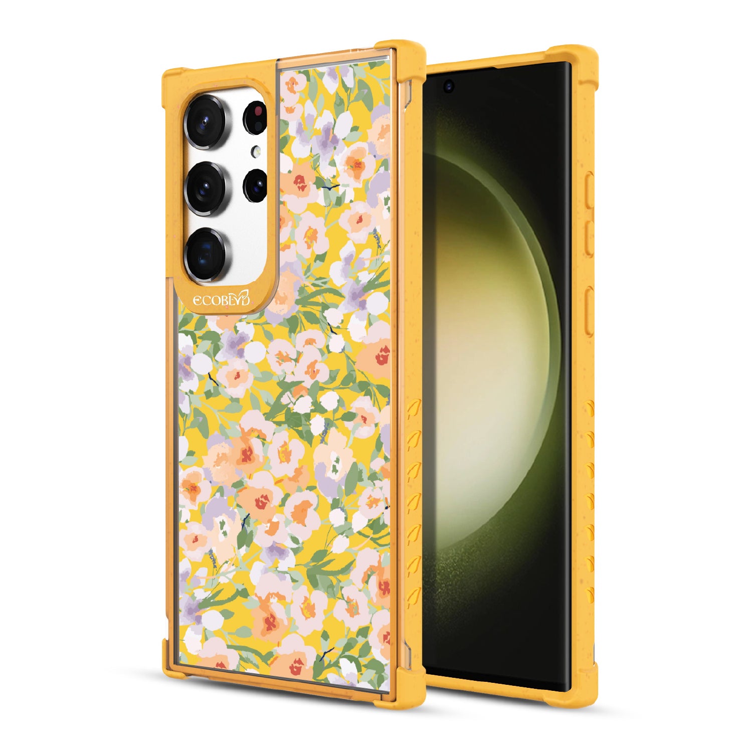 The sun paints with light, and flowers carry the glow. The Flourish & Shine design on our Laguna clear Galaxy S23 Ultra case blends sweeping yellows, peachy petals, and airy greens in soft, expressive brushstrokes. A composition that radiates warmth, movement, and the quiet brilliance of nature’s palette.