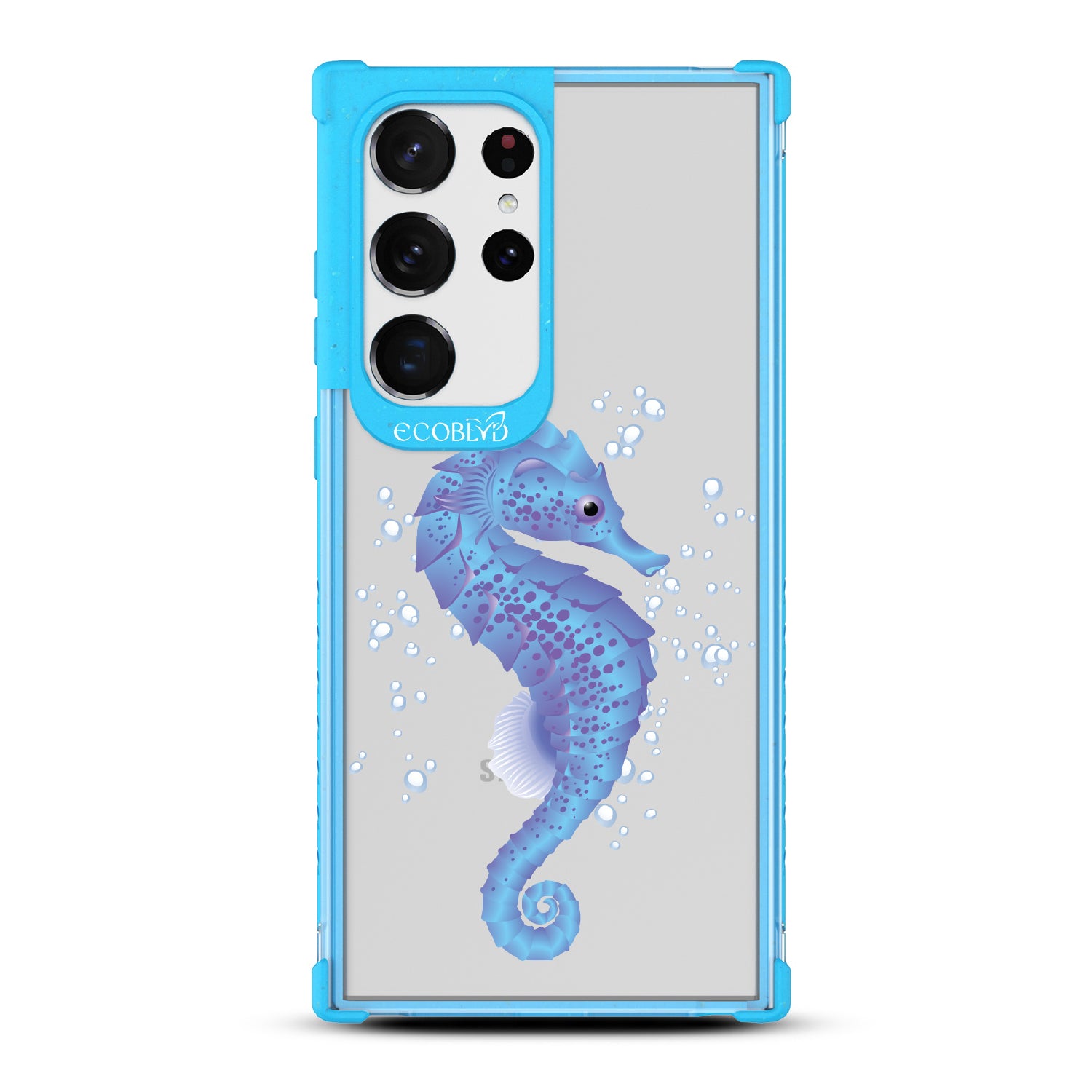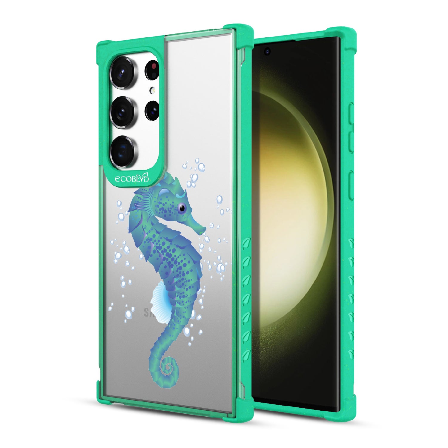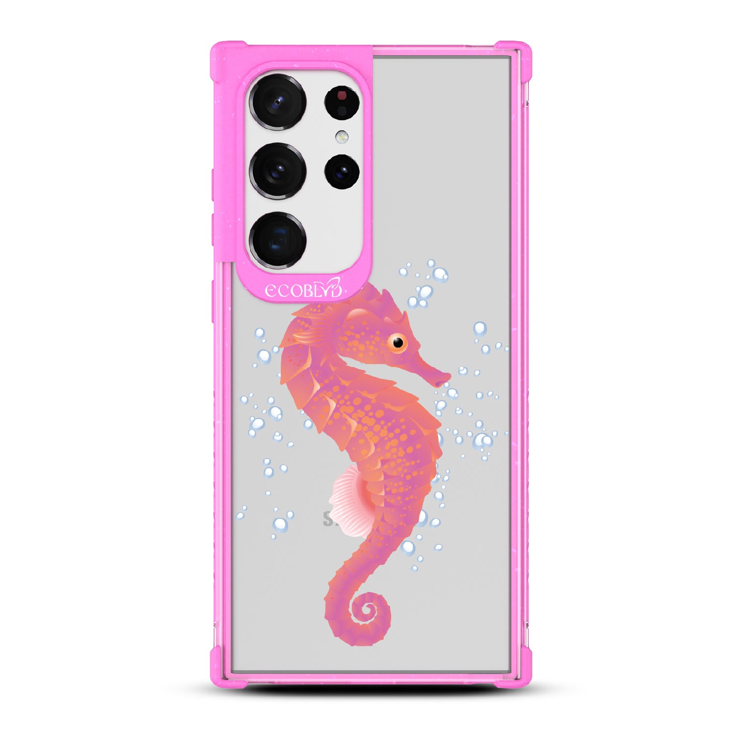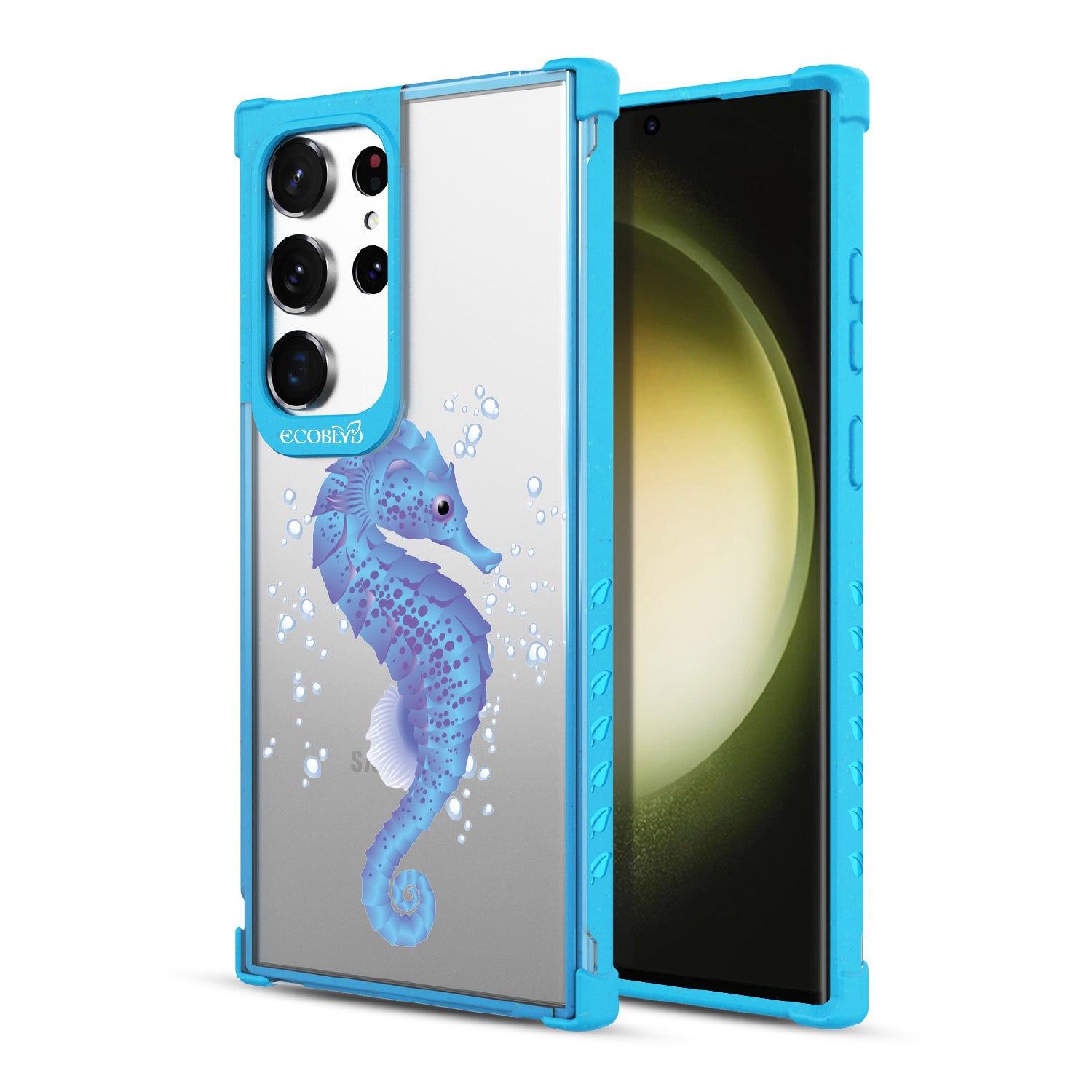 Giddy up and ride the waves with the Gallop of the Sea design on our Laguna clear Galaxy S23 Ultra phone case! A seahorse leads the way, prancing through a stream of shimmering bubbles, turning your phone into the ultimate sea steed. With this design, you’re always in the winner’s circle.