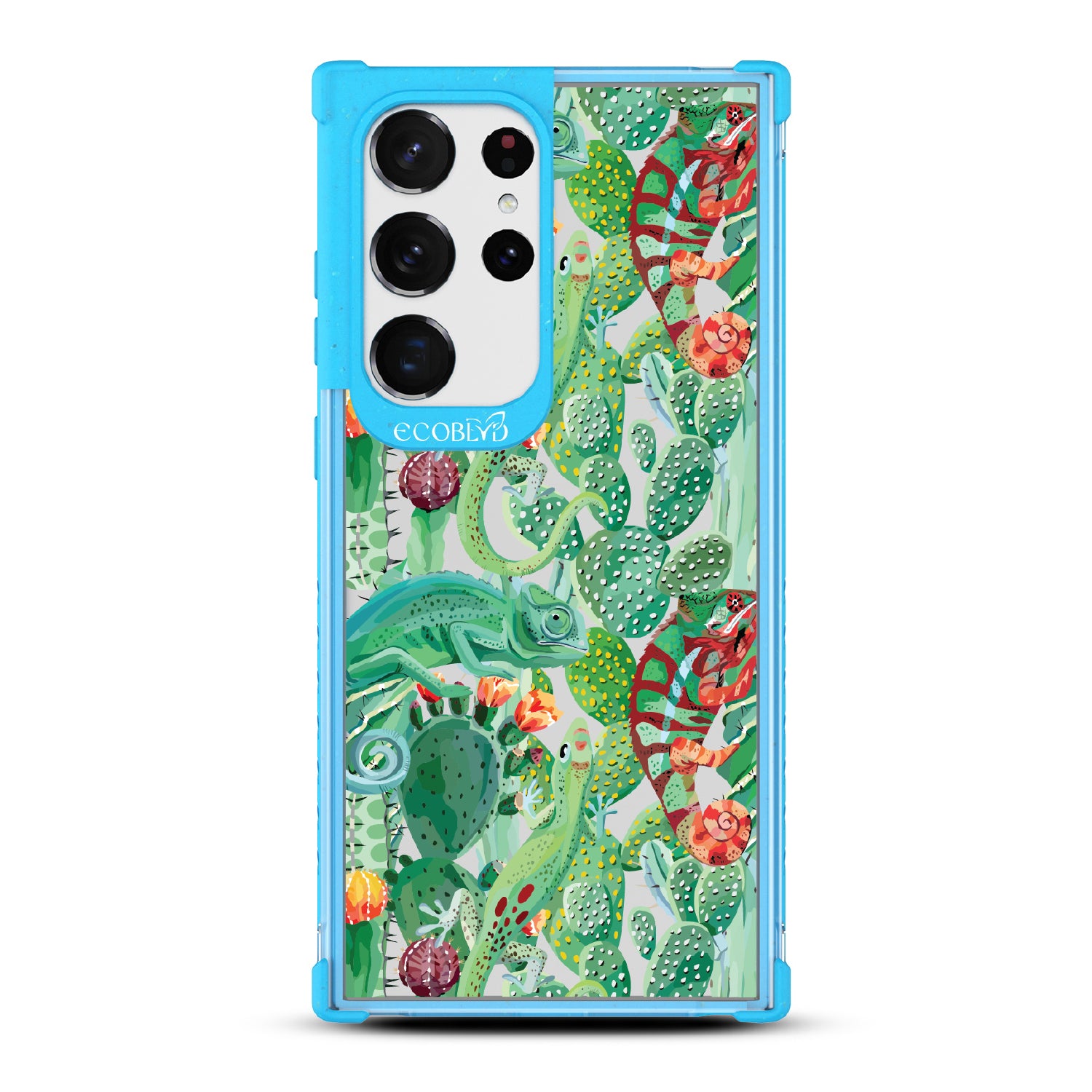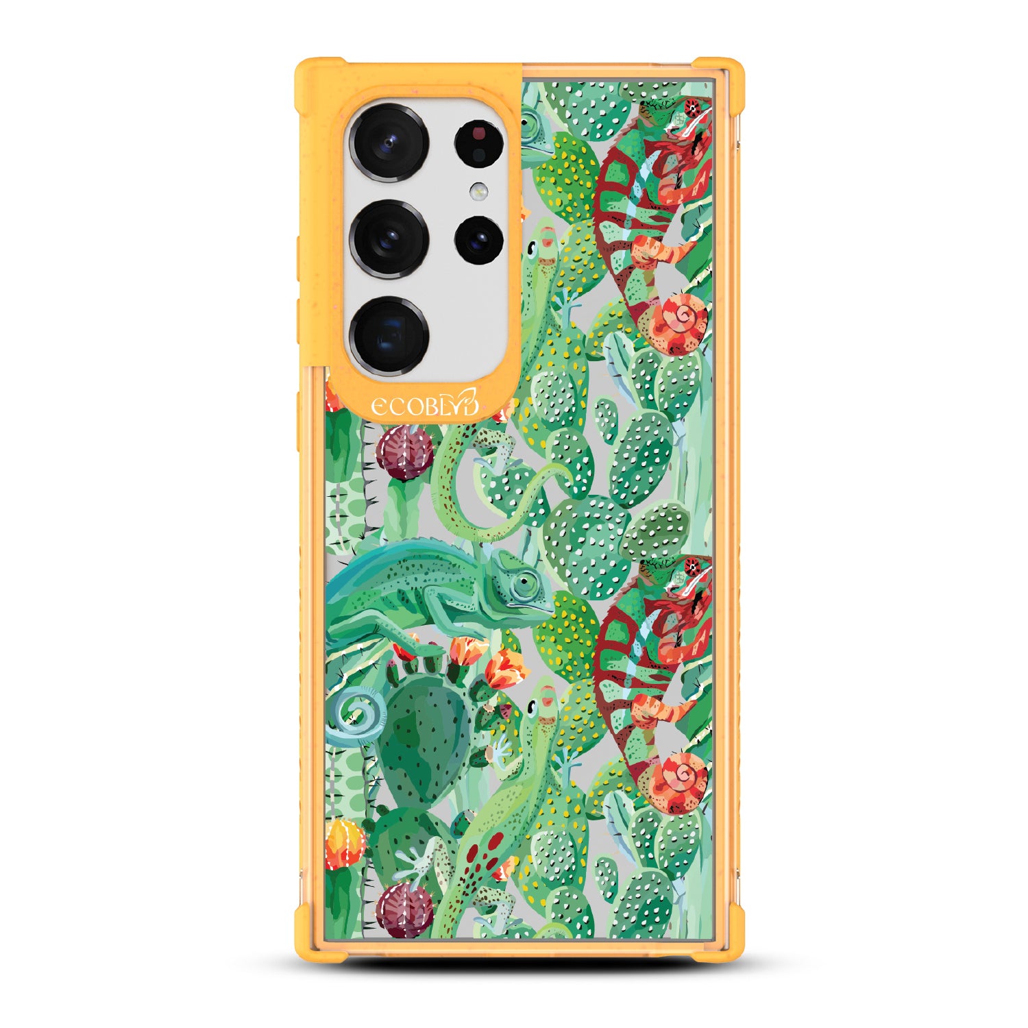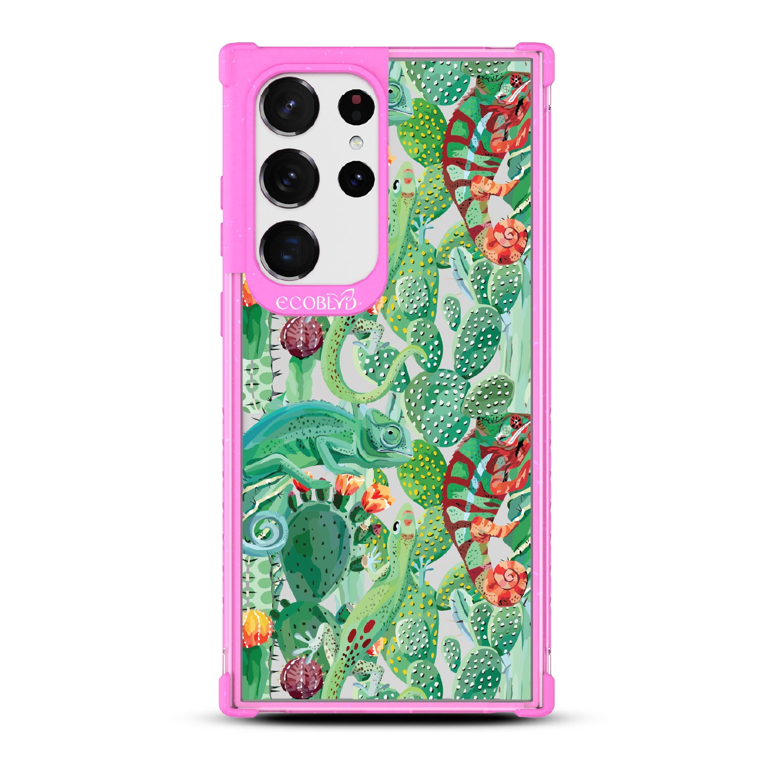 Embrace the captivating artistry of nature's hidden wonders with In Plain Sight, an exclusive design crafted for the Laguna clear Galaxy S23 Ultra phone case. Immerse yourself in impeccable style and protection while supporting ocean conservation efforts, as you embark on a wild journey with this captivating phone case. This design shows that sometimes, the most beautiful things are hiding In Plain Sight with a playful nod to the chameleons' camouflage abilities and their effortless blend into the colorful cactus landscape in five captivating colors: Midnight Black, Cascade Blue, Foliage Green, Illuminating Yellow, and Wildflower Pink.
