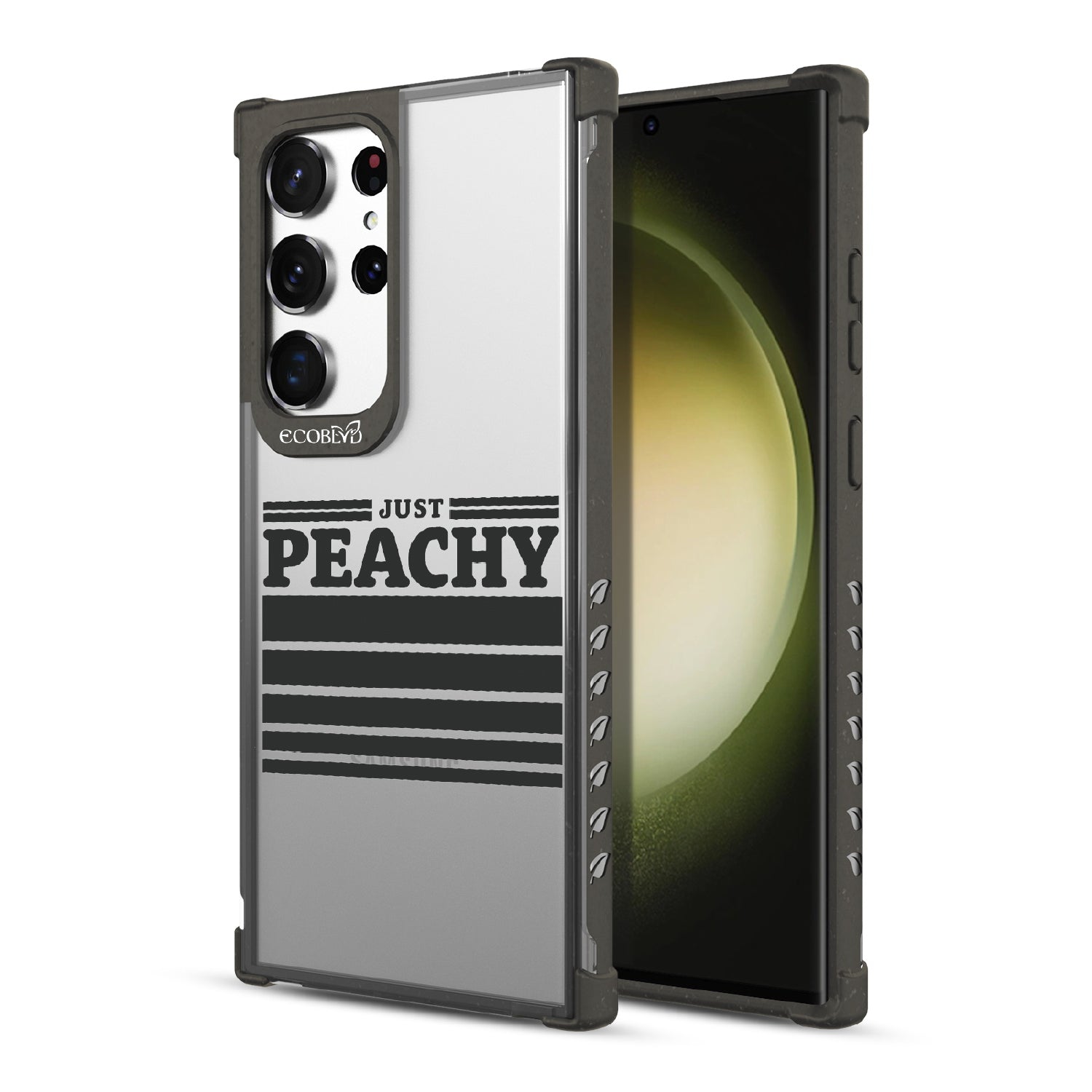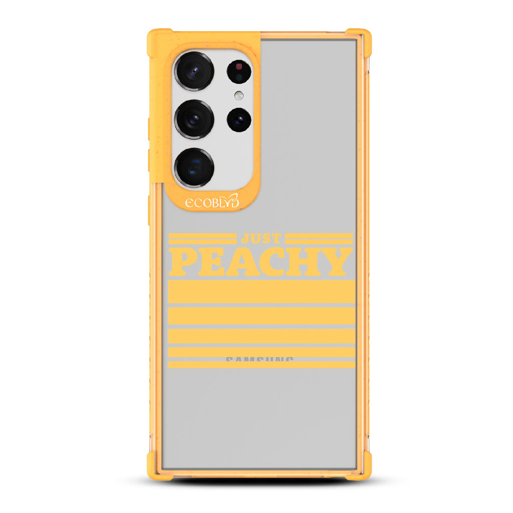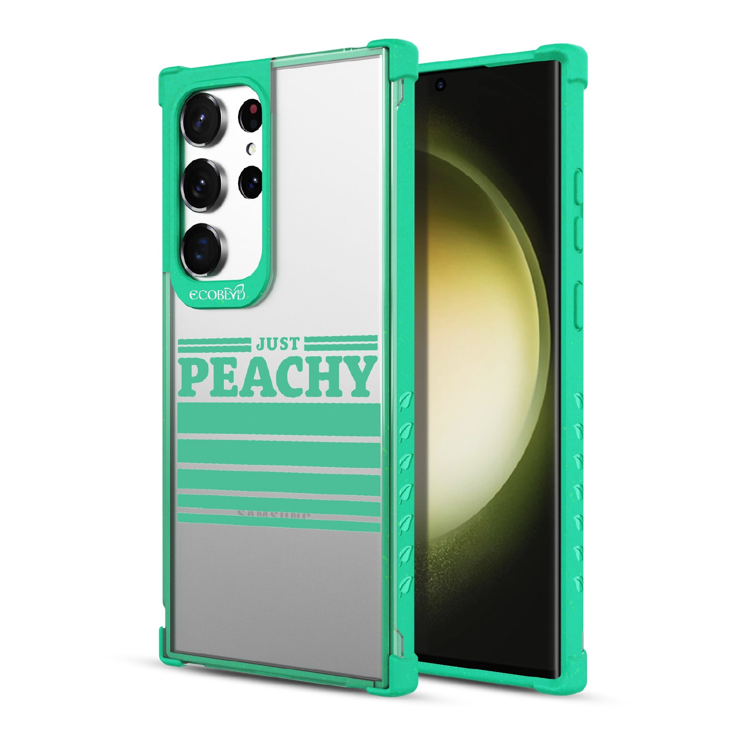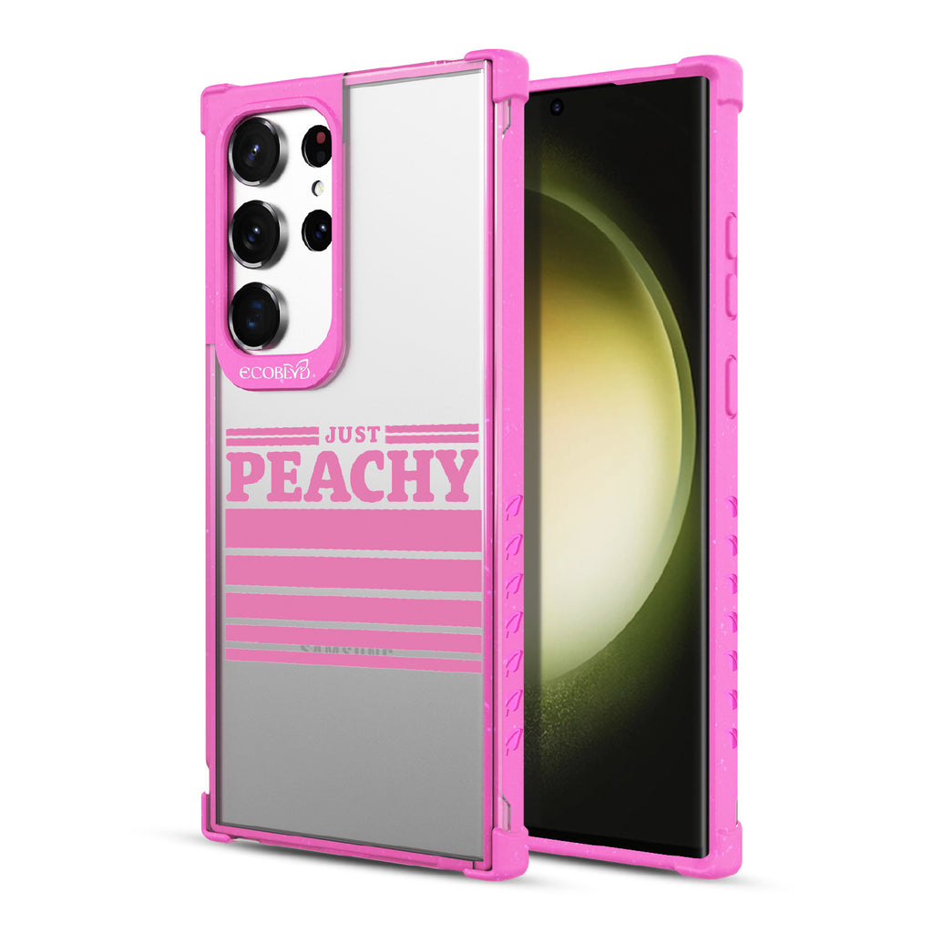 Bringing a flavorful twist to your Galaxy S23 Ultra, the incredibly keen Just Peachy design on our Laguna clear Galaxy S23 Ultra phone case emphasizes your bright, bold, and uniquely sassy style in five vibrant colors: Midnight Black, Cascade Blue, Foliage Green, Illuminating Yellow, and Wildflower Pink.