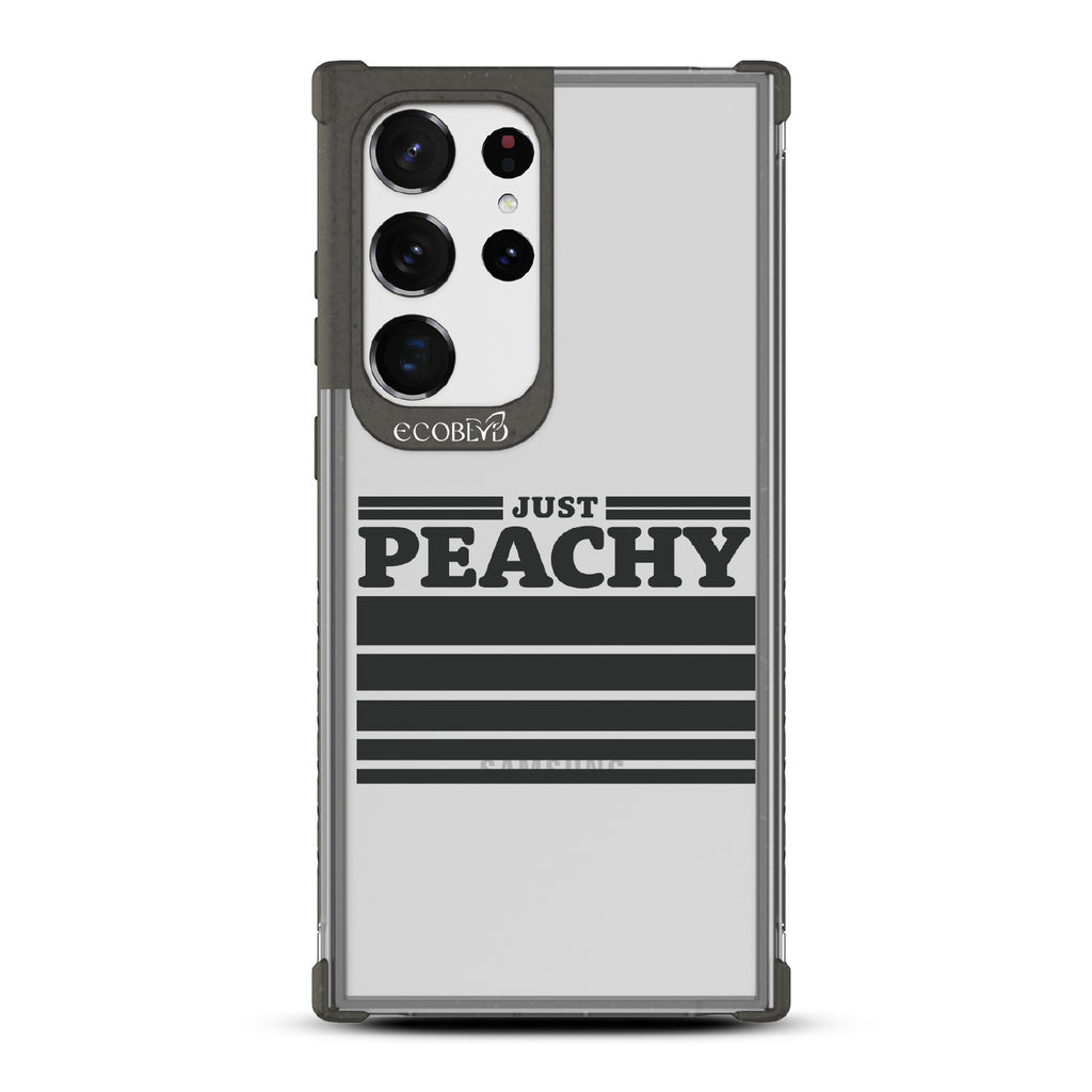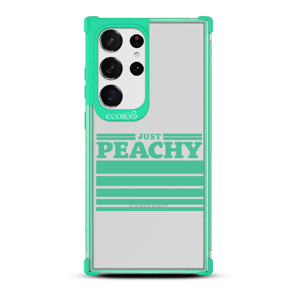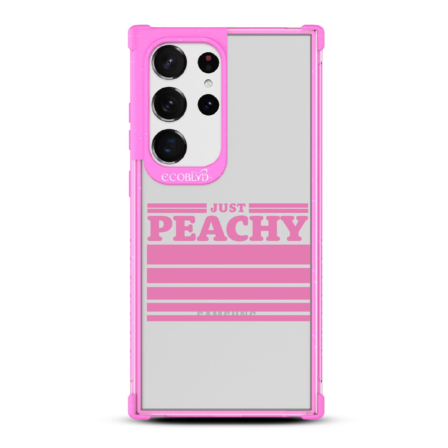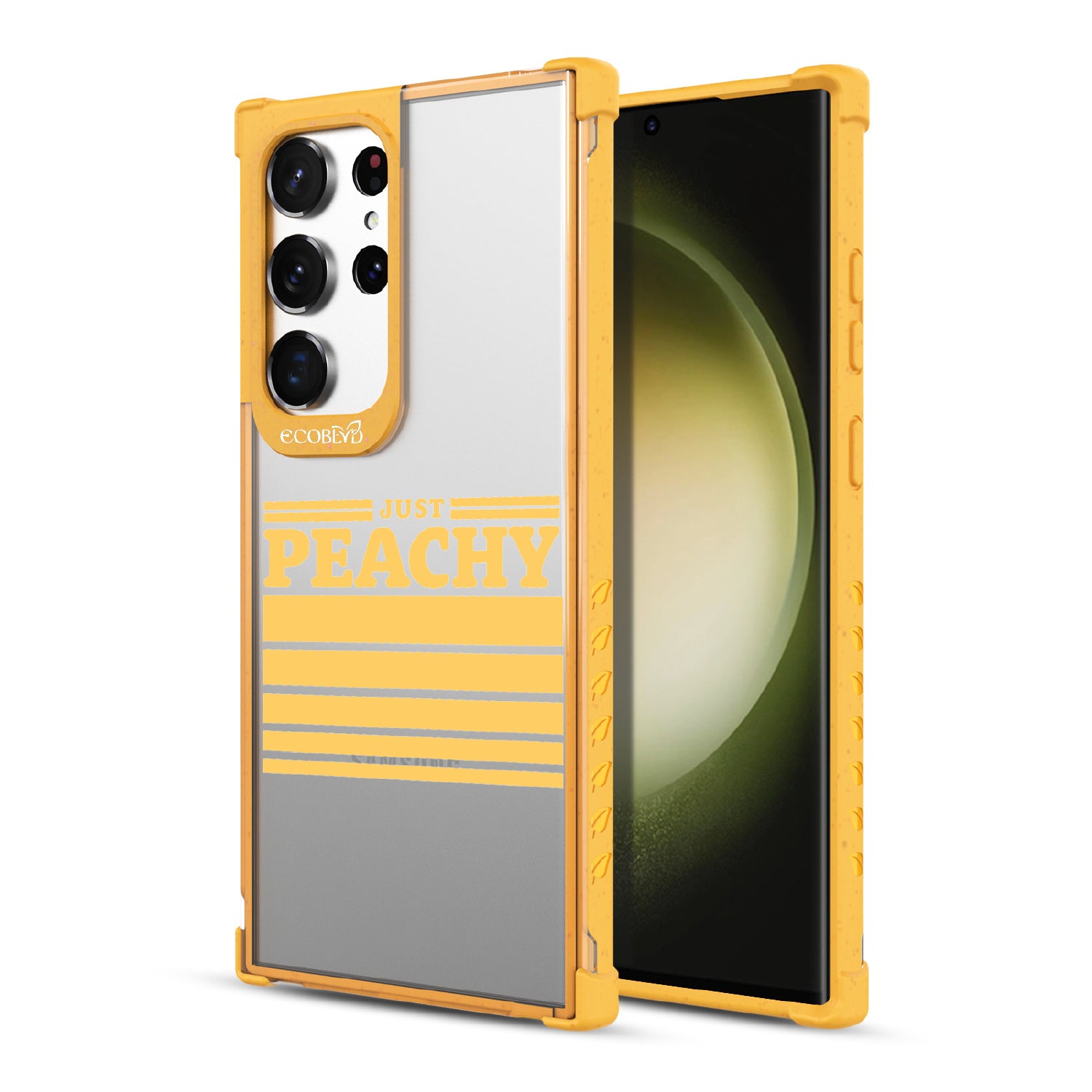 Bringing a flavorful twist to your Galaxy S23 Ultra, the incredibly keen Just Peachy design on our Laguna clear Galaxy S23 Ultra phone case emphasizes your bright, bold, and uniquely sassy style in five vibrant colors: Midnight Black, Cascade Blue, Foliage Green, Illuminating Yellow, and Wildflower Pink.