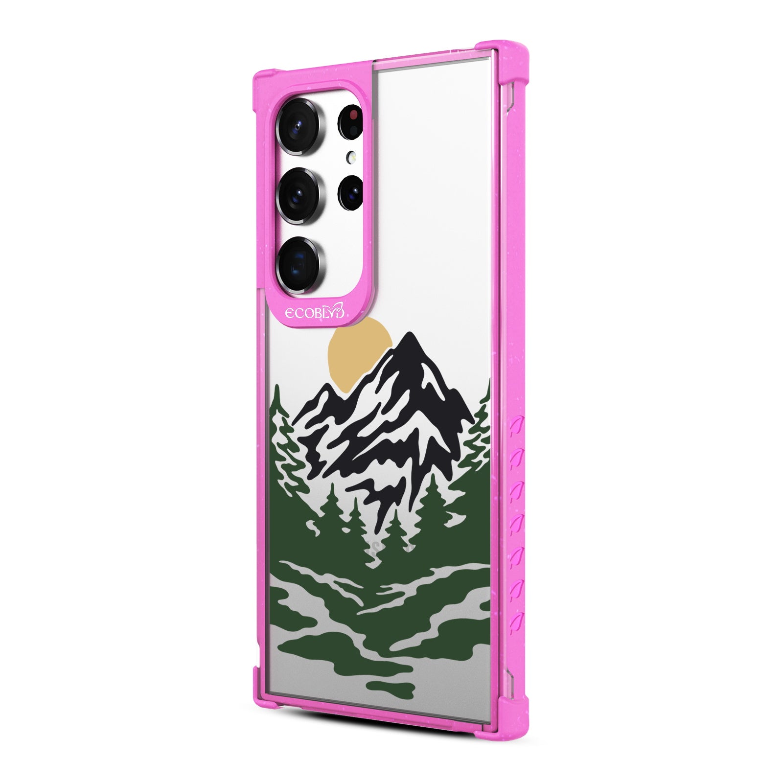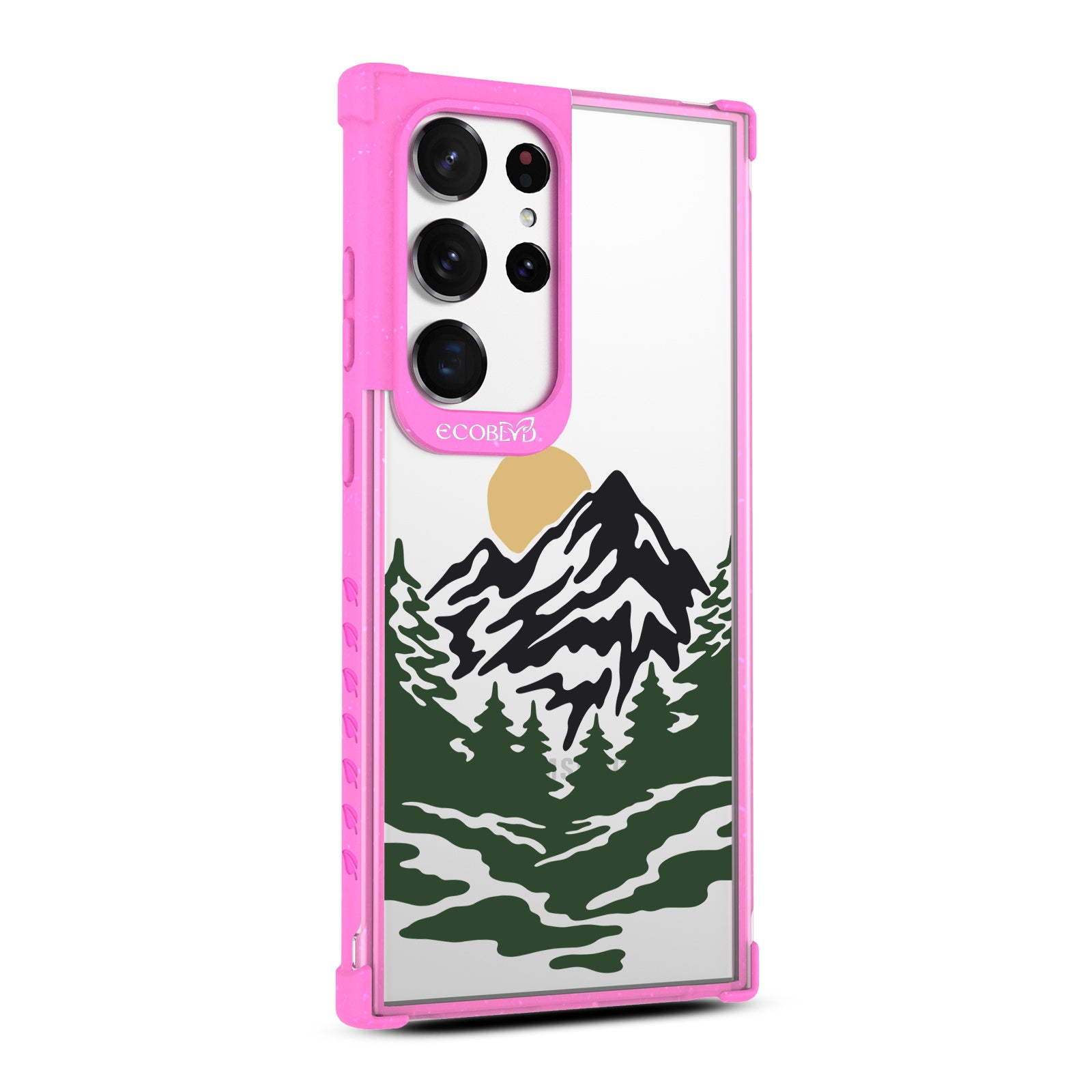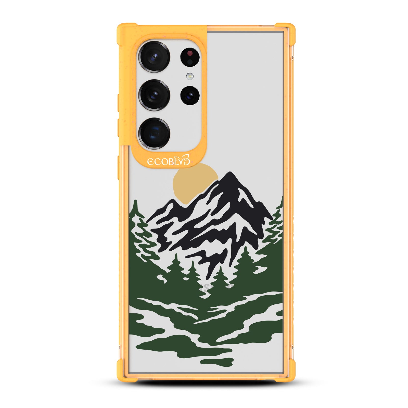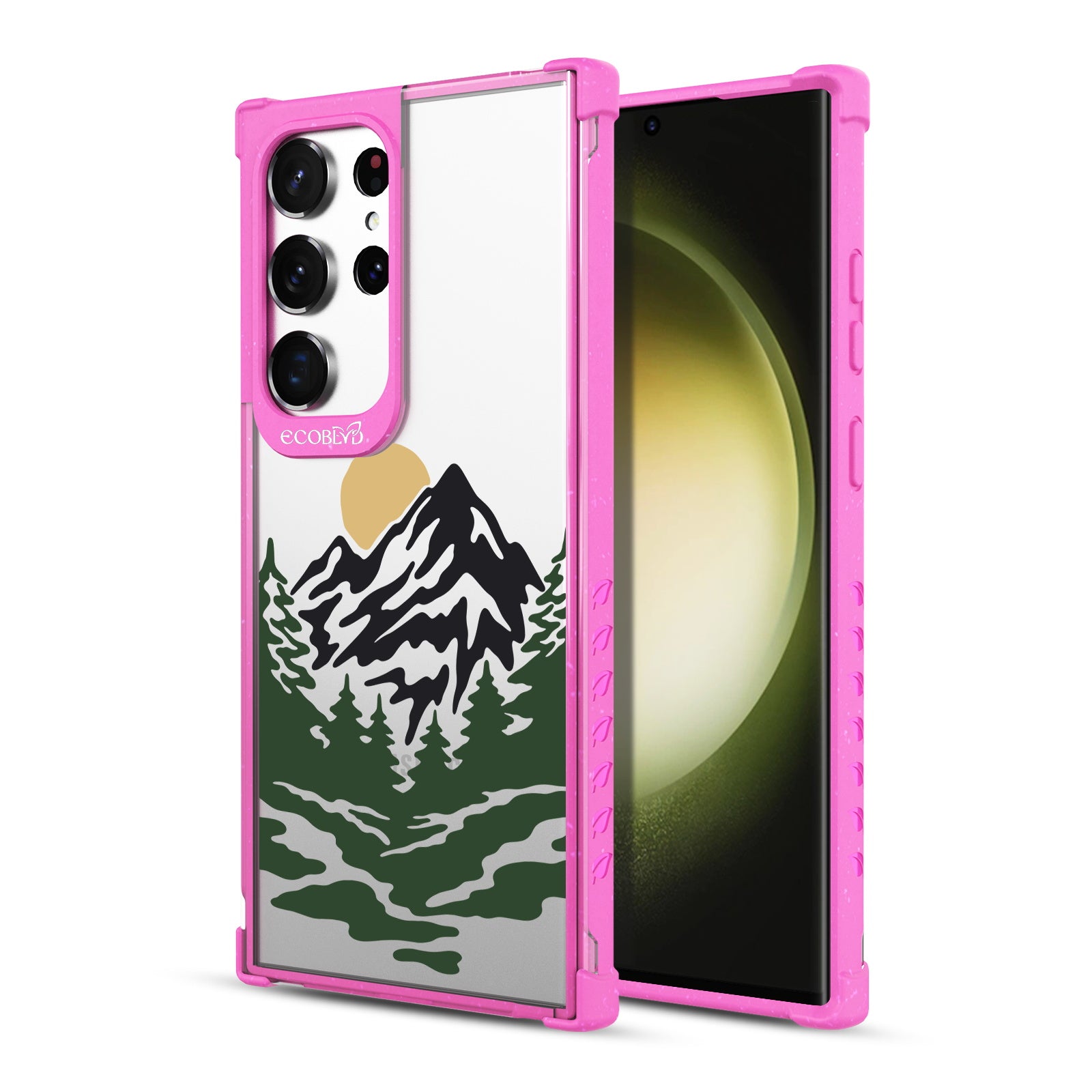 Like a breath of fresh air, the Mountains design on our Laguna clear Galaxy S23 Ultra phone case puts your phone in the middle of a stunning nighttime wooded mountain trail that captures the excitement of camping and hiking in five vibrant colors: Midnight Black, Cascade Blue, Foliage Green, Illuminating Yellow, and Wildflower Pink.