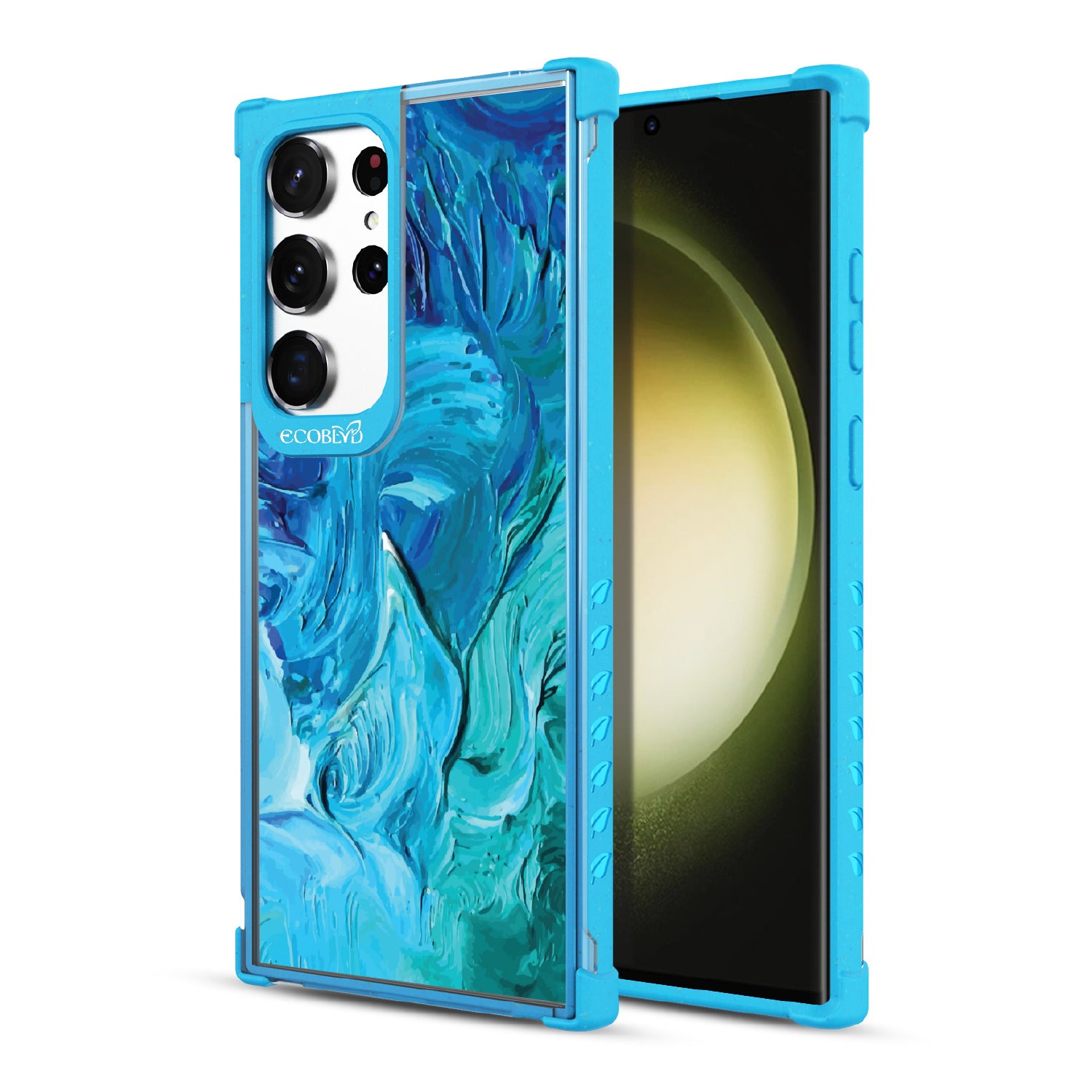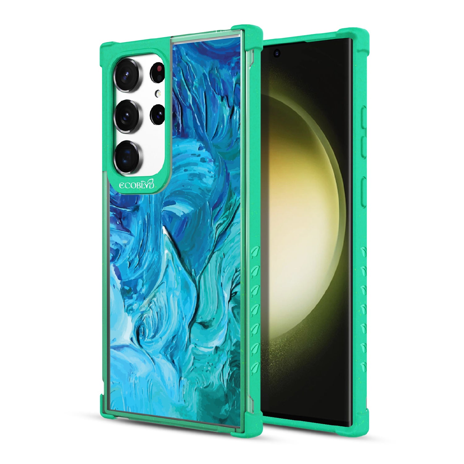 Let the current take control. The Oceanswept design on our Laguna clear Galaxy S23 Ultra case and iPhone 14 case swirls in fluid blues and greens, mimicking the way the tide carves patterns into the shore. A look shaped by movement, depth, and the artistry of the sea.