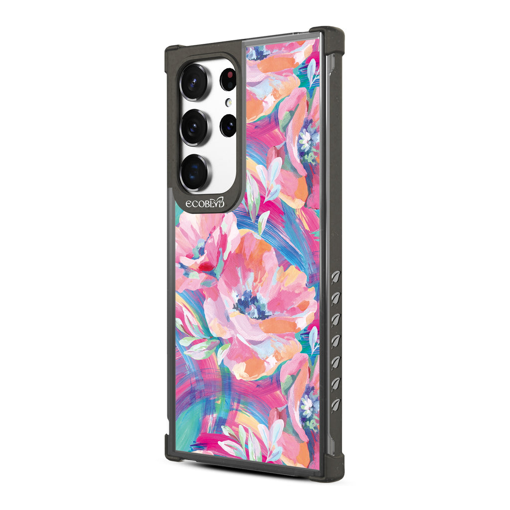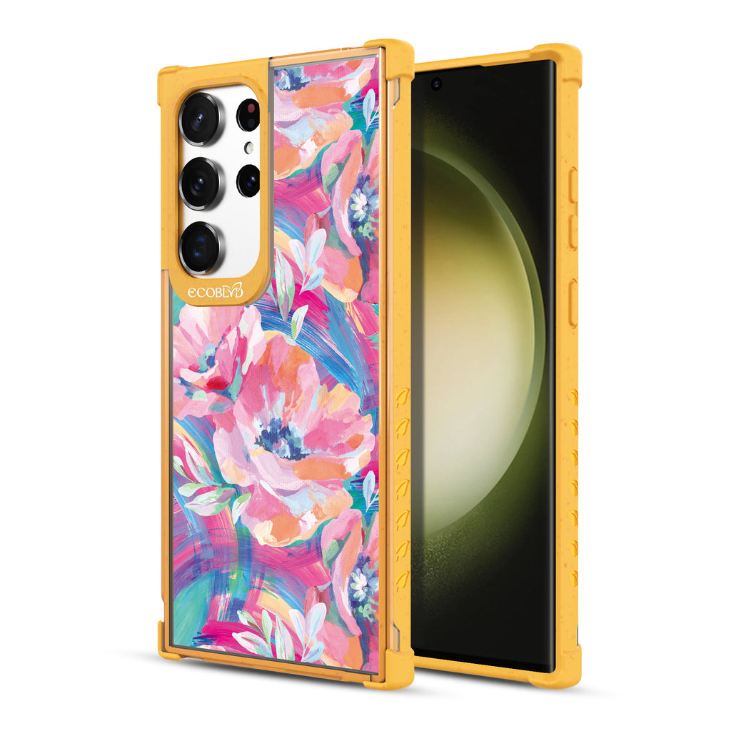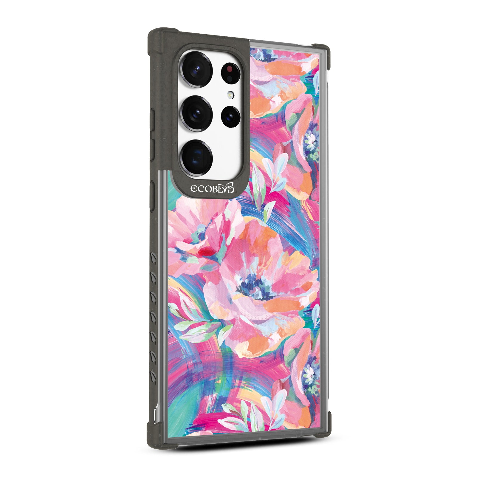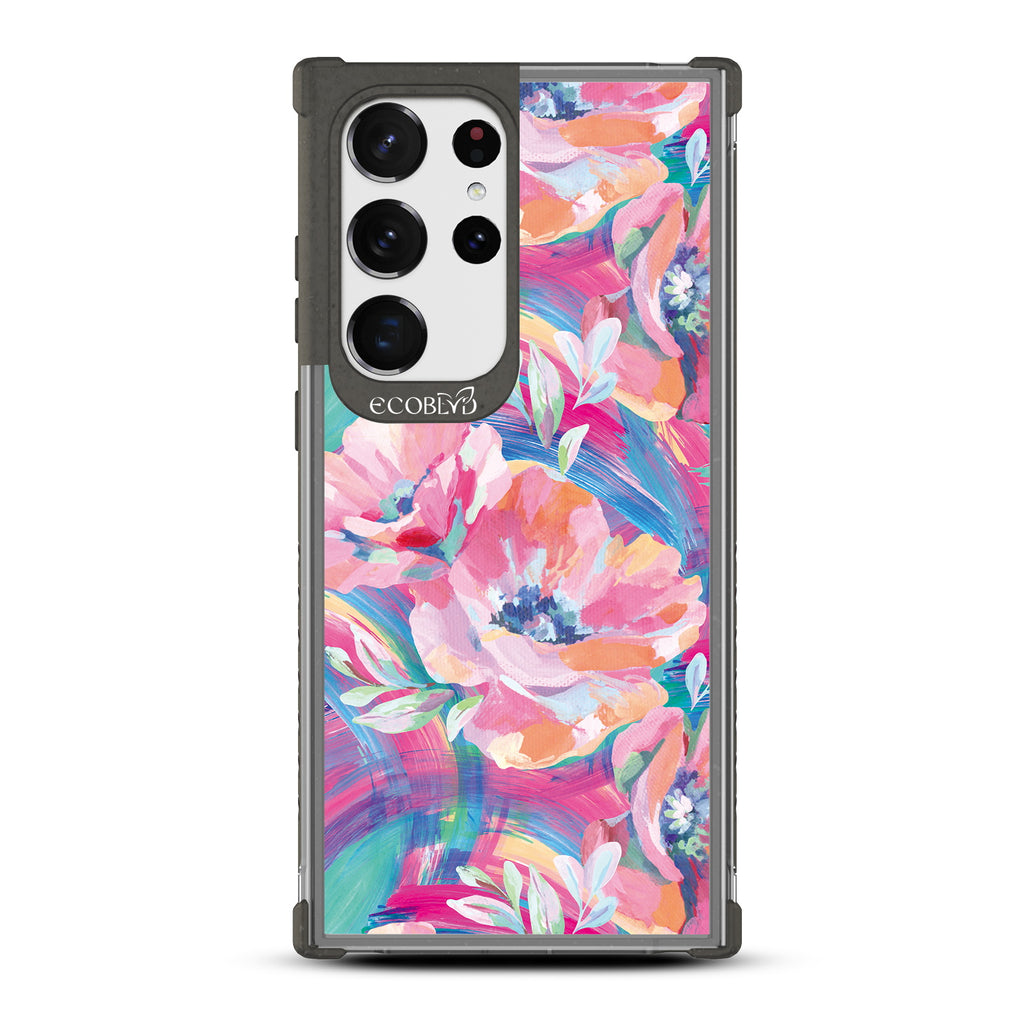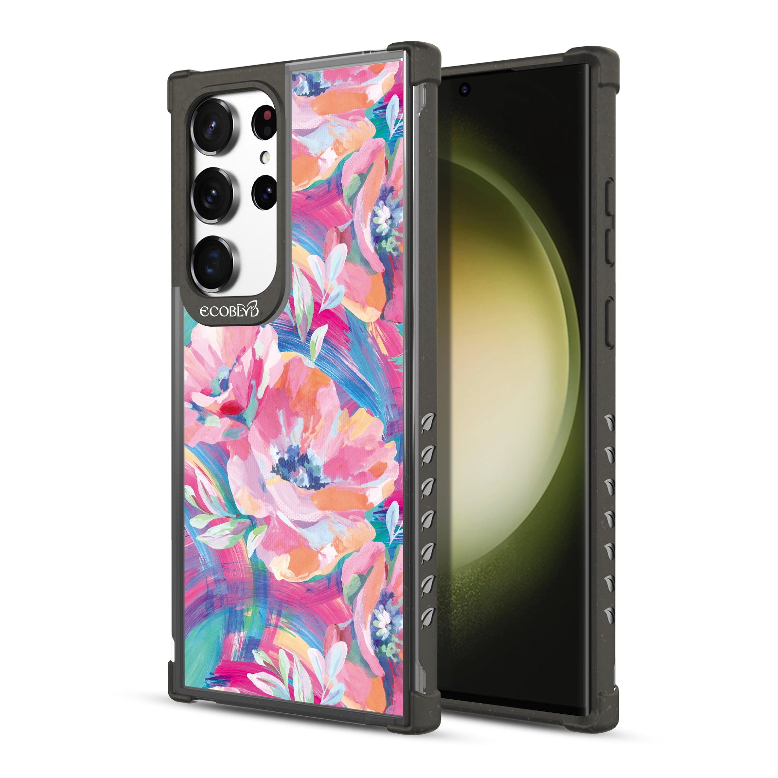 The Pastel Poppy design on our Laguna clear Galaxy S23 Ultra radiates with beautiful and cheerful energy, captivating the eye with its abstract brush stroke poppies and bright pastel colors, a perfect way to celebrate the start of a new bloom, five bright colorways: Midnight Black, Cascade Blue, Foliage Green, Illuminating Yellow, and Wildflower Pink.