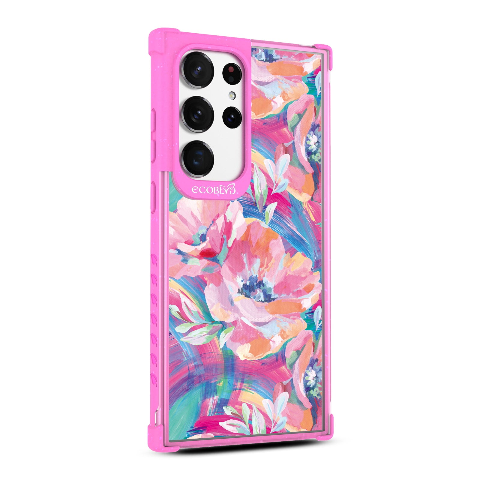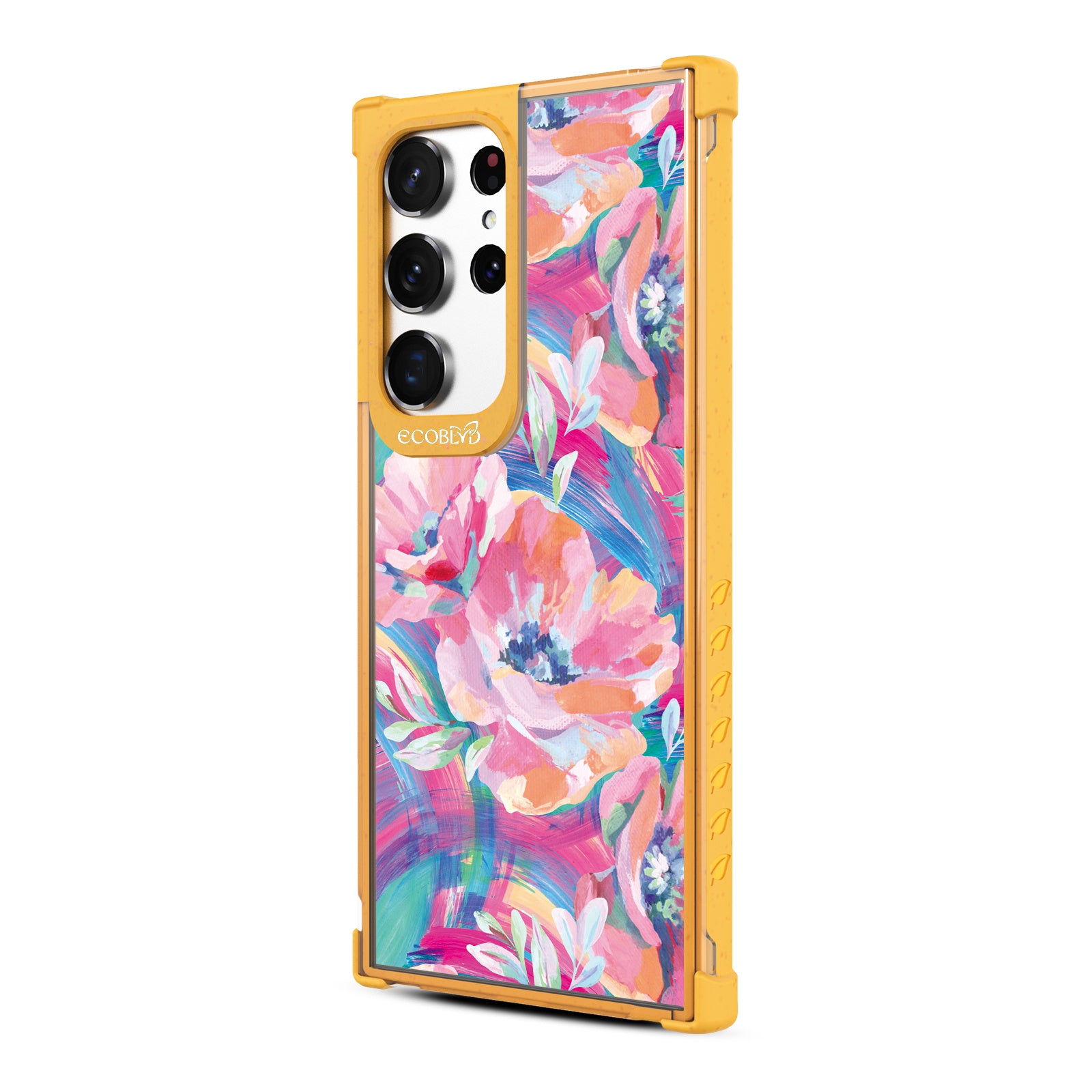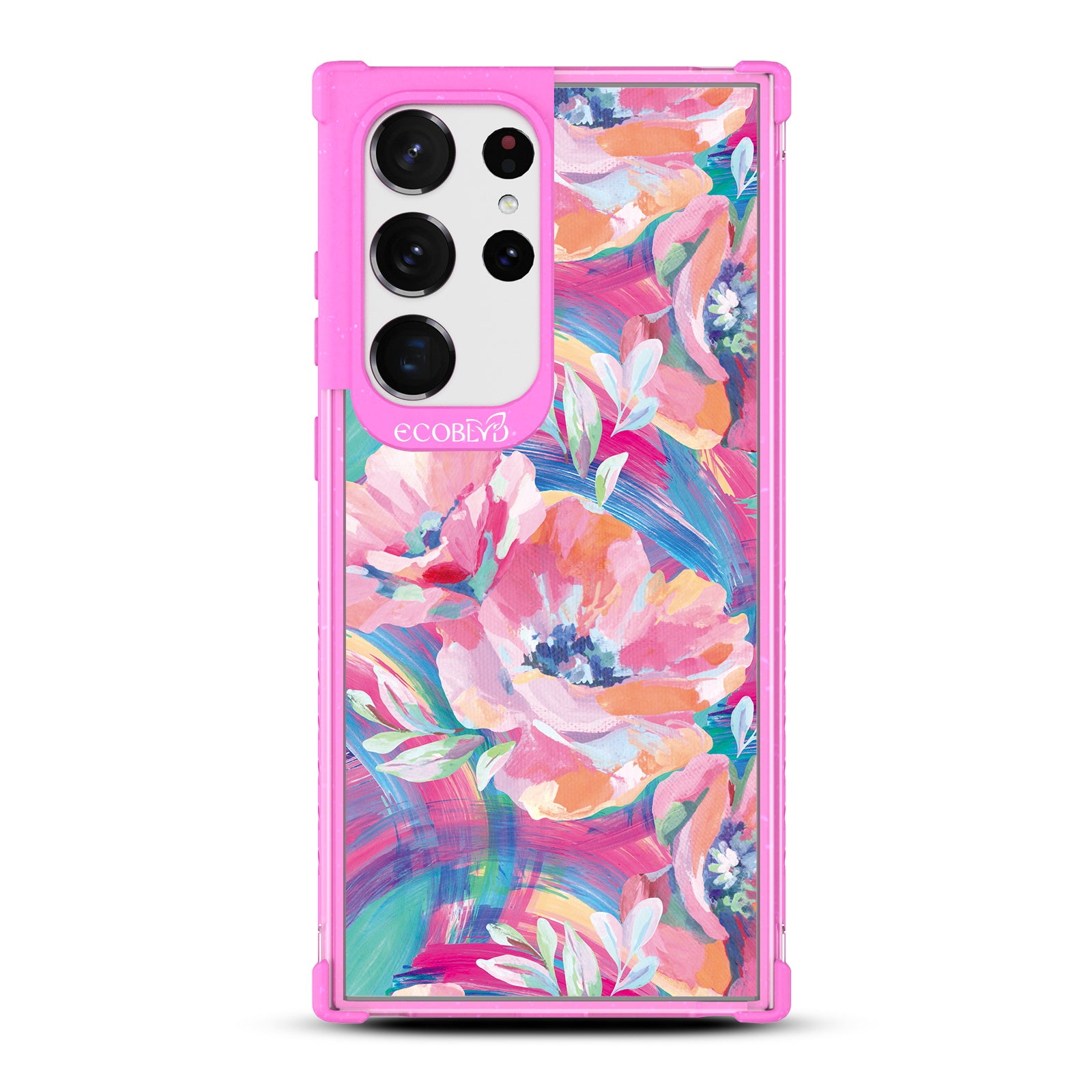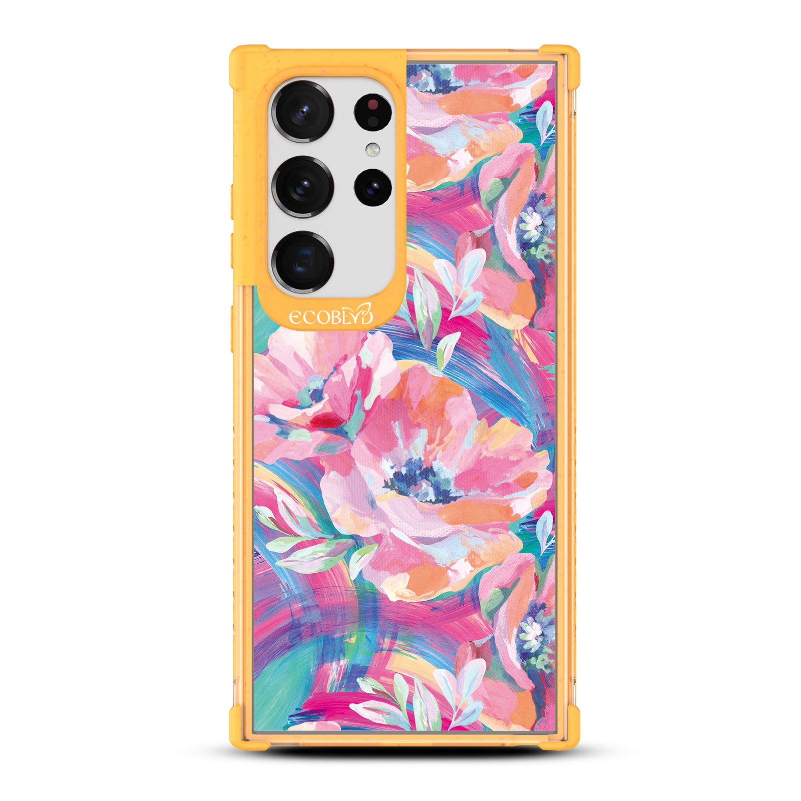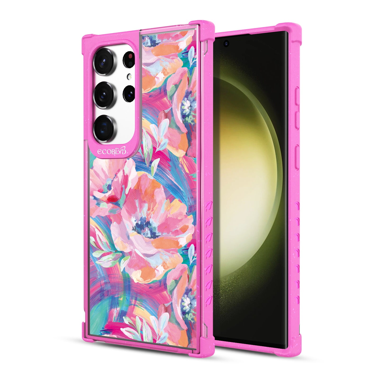 The Pastel Poppy design on our Laguna clear Galaxy S23 Ultra radiates with beautiful and cheerful energy, captivating the eye with its abstract brush stroke poppies and bright pastel colors, a perfect way to celebrate the start of a new bloom, five bright colorways: Midnight Black, Cascade Blue, Foliage Green, Illuminating Yellow, and Wildflower Pink.