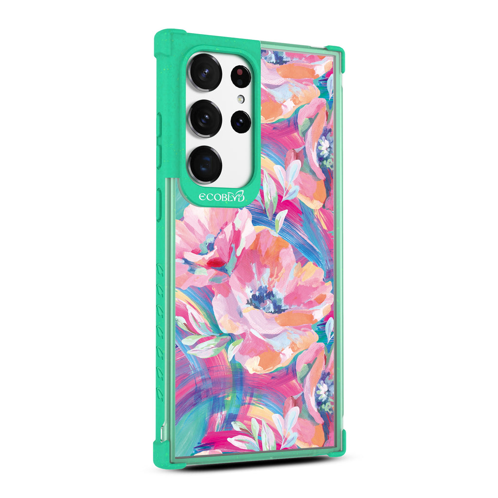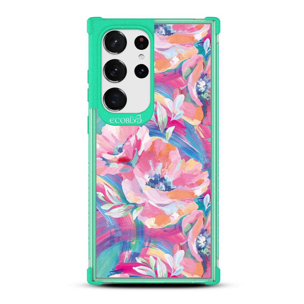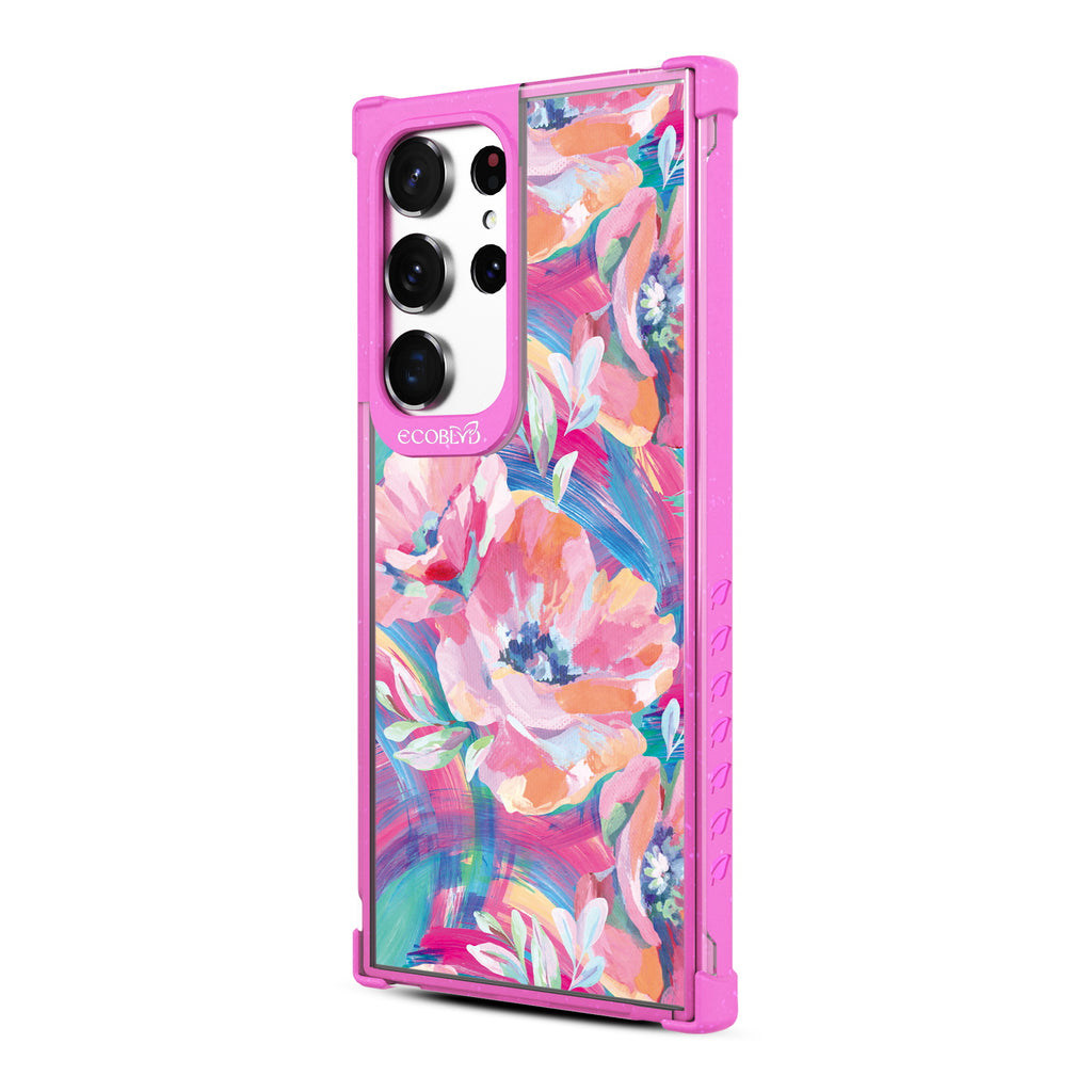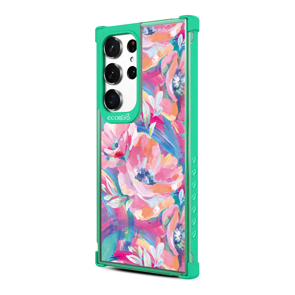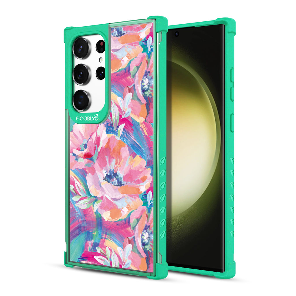 The Pastel Poppy design on our Laguna clear Galaxy S23 Ultra radiates with beautiful and cheerful energy, captivating the eye with its abstract brush stroke poppies and bright pastel colors, a perfect way to celebrate the start of a new bloom, five bright colorways: Midnight Black, Cascade Blue, Foliage Green, Illuminating Yellow, and Wildflower Pink.