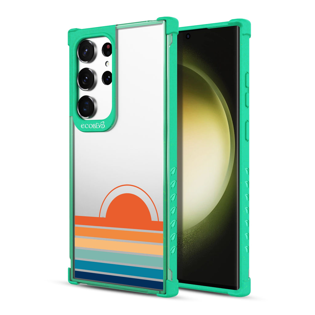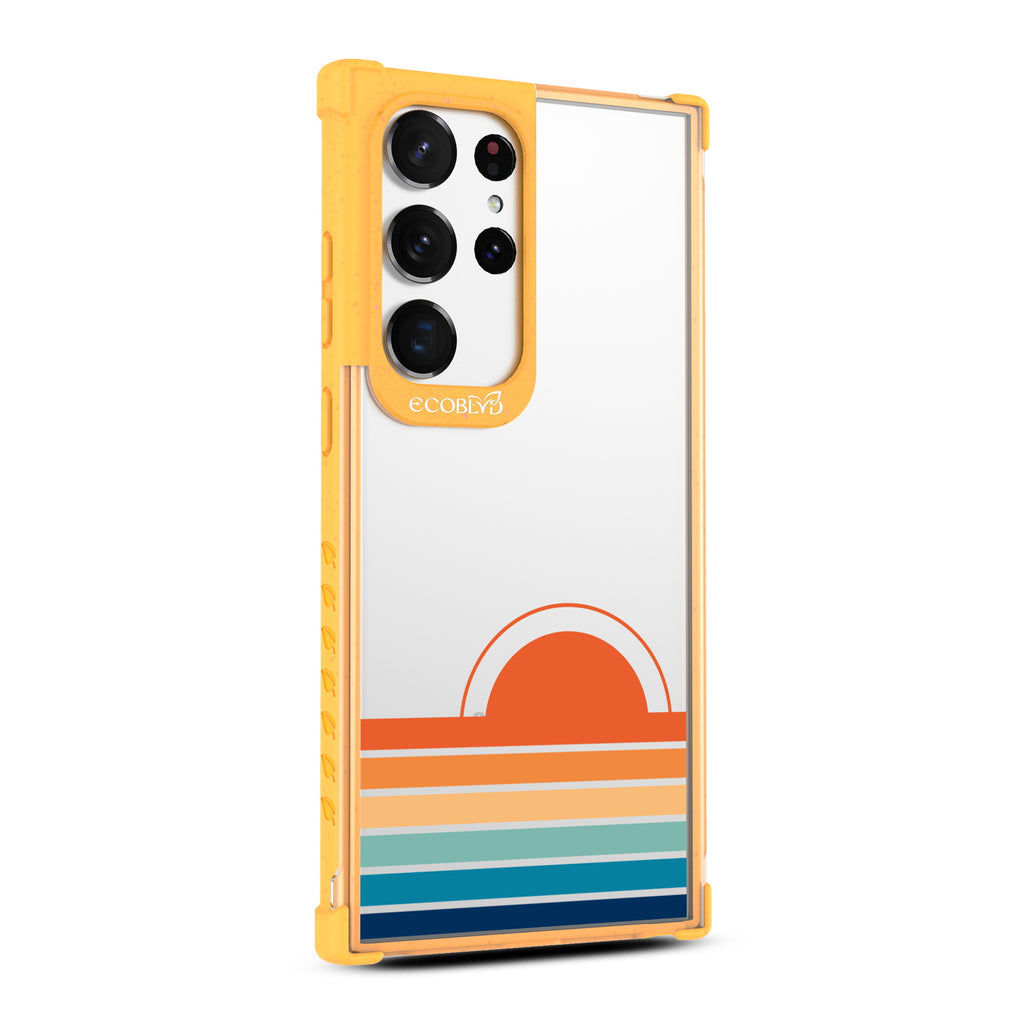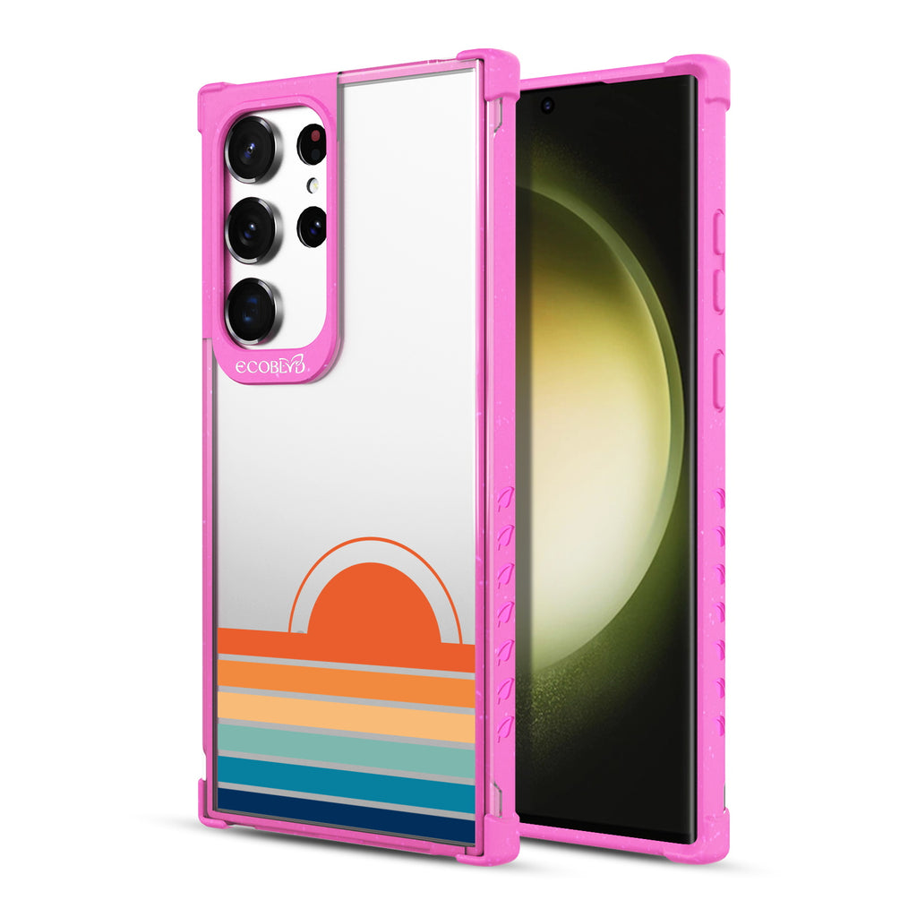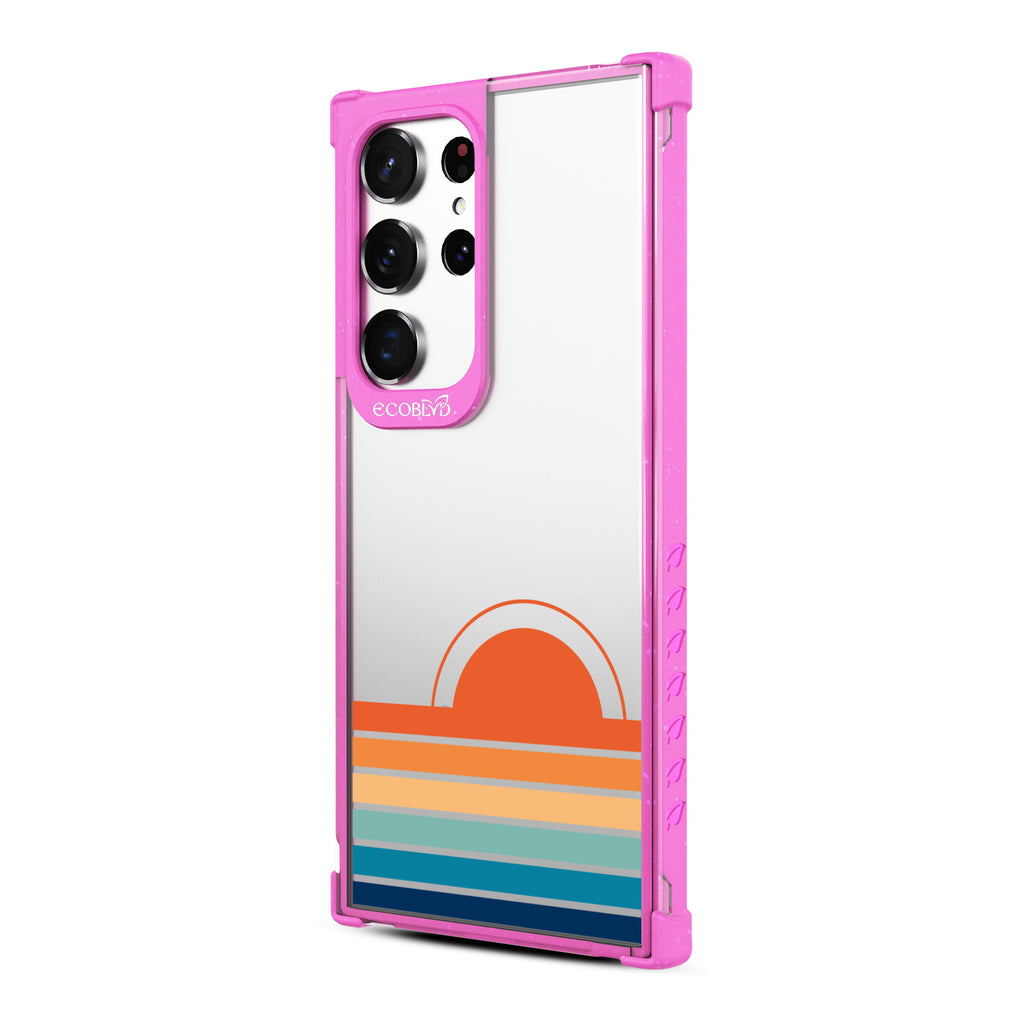 Even for those who aren't early birds, the Rise n' Shine design on our Laguna clear Galaxy S23 Ultra case illuminates your phone with a stylishly sunny morning glow with beaming gradient rays across five vibrant colorways: Midnight Black, Cascade Blue, Foliage Green, Illuminating Yellow, and Wildflower Pink.