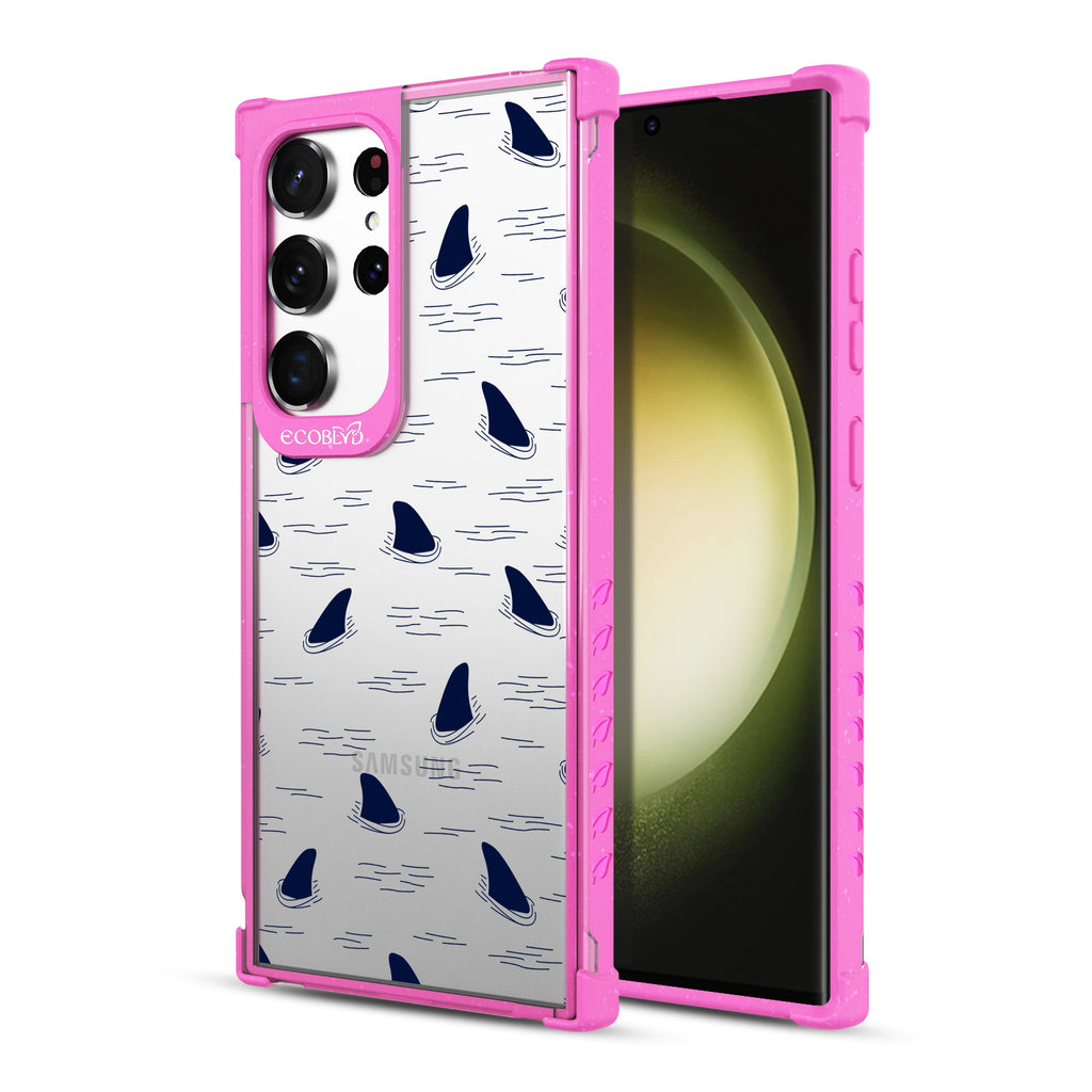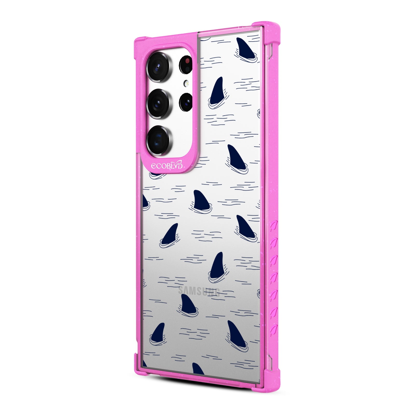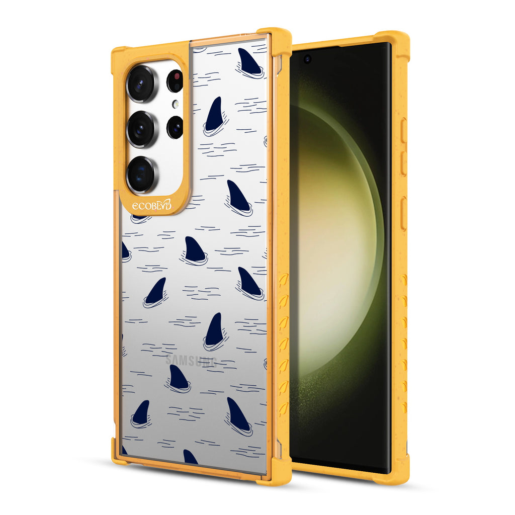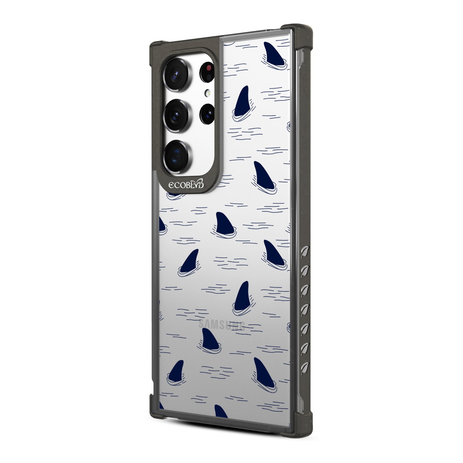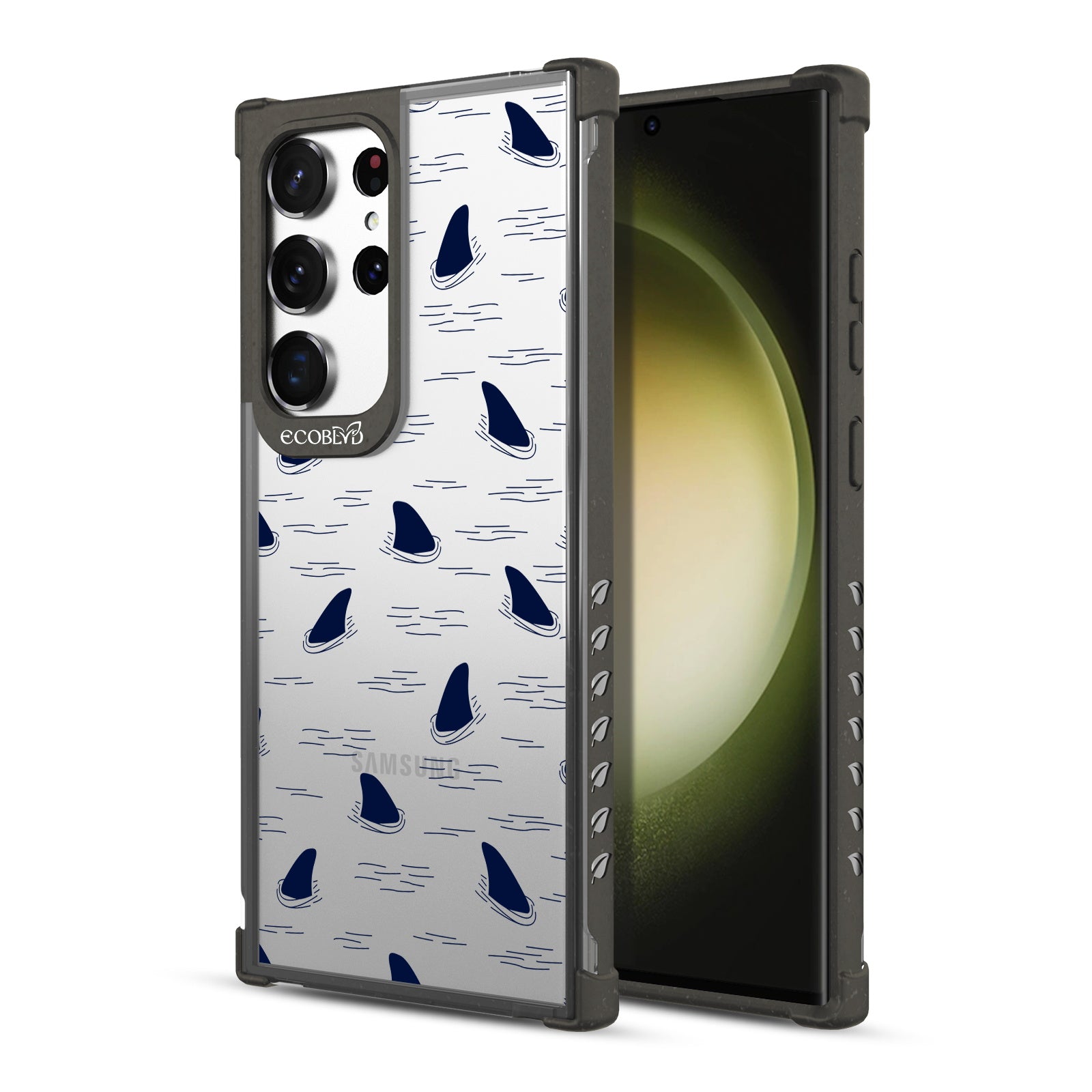 You never know what could be lurking around your phone as the Shark Fin design on our Laguna clear Galaxy S23 Ultra case surrounds it with an adrenaline-pumping look that shows off your fearless side and your bold spirit - brave enough to swim with sharks across five vibrant color options: Midnight Black, Cascade Blue, Foliage Green, Illuminating Yellow, and Wildflower Pink.