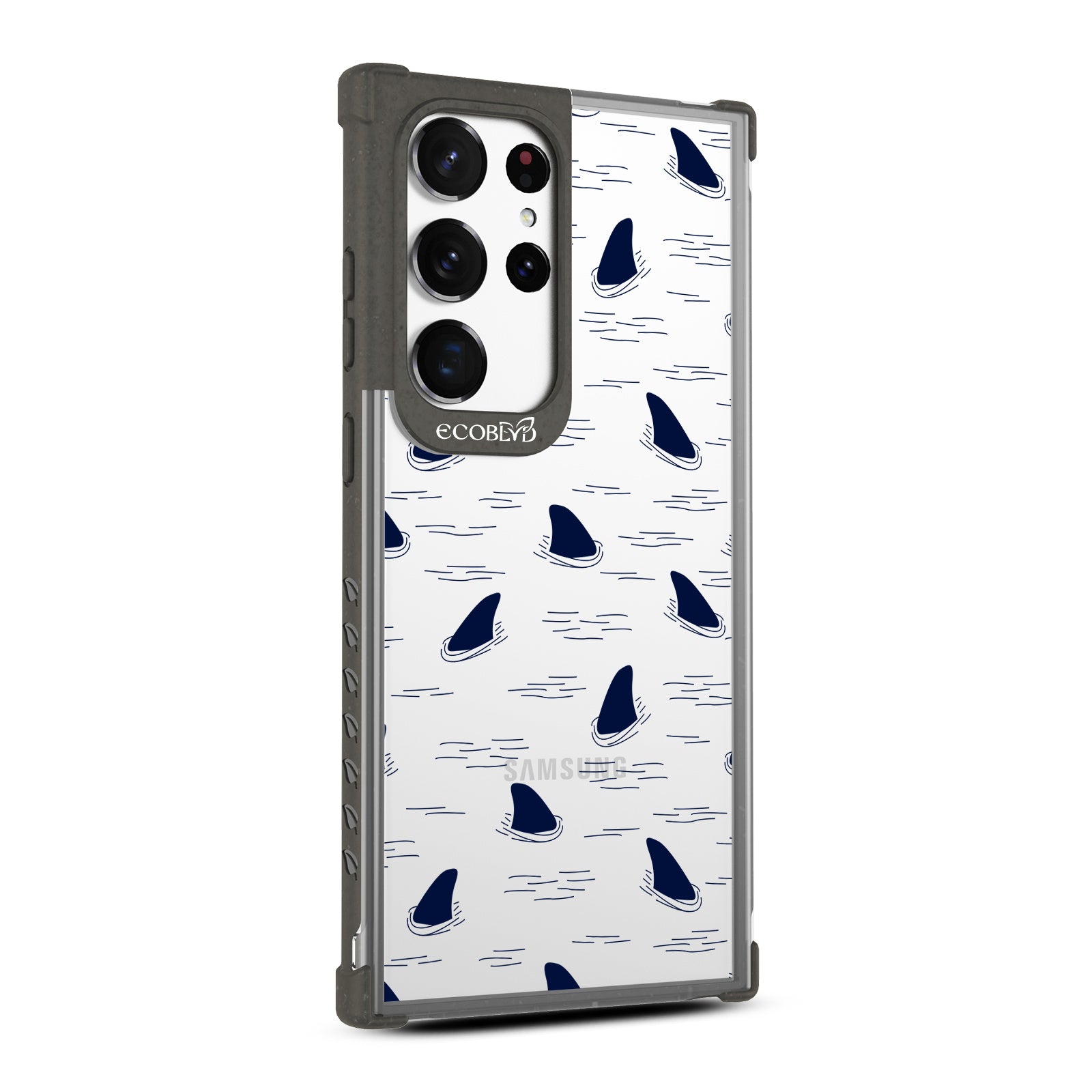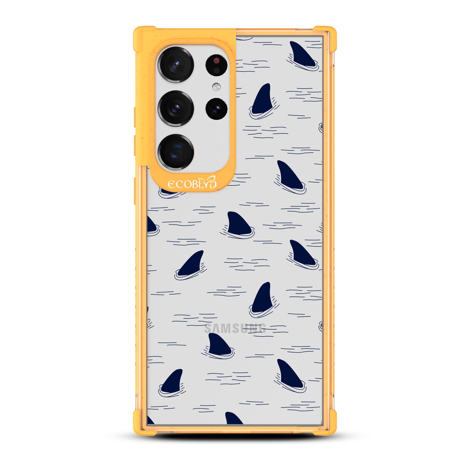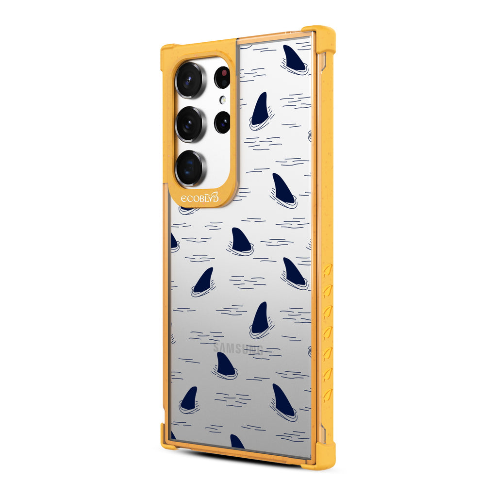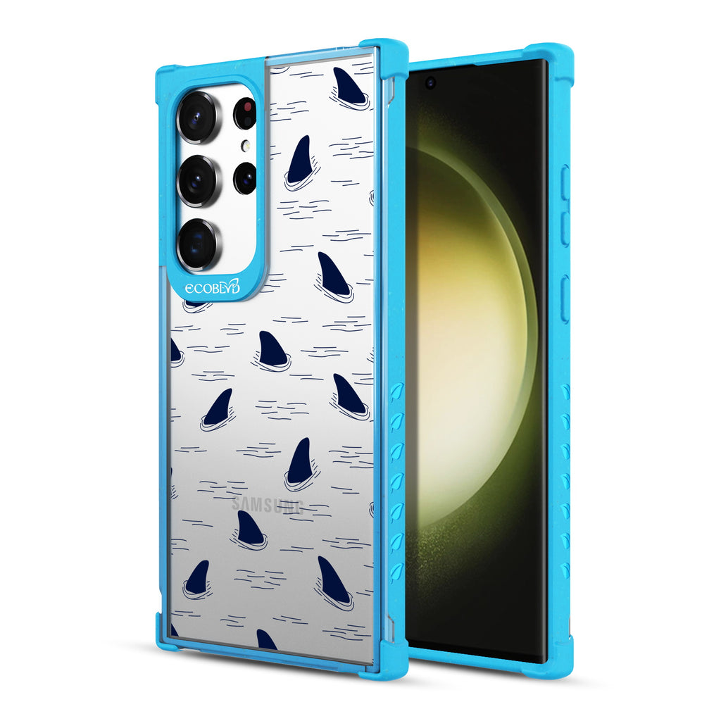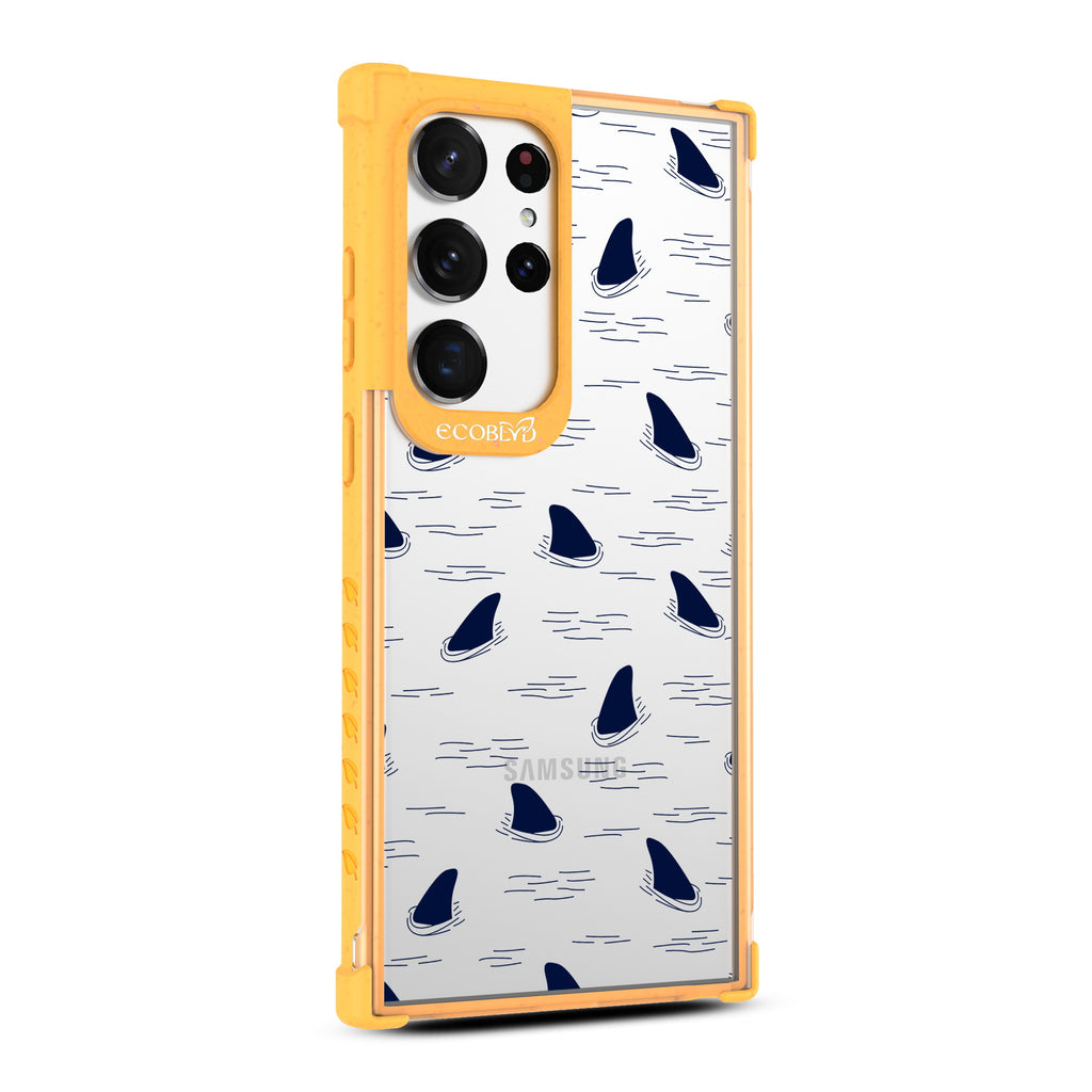 You never know what could be lurking around your phone as the Shark Fin design on our Laguna clear Galaxy S23 Ultra case surrounds it with an adrenaline-pumping look that shows off your fearless side and your bold spirit - brave enough to swim with sharks across five vibrant color options: Midnight Black, Cascade Blue, Foliage Green, Illuminating Yellow, and Wildflower Pink.