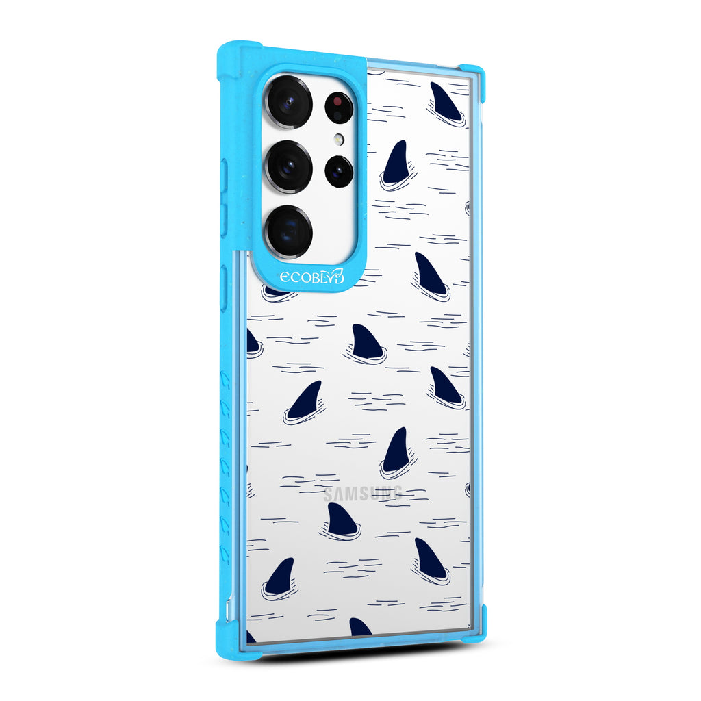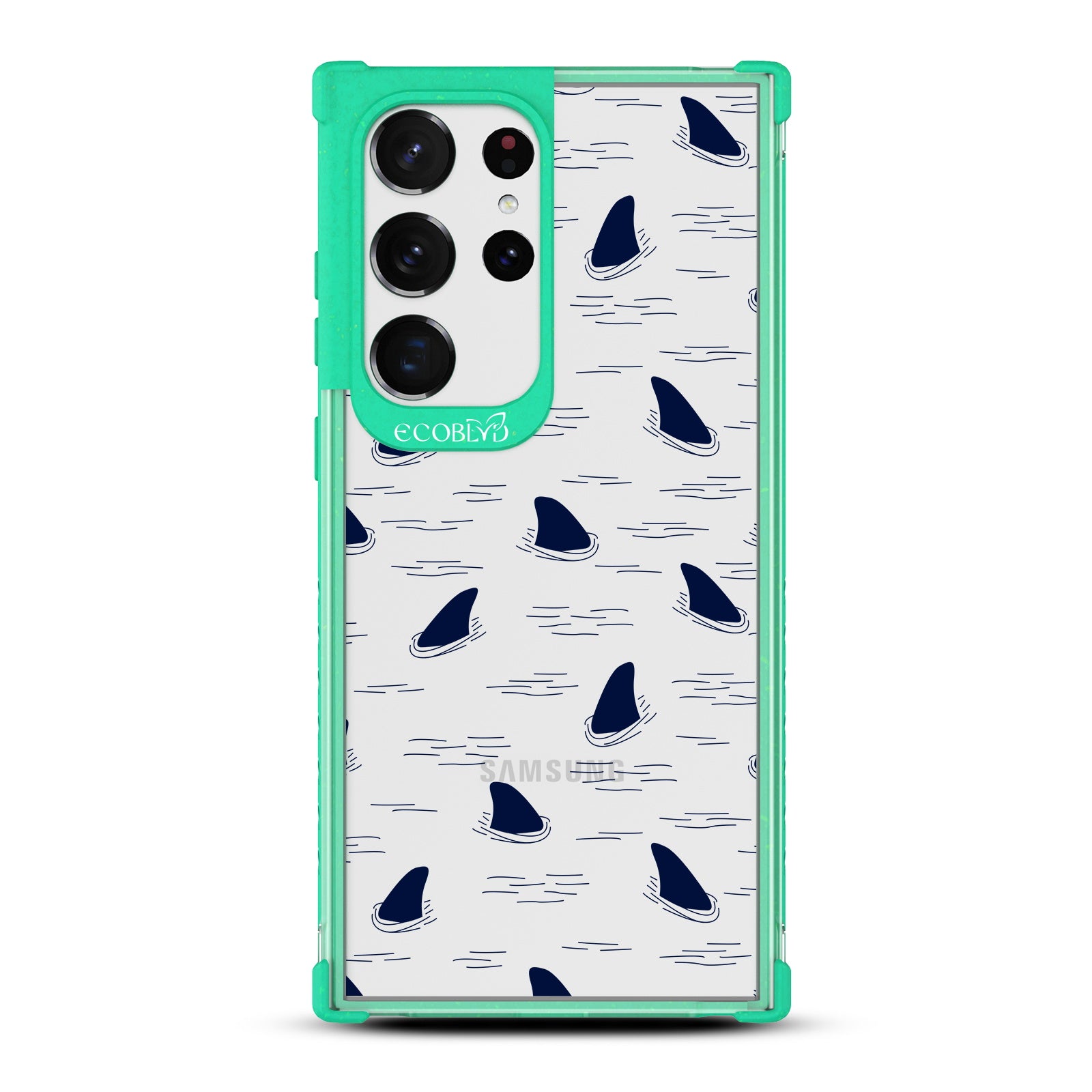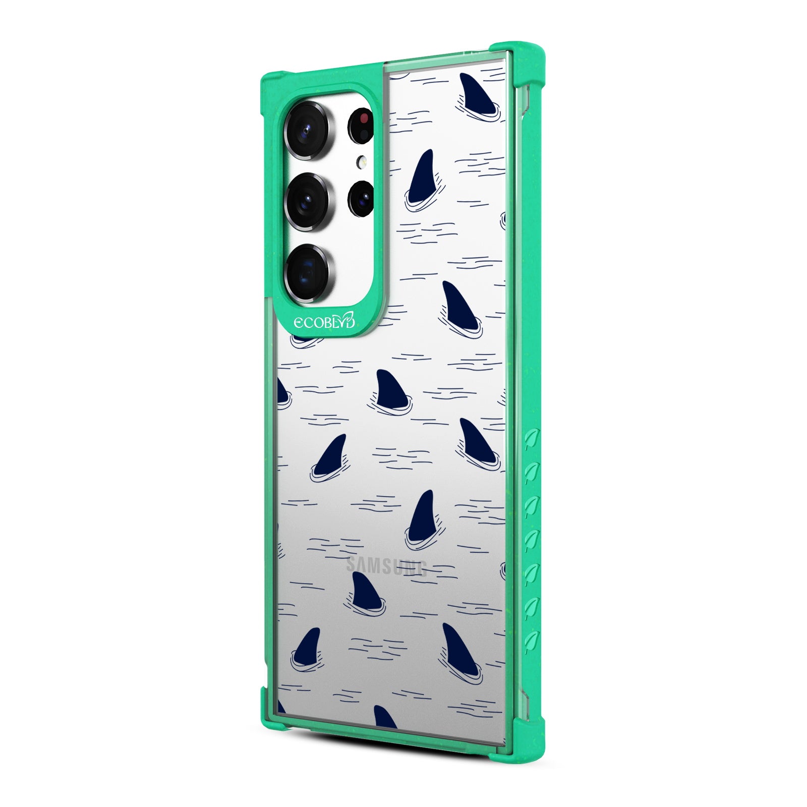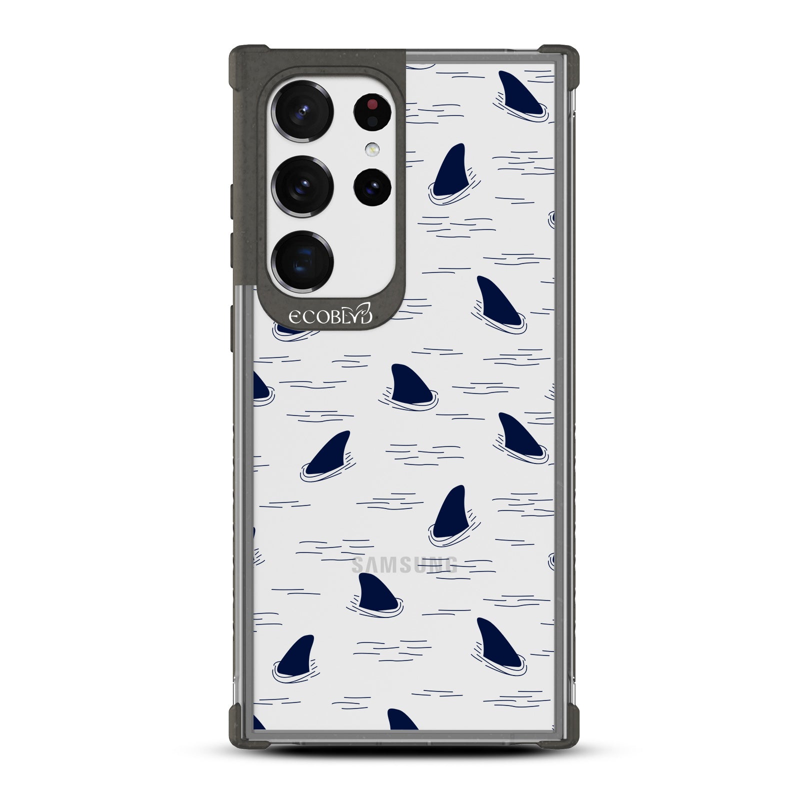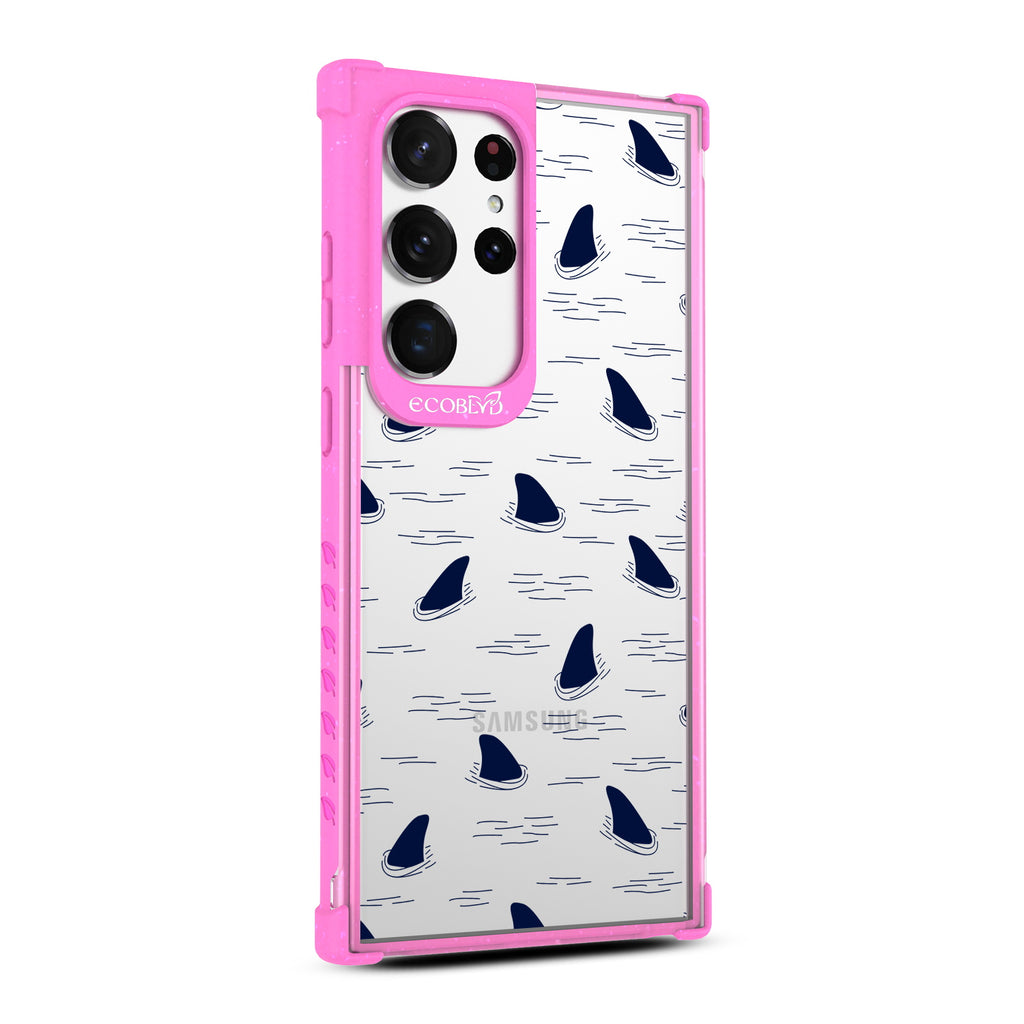 You never know what could be lurking around your phone as the Shark Fin design on our Laguna clear Galaxy S23 Ultra case surrounds it with an adrenaline-pumping look that shows off your fearless side and your bold spirit - brave enough to swim with sharks across five vibrant color options: Midnight Black, Cascade Blue, Foliage Green, Illuminating Yellow, and Wildflower Pink.