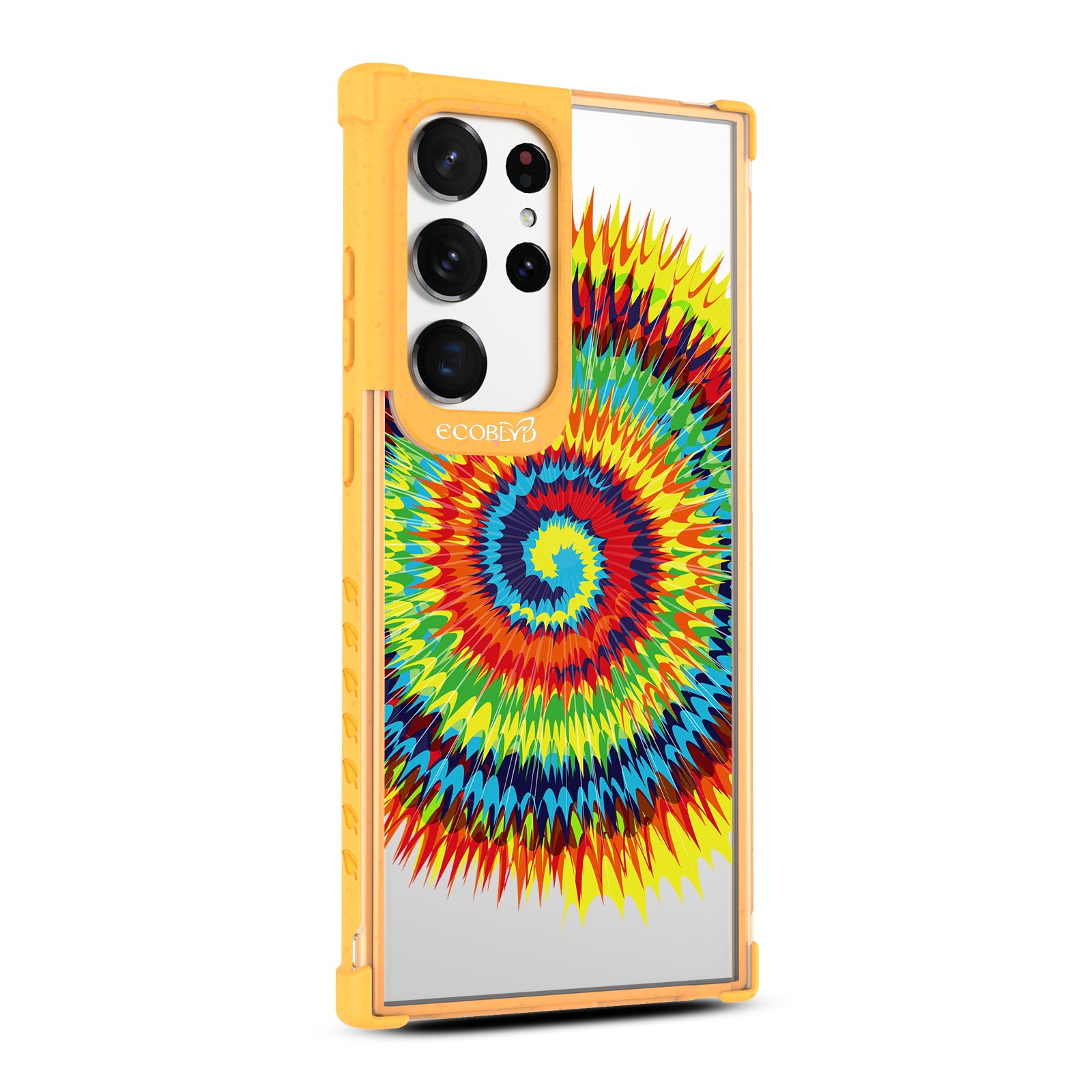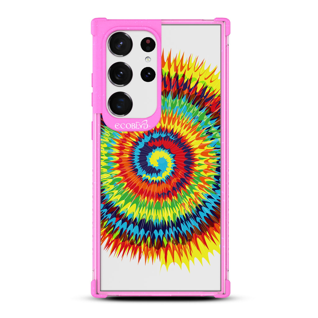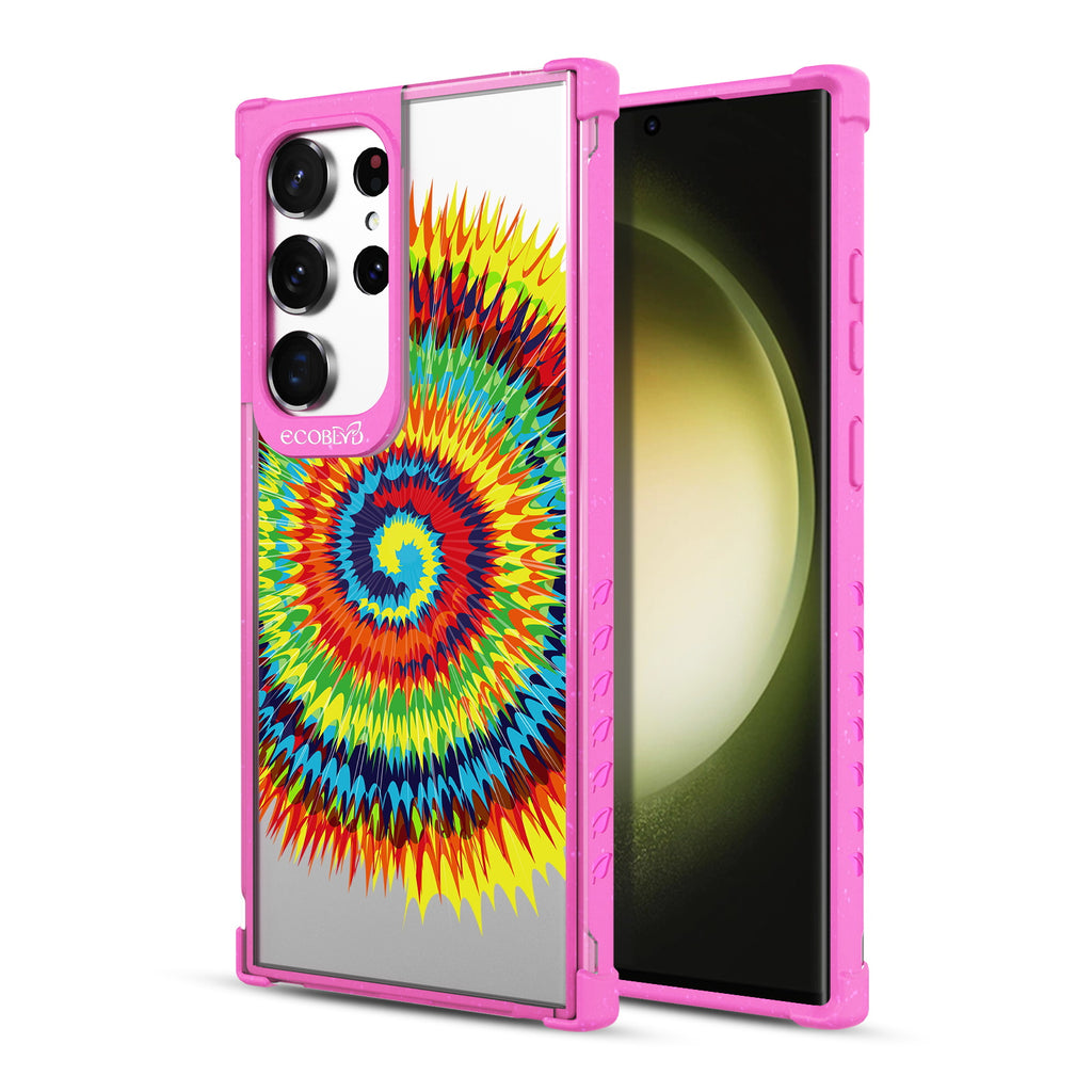 Bringing back the summer days of backyard BBQs, beach days, and fun in the sun, the Tie Dye design on our Laguna clear Galaxy S23 Ultra case features a retro rainbow swirl pattern giving your phone an eye-catching twist.