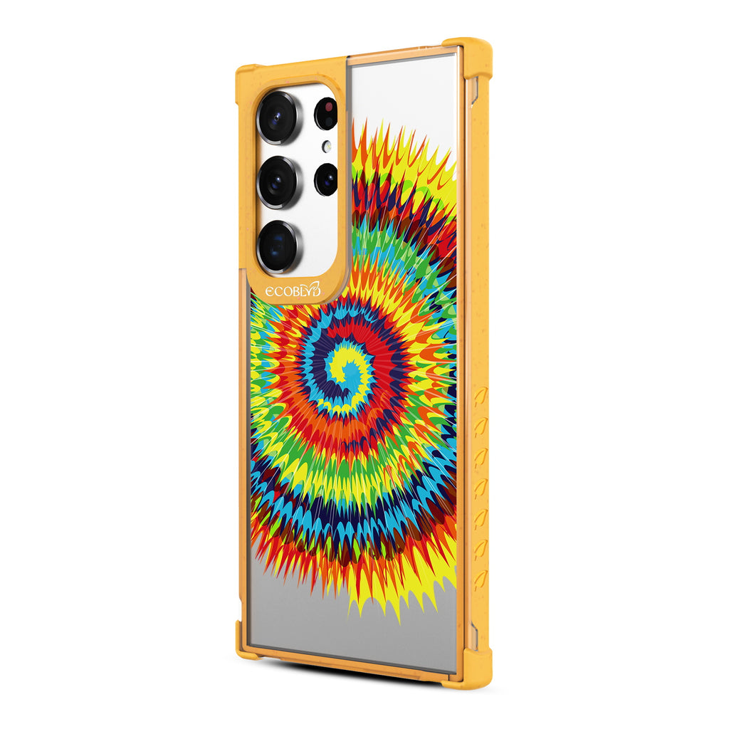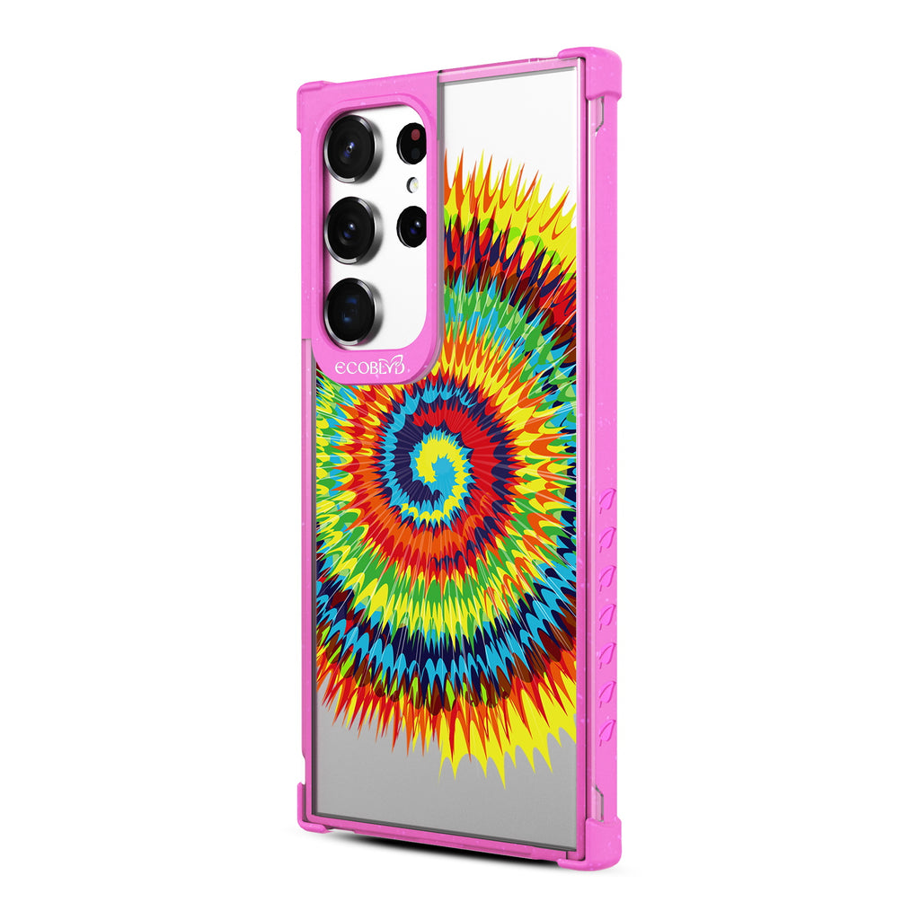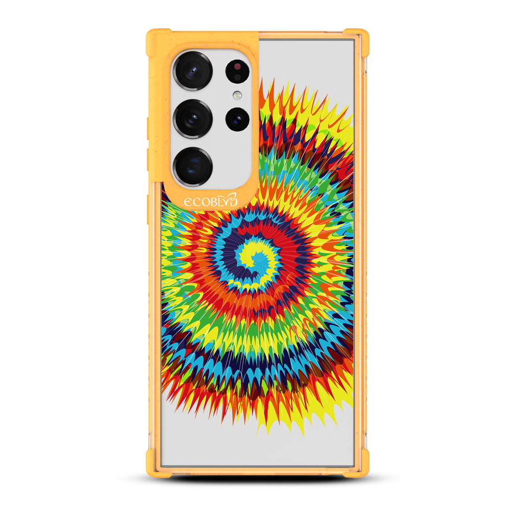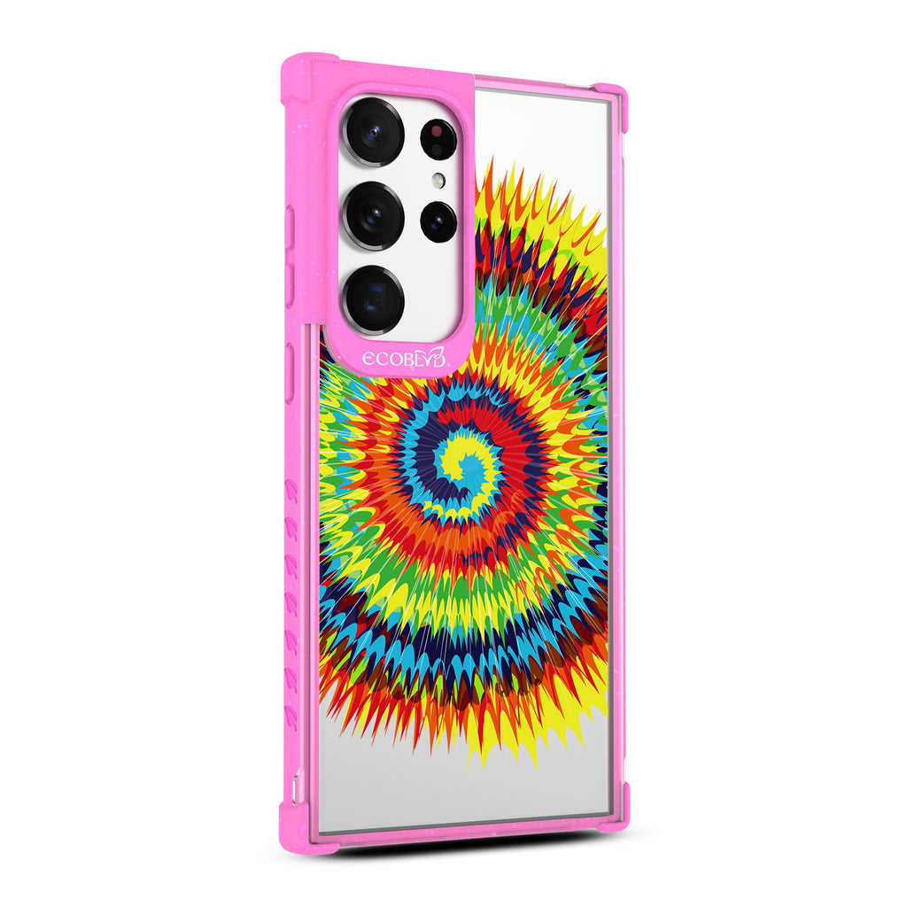 Bringing back the summer days of backyard BBQs, beach days, and fun in the sun, the Tie Dye design on our Laguna clear Galaxy S23 Ultra case features a retro rainbow swirl pattern giving your phone an eye-catching twist.