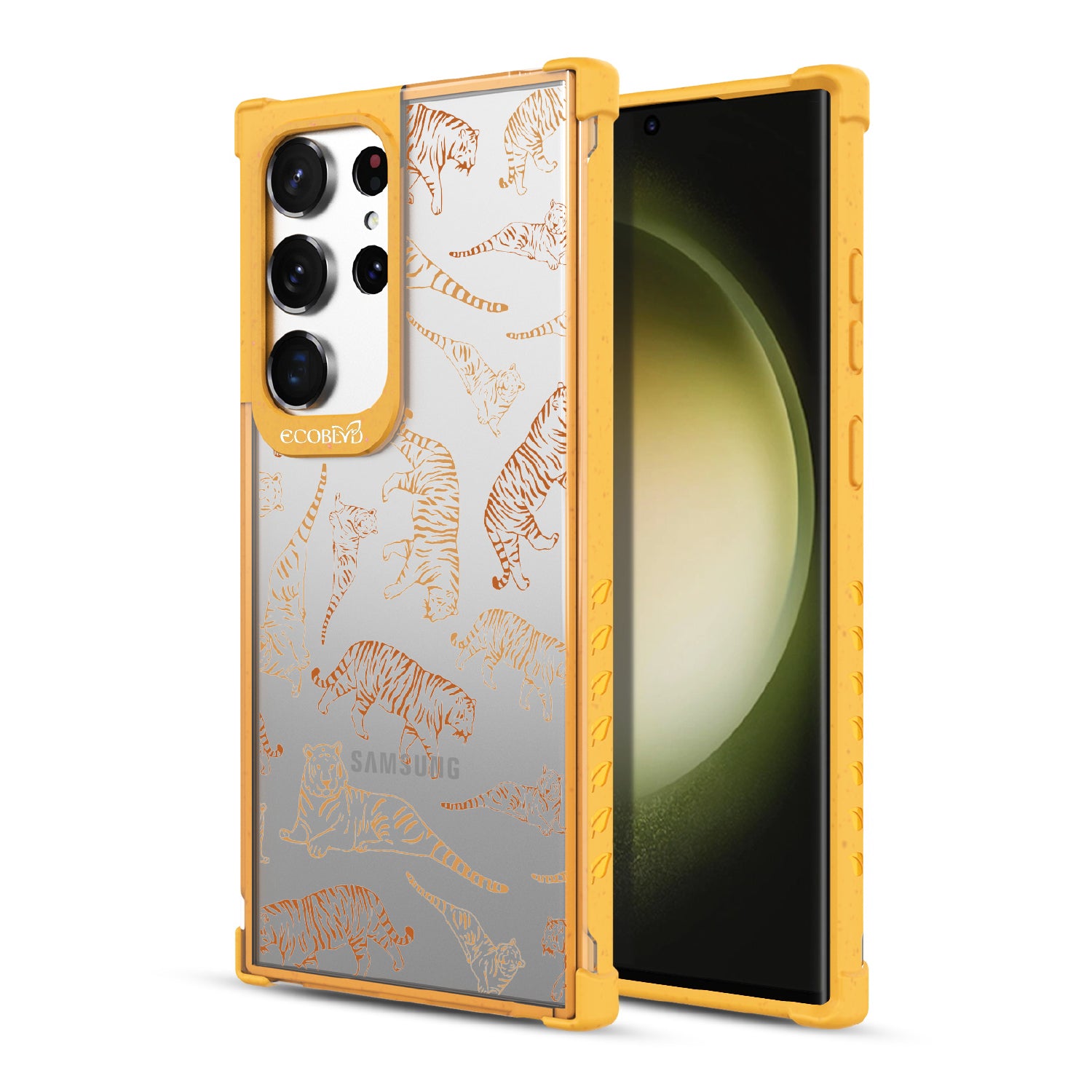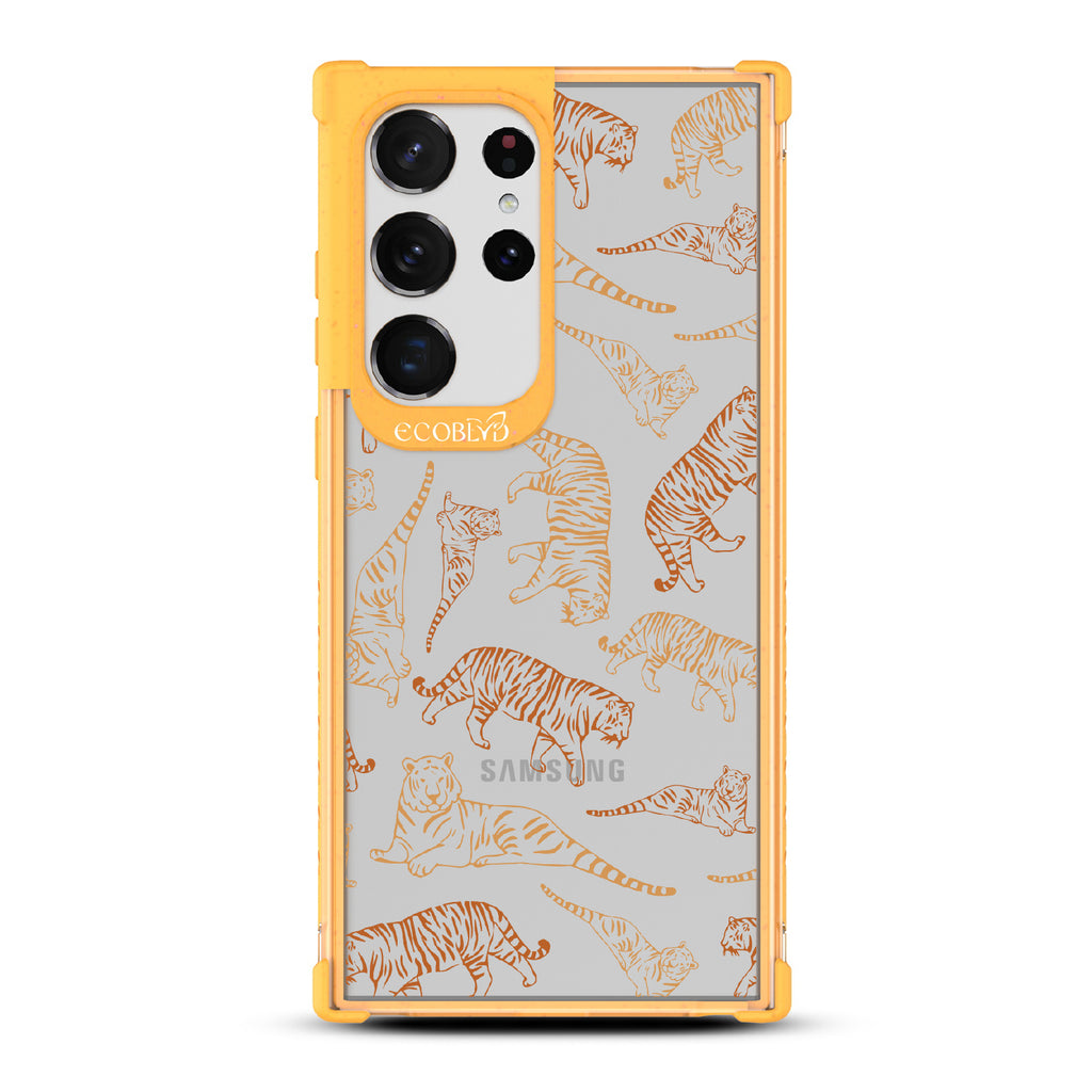 Embrace the untamed allure of the jungle with the Tiger Pride design on our Laguna clear Galaxy S23 Ultra case. Let the fierce presence of tigers transport you to a world of unparalleled elegance and strength. Experience the perfect blend of impeccable style and protection while championing ocean conservation efforts. Unleash your party animal instincts and show off your Tiger Pride! With its eye-catching orange and yellow tiger silhouettes, this case adds a touch of playful ferocity to your device, ensuring it becomes the center of attention and the symbol of your wild, fun-loving personality.