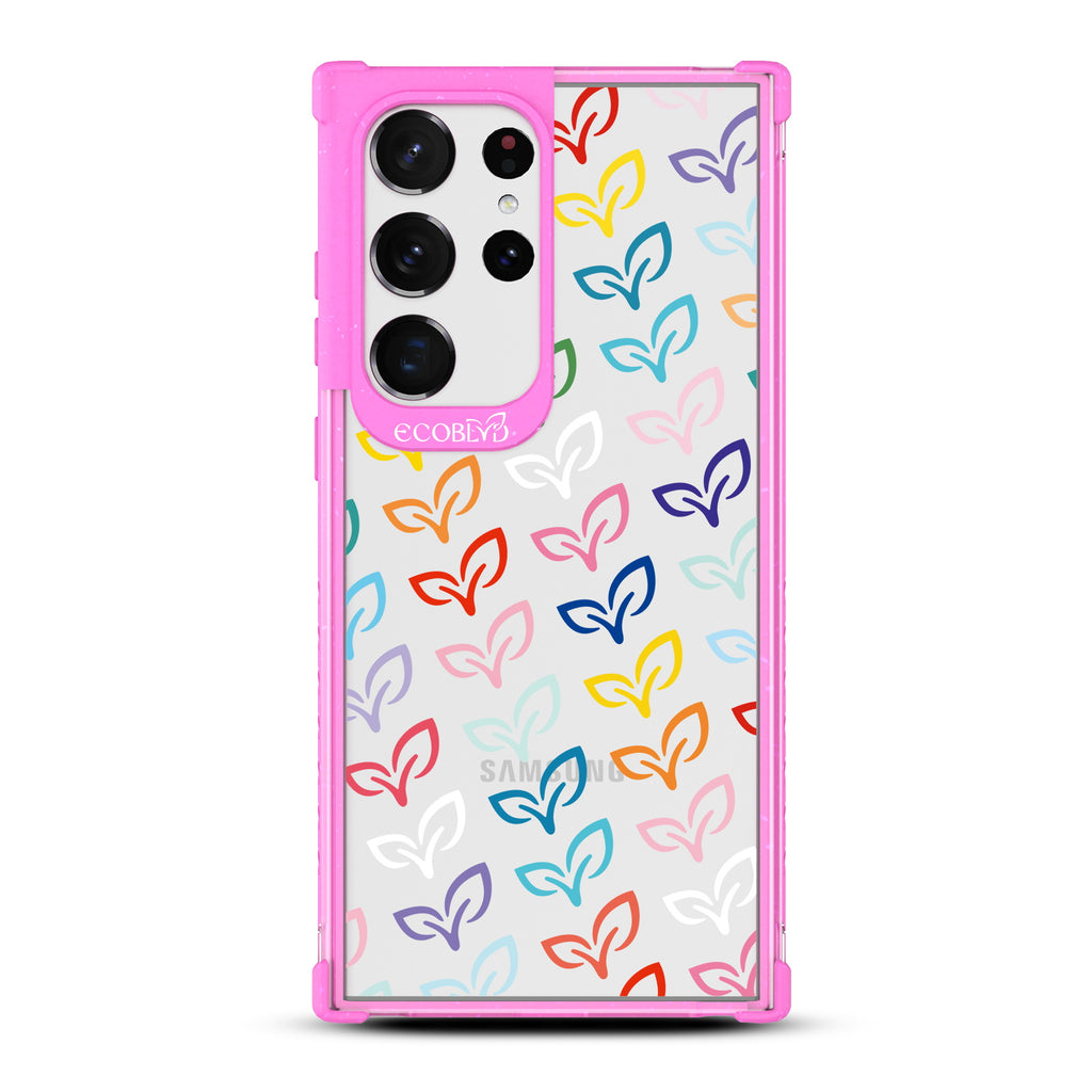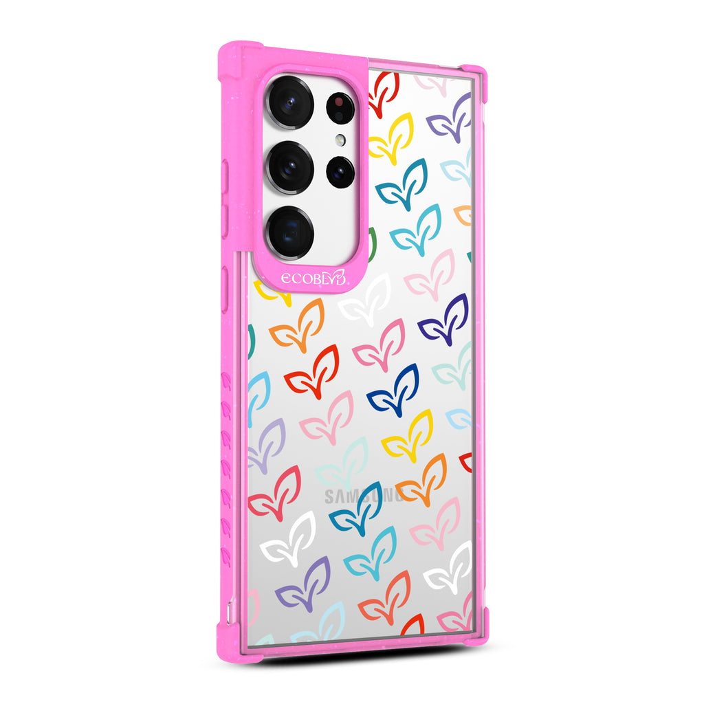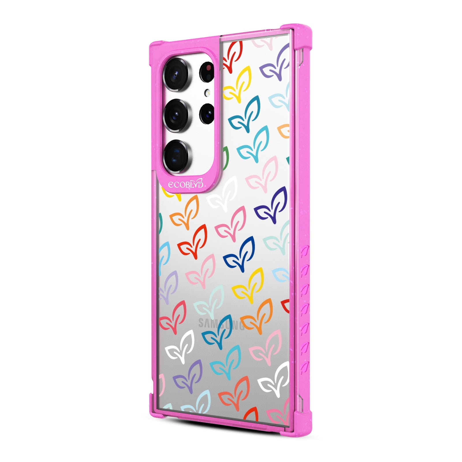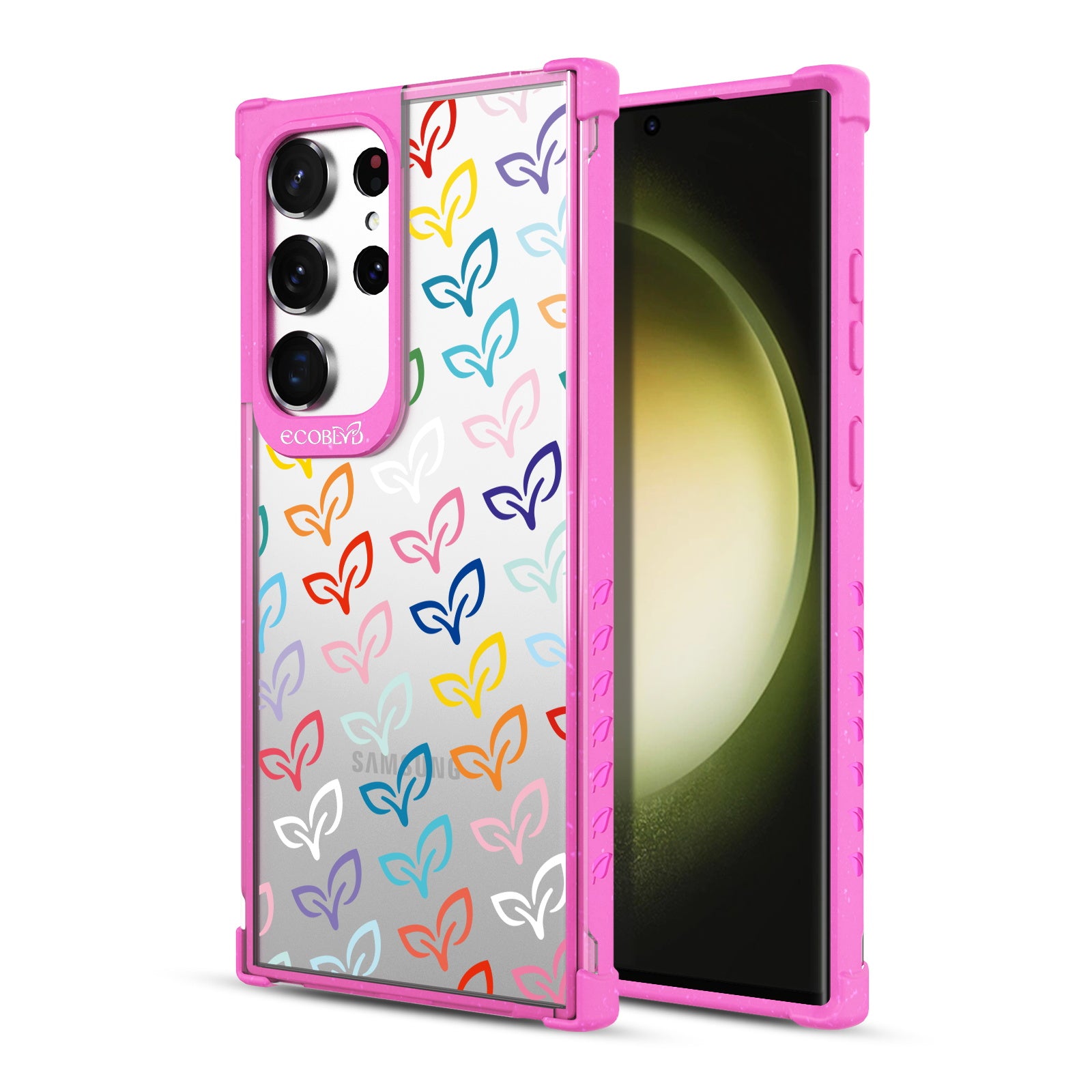 Keep your phone at the intersection of style and sustainability with the iconic EcoBlvd V-Leaf Monogram design on our Laguna clear Galaxy S23 Ultra case, as it wraps your phone with a multi-color print.