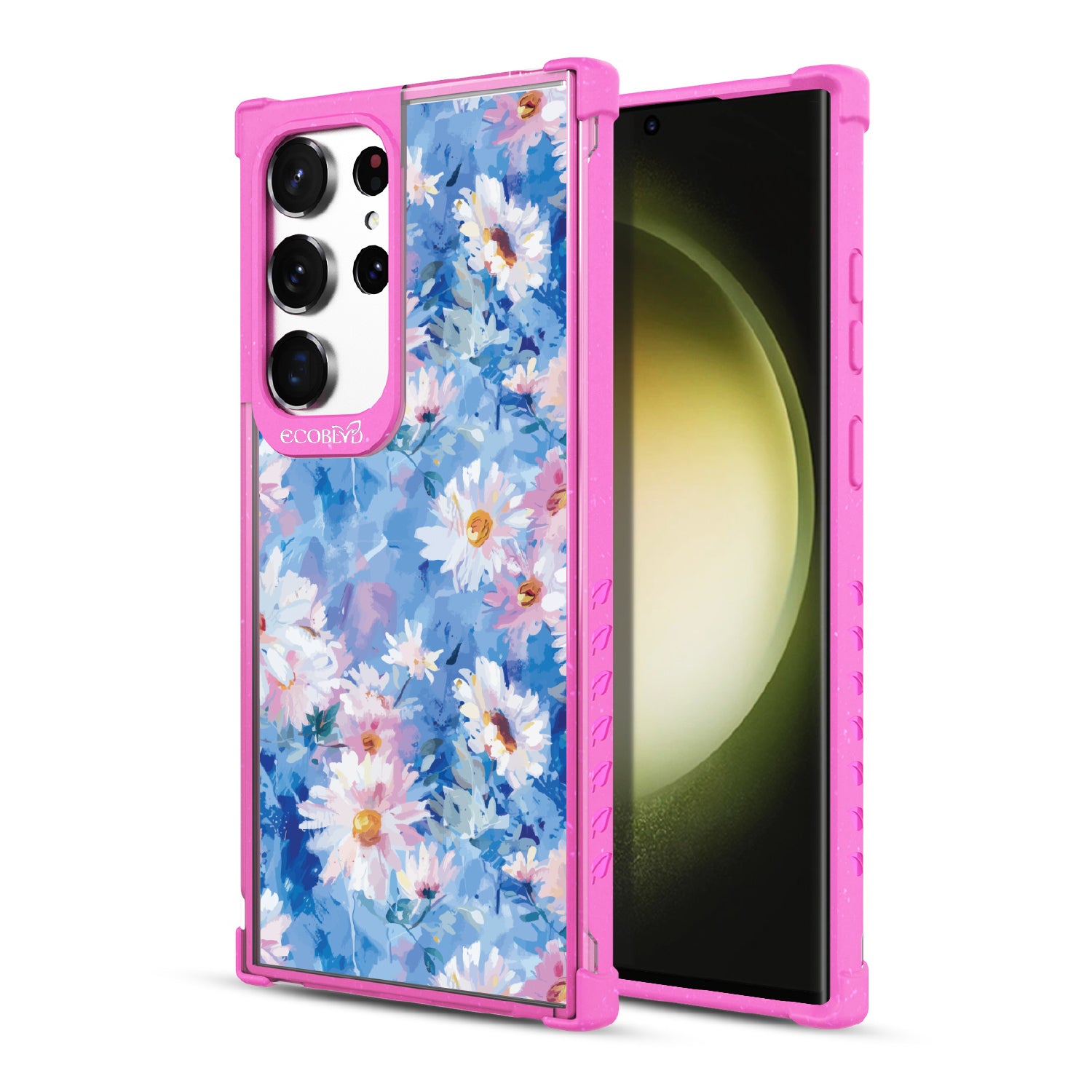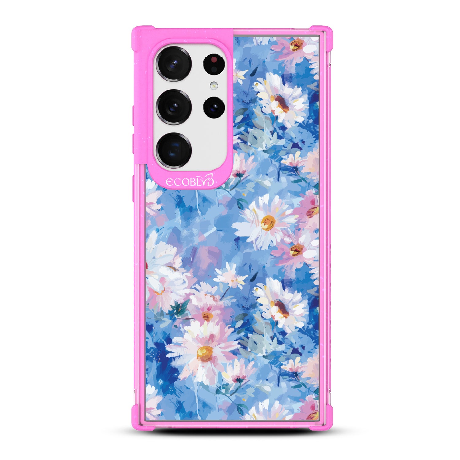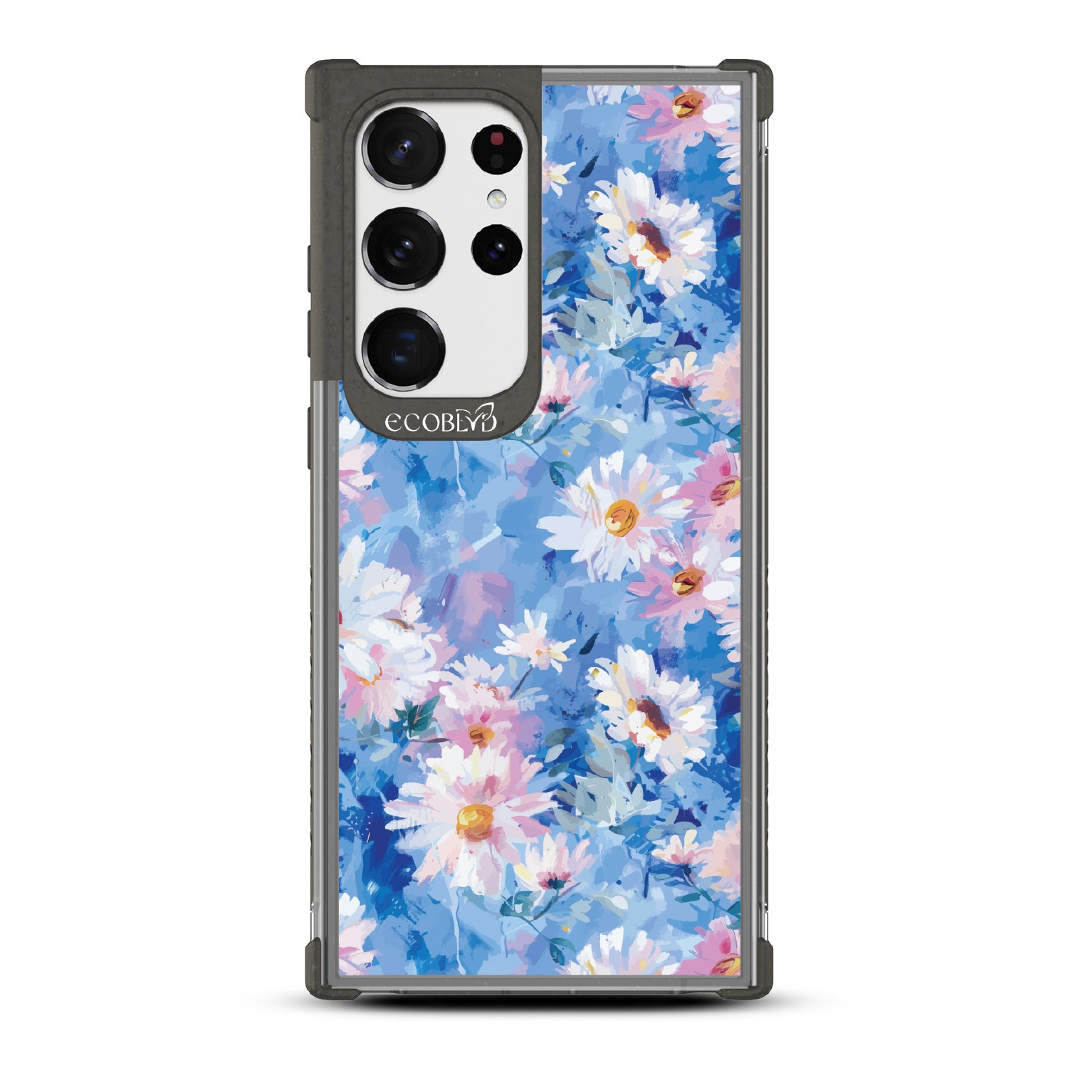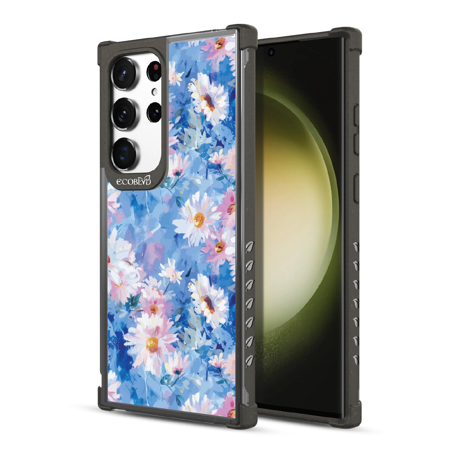 It’s a breeze really. The Blown Away design on our Laguna clear Galaxy S23 Ultra case sends soft daisy petals swirling across layered blue strokes, like a gust caught mid-canvas. Each pastel bloom feels weightless but intentional—an airy moment you can hold onto.