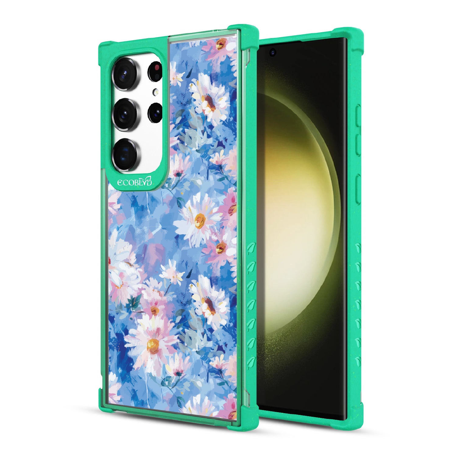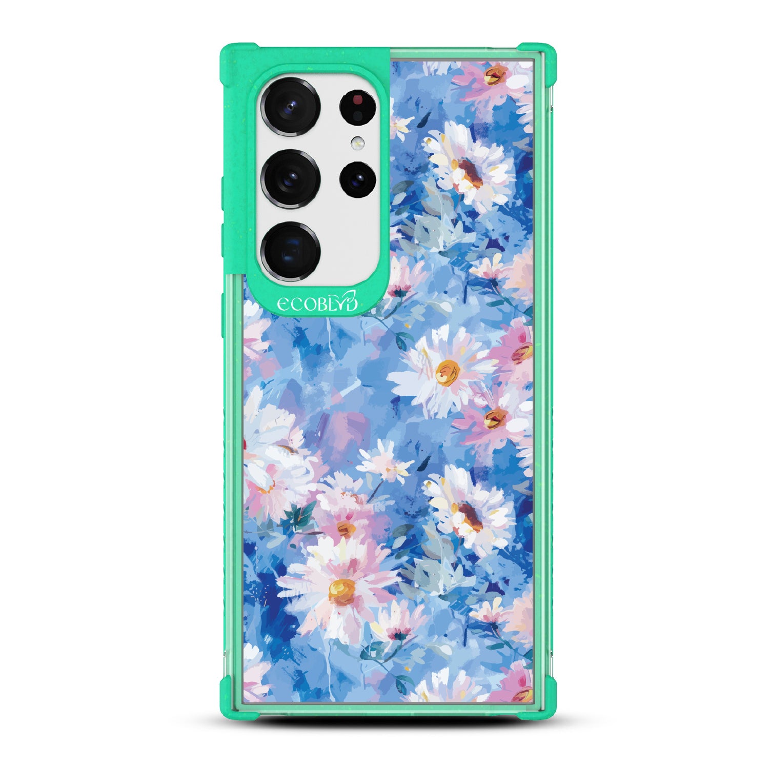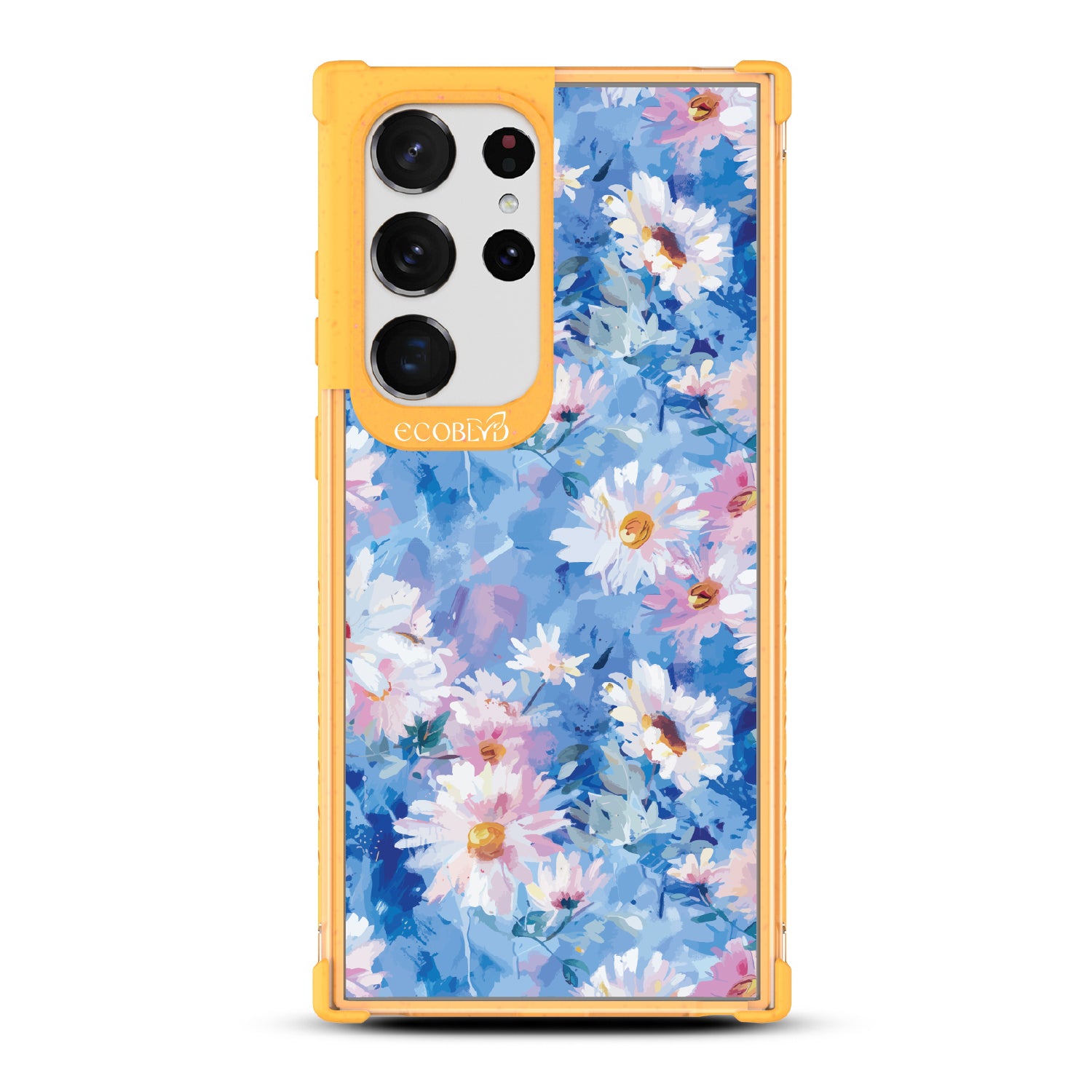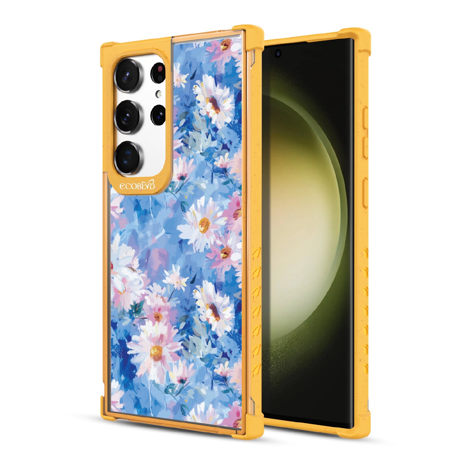 It’s a breeze really. The Blown Away design on our Laguna clear Galaxy S23 Ultra case sends soft daisy petals swirling across layered blue strokes, like a gust caught mid-canvas. Each pastel bloom feels weightless but intentional—an airy moment you can hold onto.