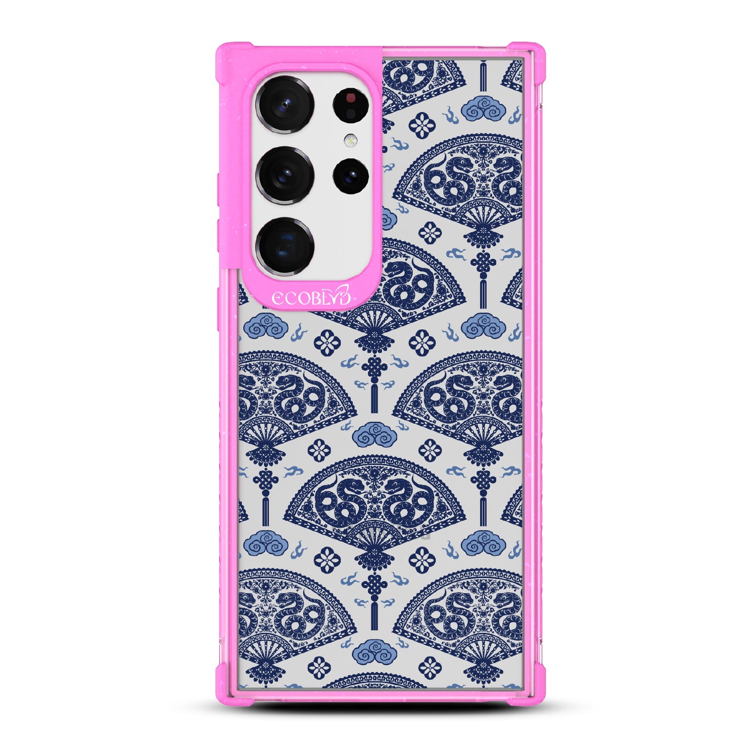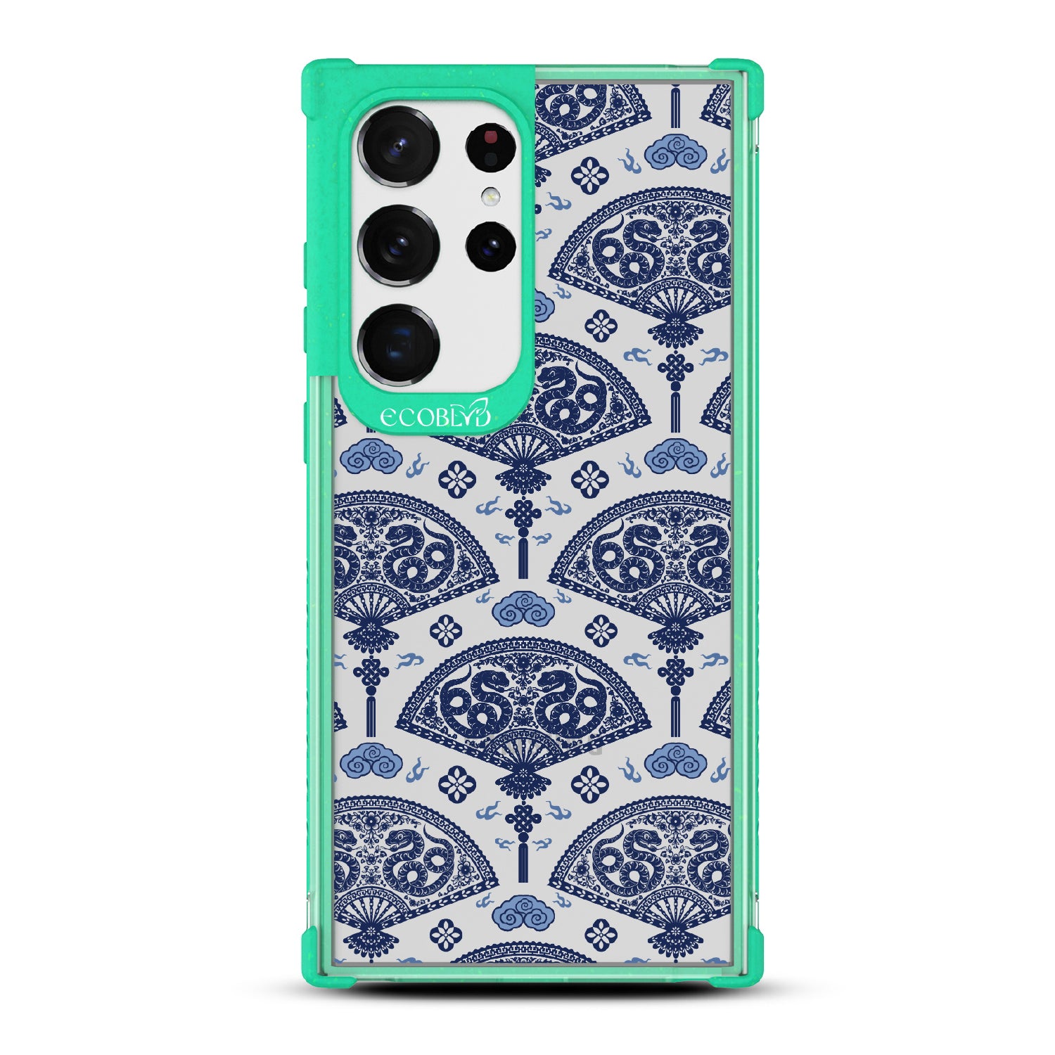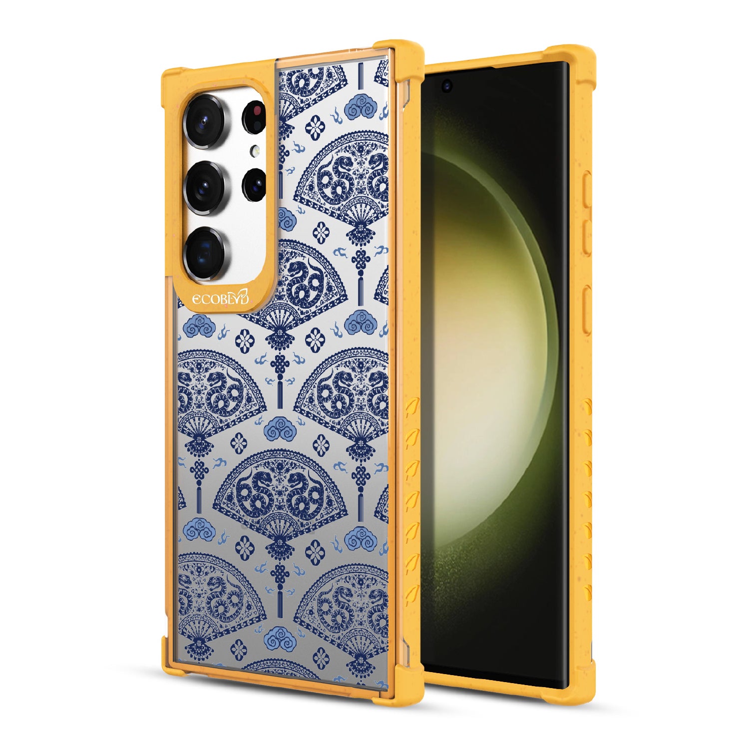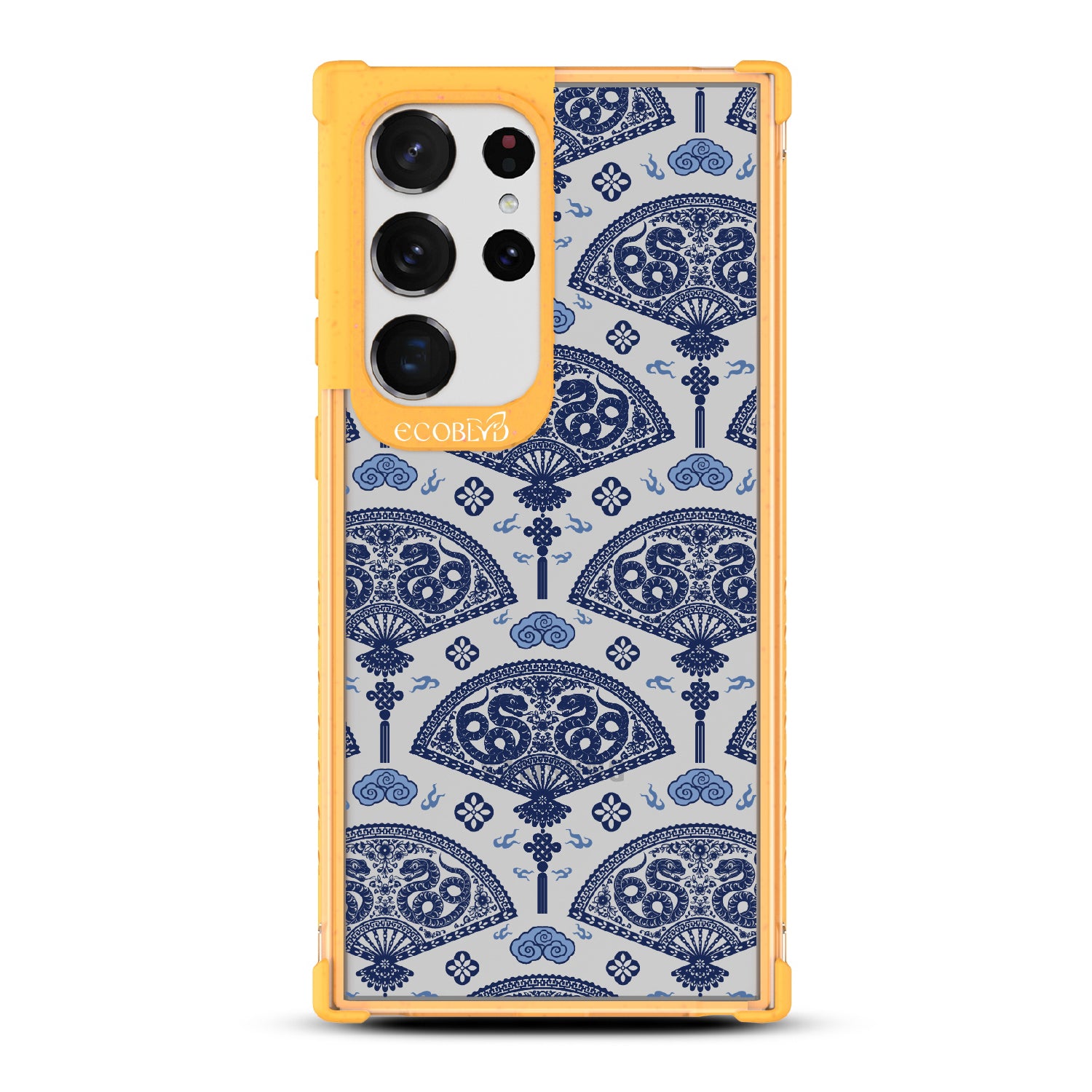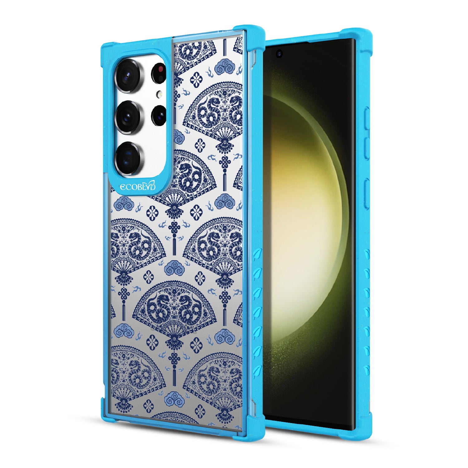 Let the winds of good fortune blow your way with the Fanning Fortune design on our Laguna clear Galaxy S23 Ultra case. Golden serpents coil through beautifully detailed fans, a symbol of protection and prosperity for the Year of the Snake. The blue and yellow hues reflect the harmony between calmness and vitality, setting the tone for a year filled with new opportunities and growth.