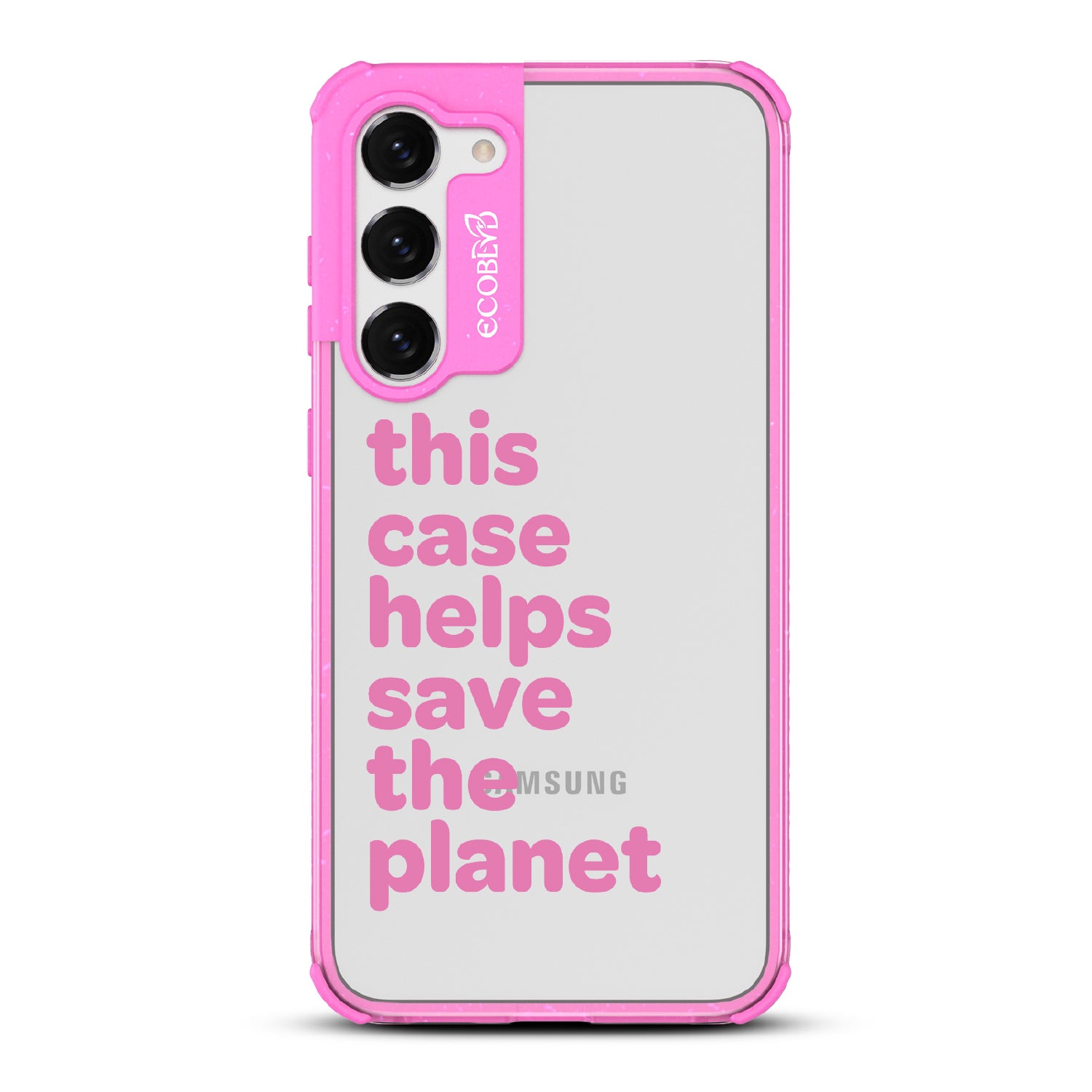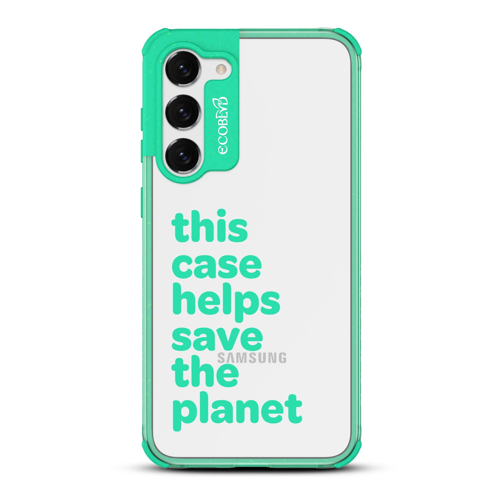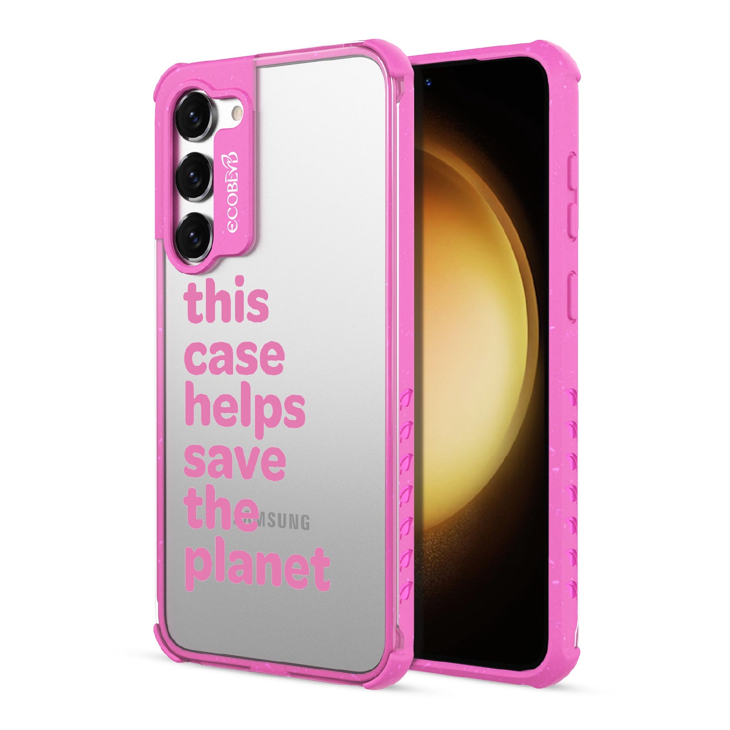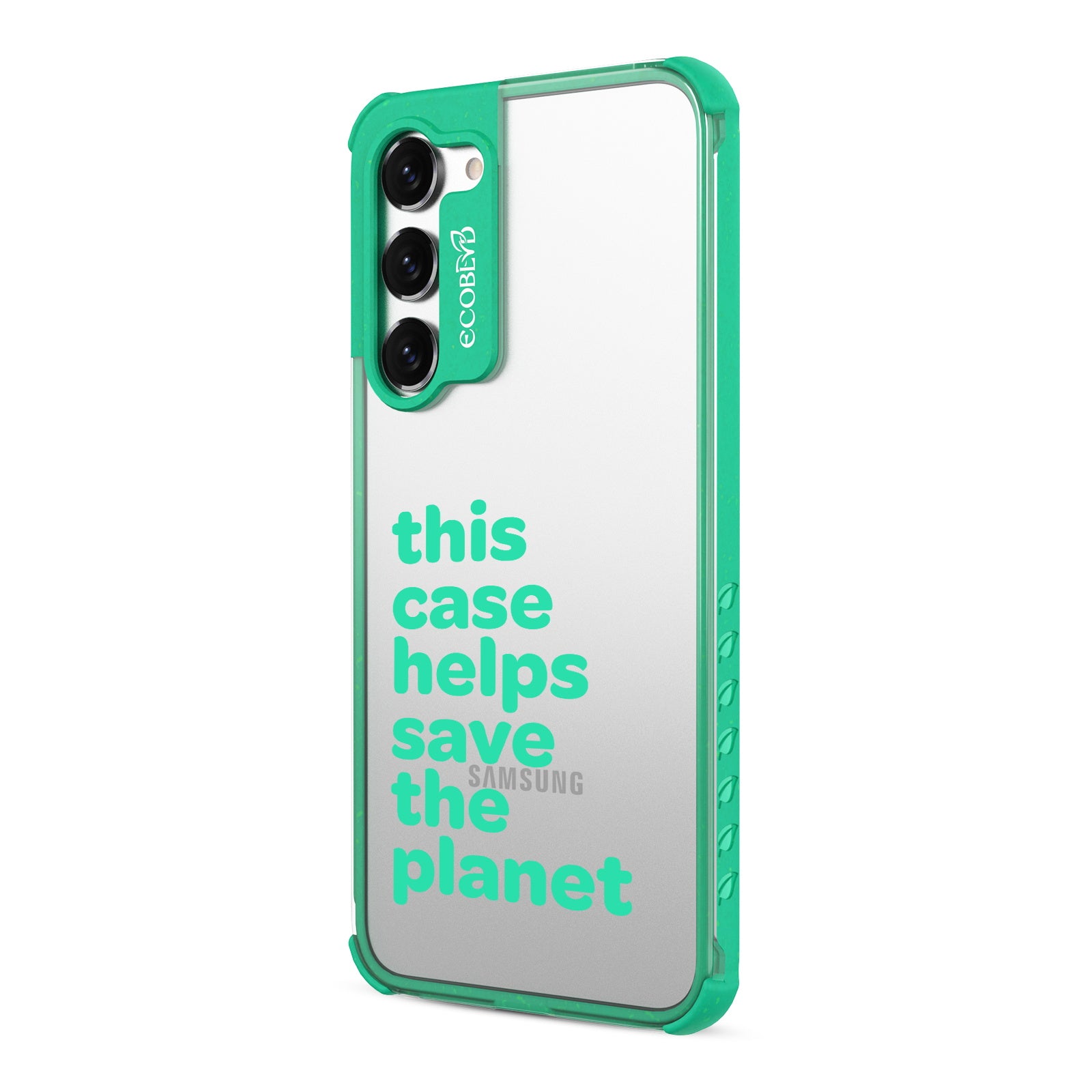 Send a bold message from your phone as the Save The Planet design on our Laguna clear Galaxy S23 case highlights your case's eco-friendly fashion and your commitment to sustainability across five vibrant colorways: Midnight Black, Cascade Blue, Foliage Green, Illuminating Yellow, and Wildflower Pink.