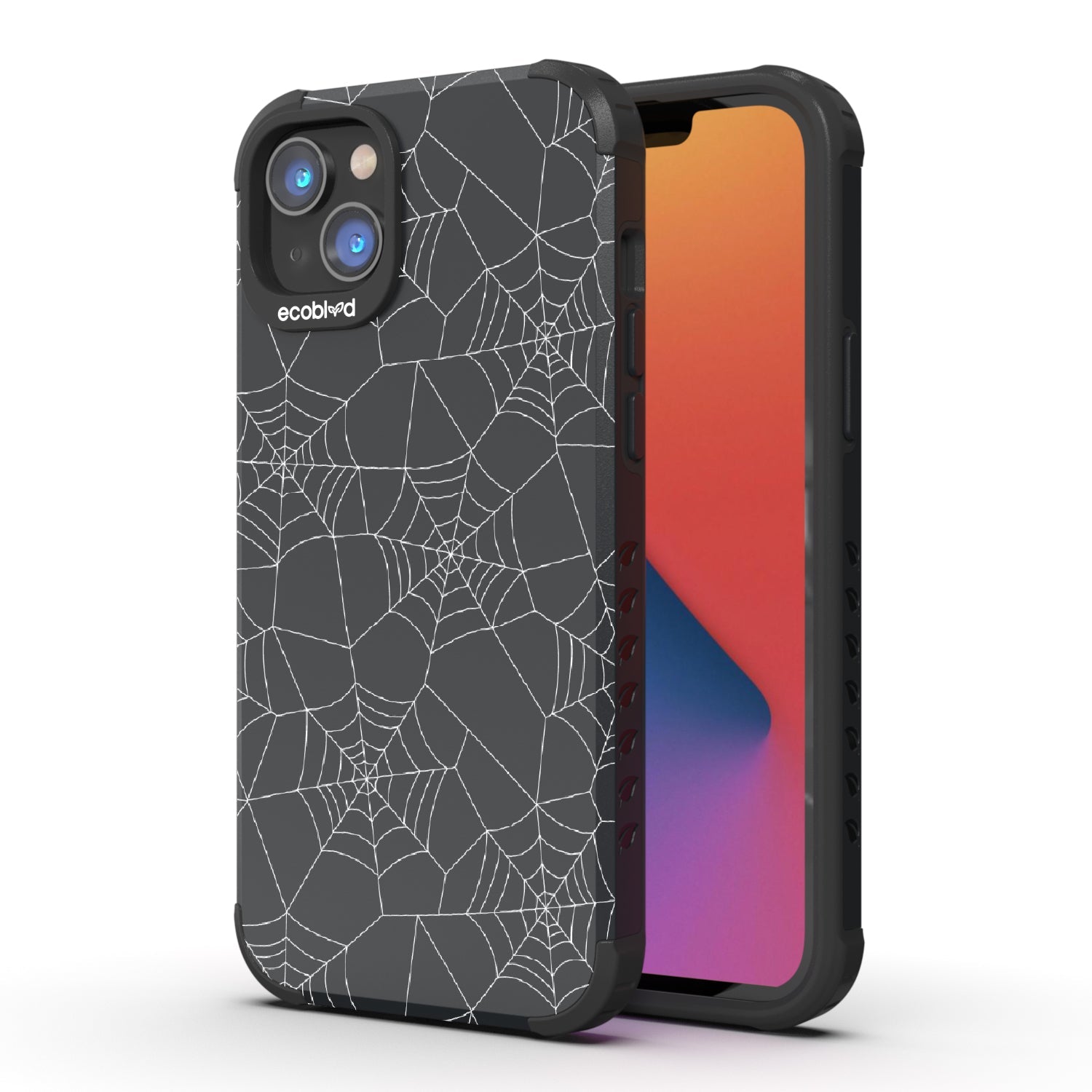 Teeming with creepy crawlies, your phone transforms into a haven for the creatures of the night with the Spider Web design on our Mojave rugged and compostable iPhone 16e, iPhone 14, and iPhone 13 case. Delicate silver threads intricately mimic the silk spun by nocturnal arachnids, beckoning you into their web of mystery.