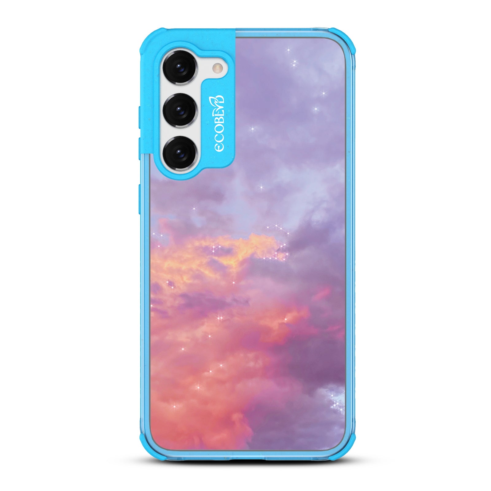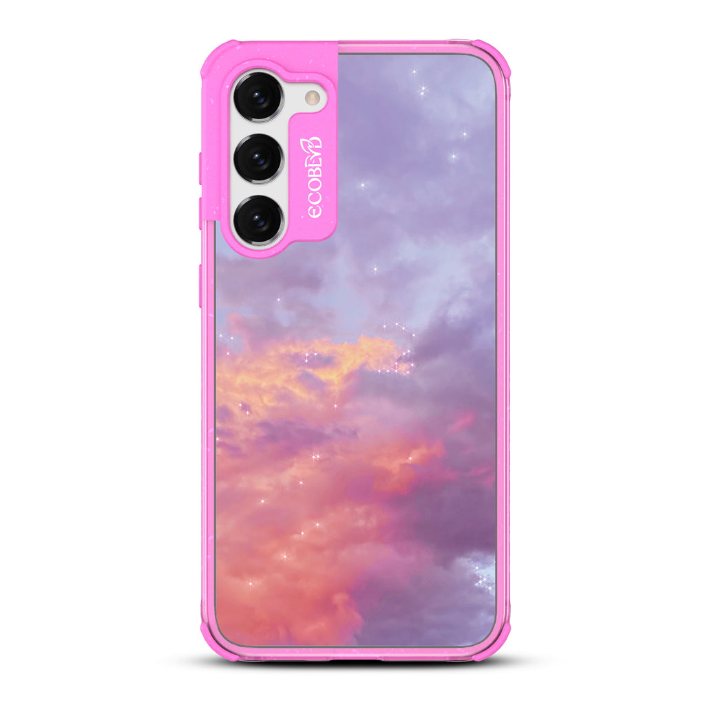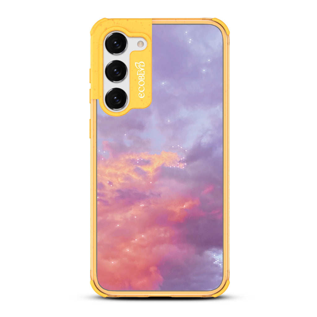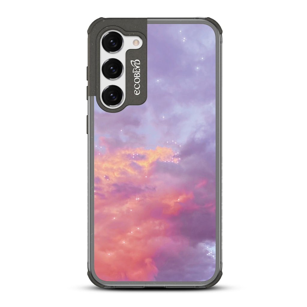 Get lost in the magic of love and romance with our Star Crossed Lovers design on our Laguna clear Galaxy S23 case - whether you are looking for new love or hope to strengthen the bond with your current partner; you'll feel a passionate desire as you carry this lavender and pink sunset dotted with sparkling stars in four enchanting colorways: Midnight Black, Cascade Blue, Illuminating Yellow, and Wildflower Pink.