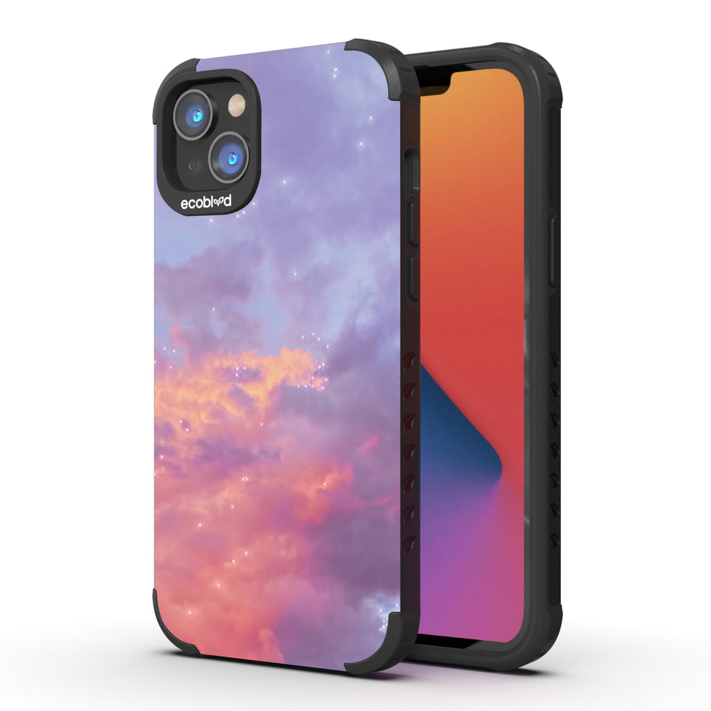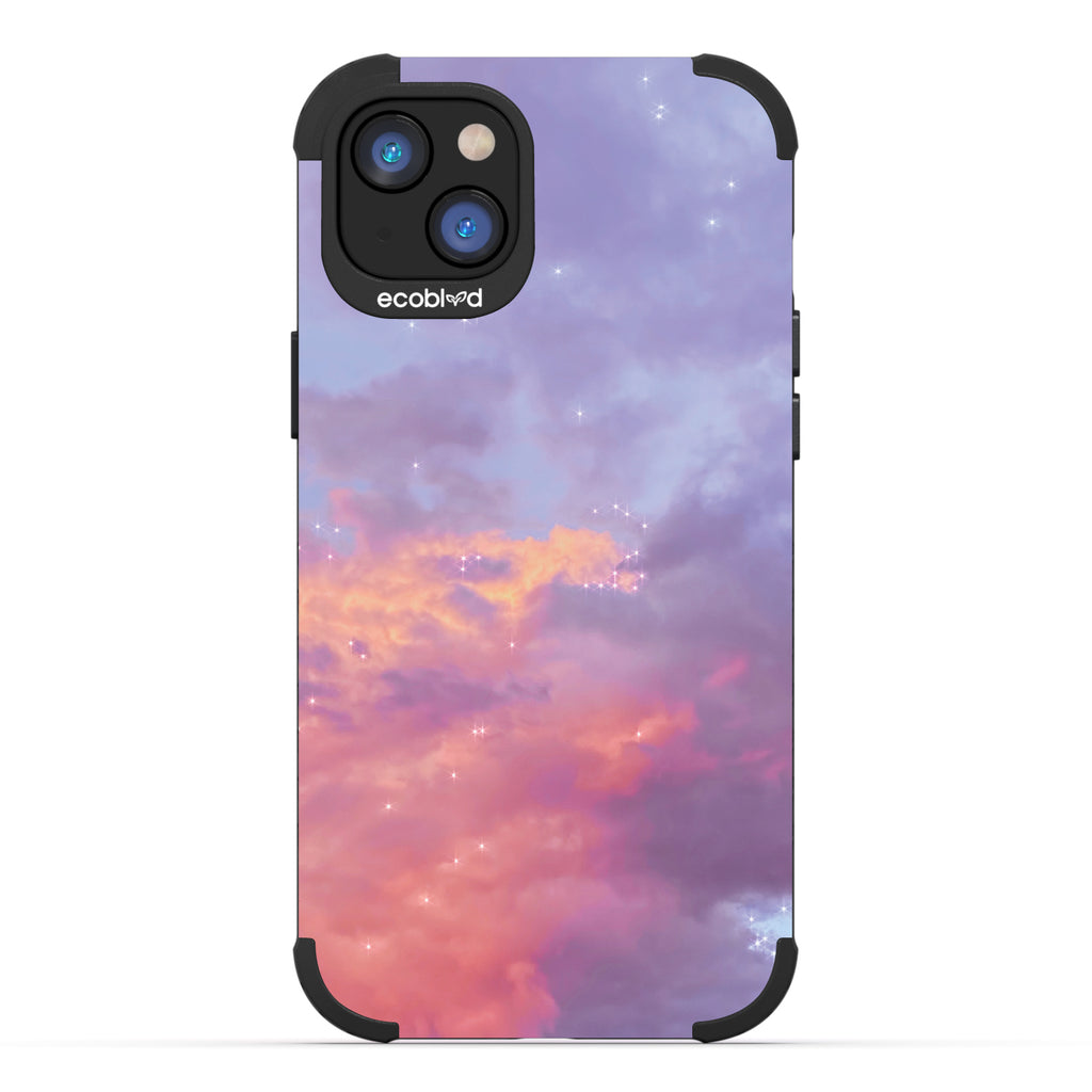 Get lost in the magic of love and romance with our Star Crossed Lovers design on our Mojave rugged and compostable iPhone 14 Plus case - whether you are looking for new love or hope to strengthen the bond with your current partner; you'll feel a passionate desire as you carry this lavender and pink sunset dotted with sparkling stars in our Midnight Black colorway.