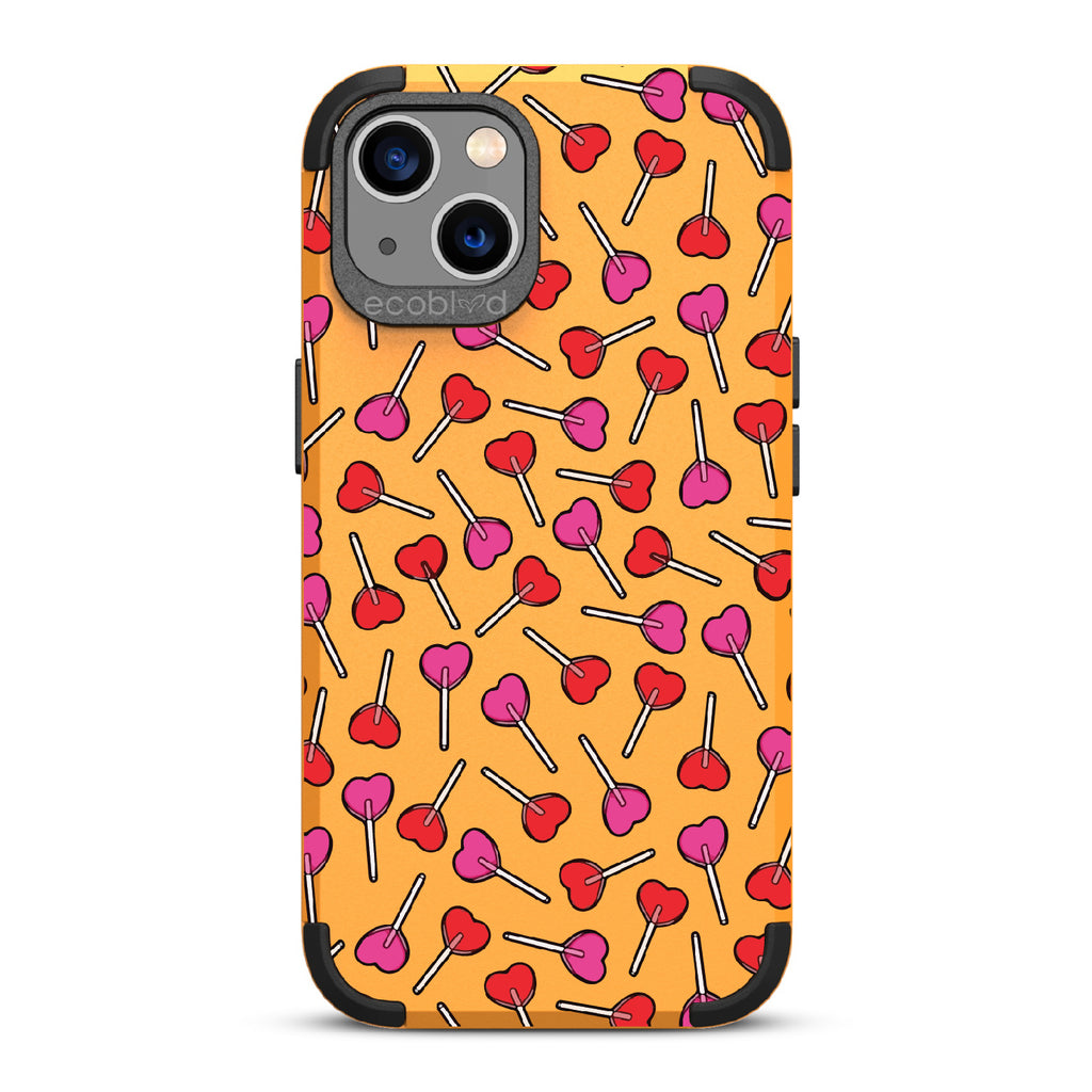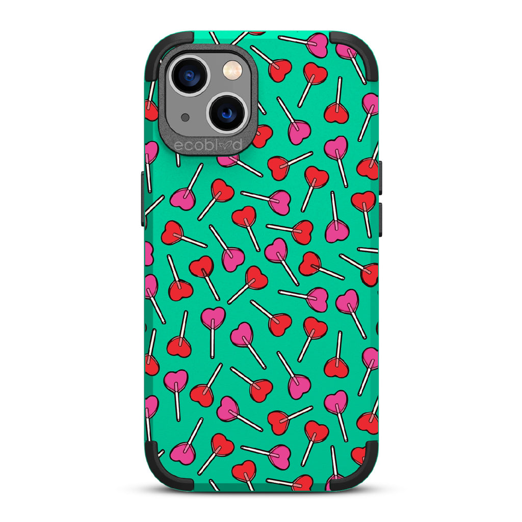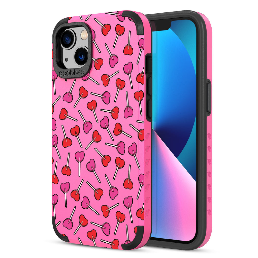 Satisfy your romantic cravings with the Sucker For You design on our Mojave rugged and compostable iPhone 13 case. As sweet heart-shaped lollipops add more sugar to your phone, as a delightful surrender, making it a delectable expression of your affection.