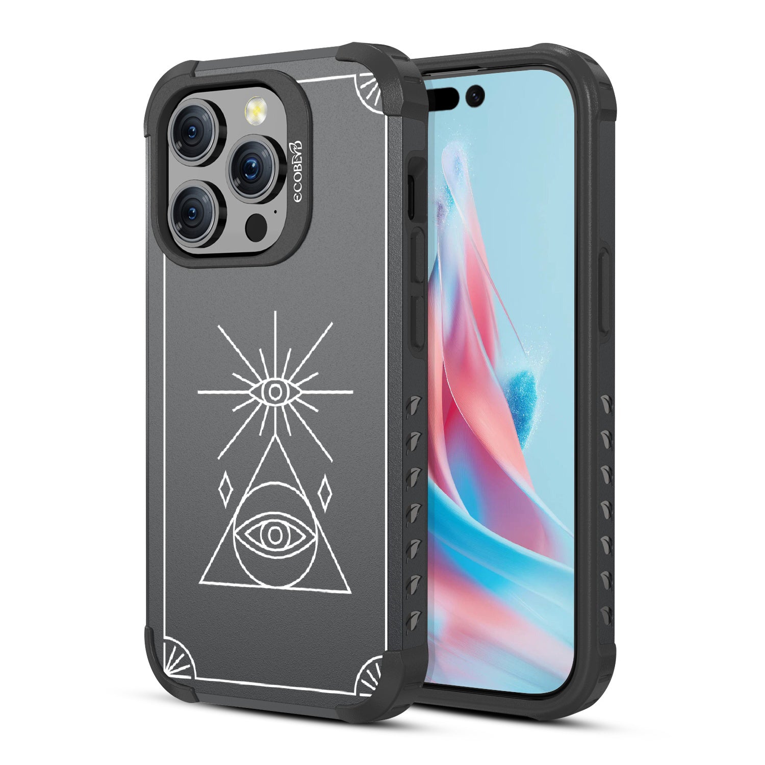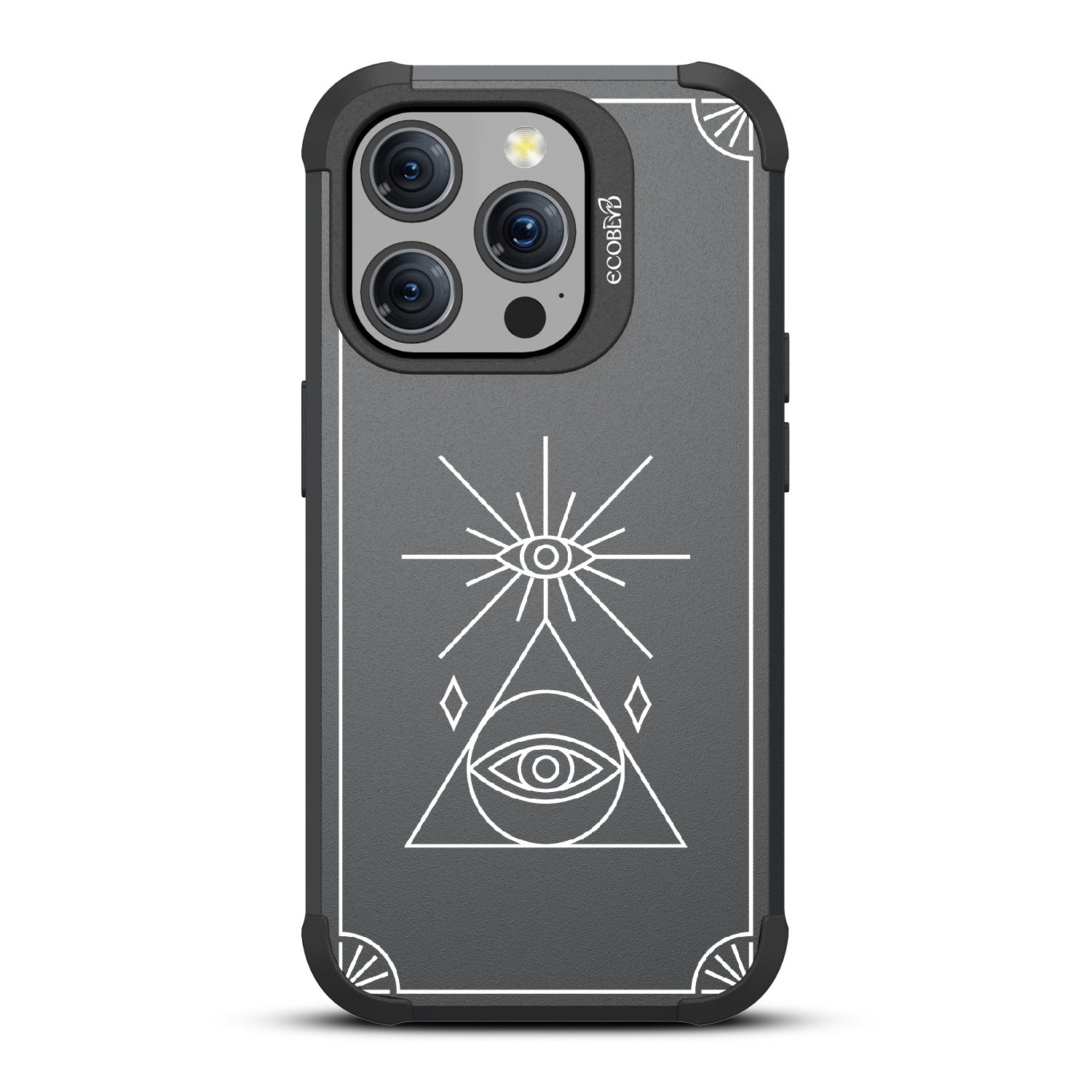 Symbolizing growth, spiritual progress, and clear consciousness, the third eye of the Tarot Card design on our Mojave rugged and compostable iPhone 15 Pro case manifests prosperity and insight.