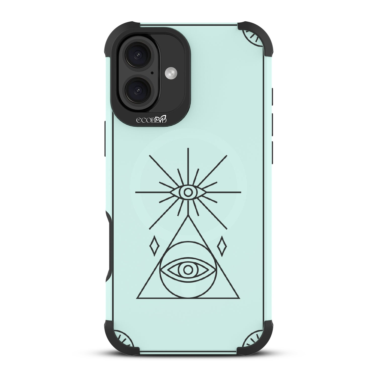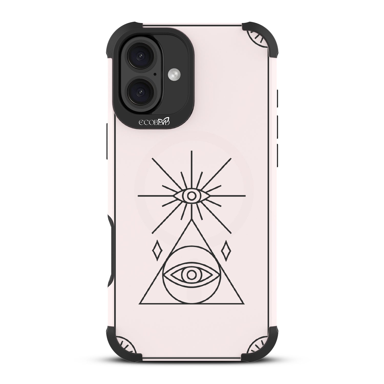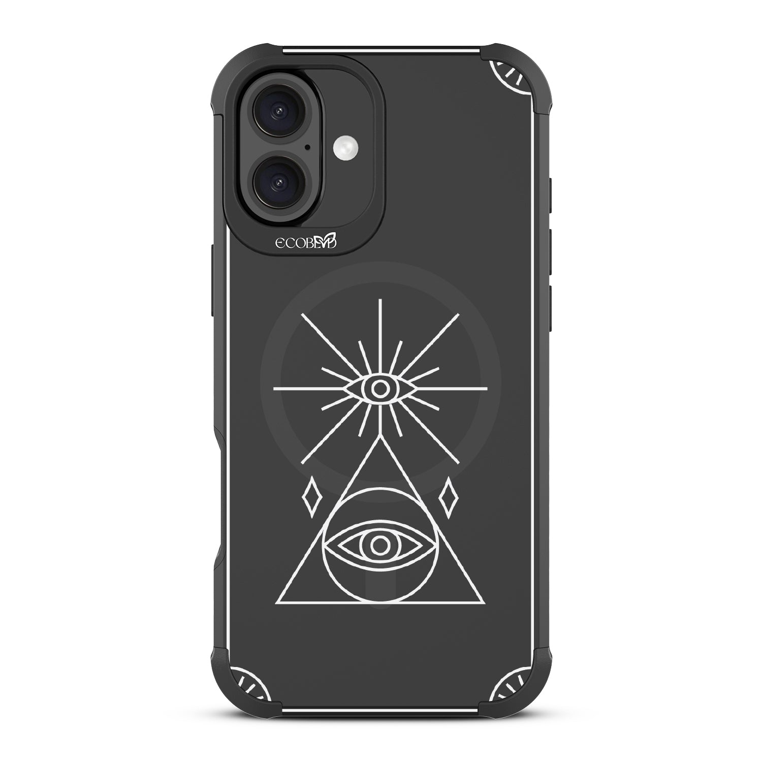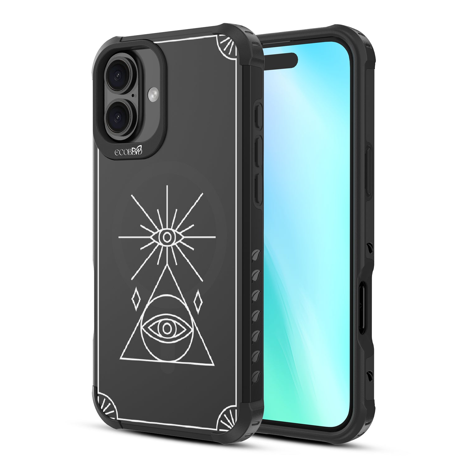 Symbolizing growth, spiritual progress, and clear consciousness, the third eye of the Tarot Card design on ourĀ Reforge rugged iPhone 16 Plus phone case manifests across your phone.