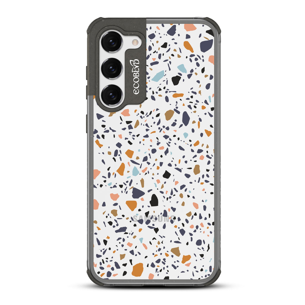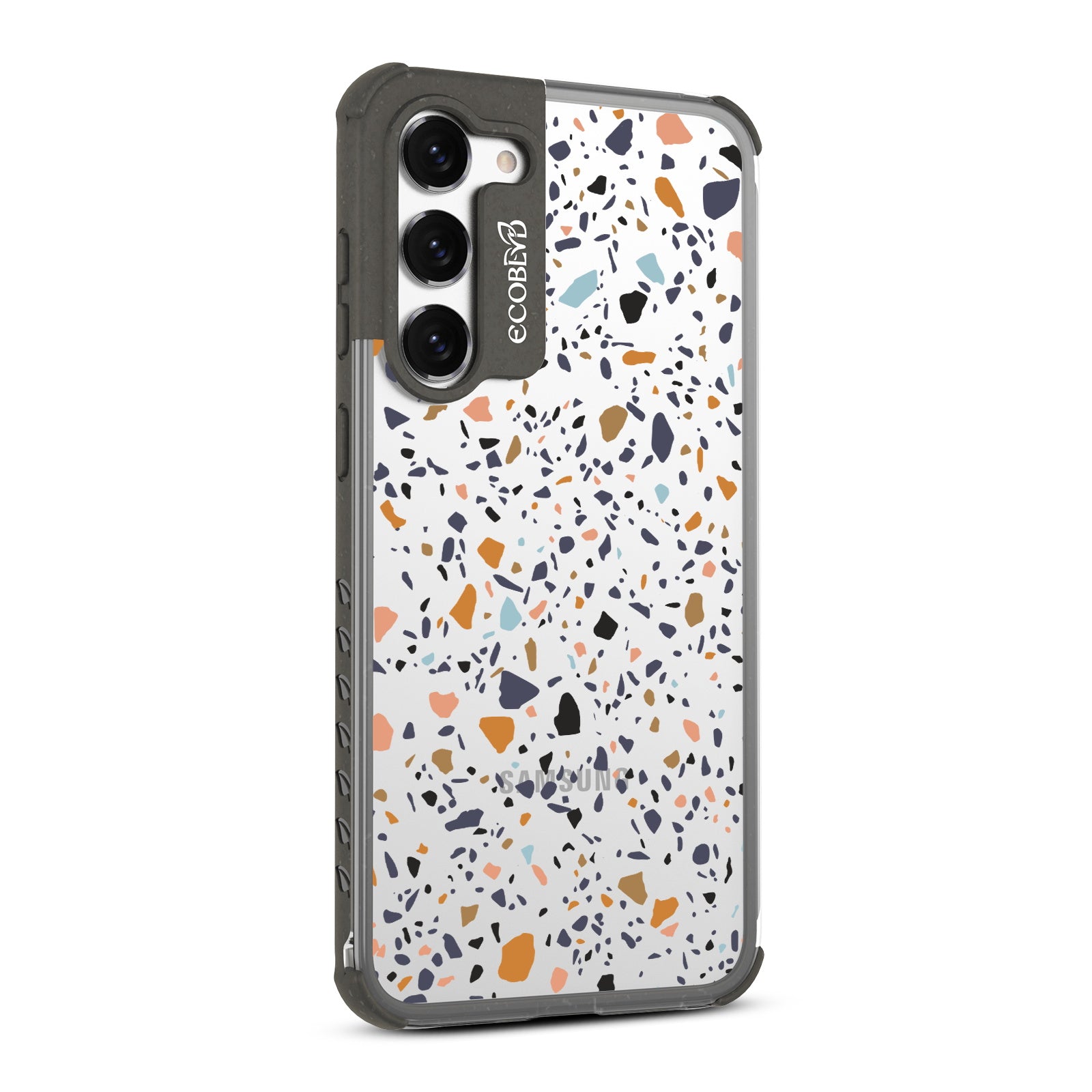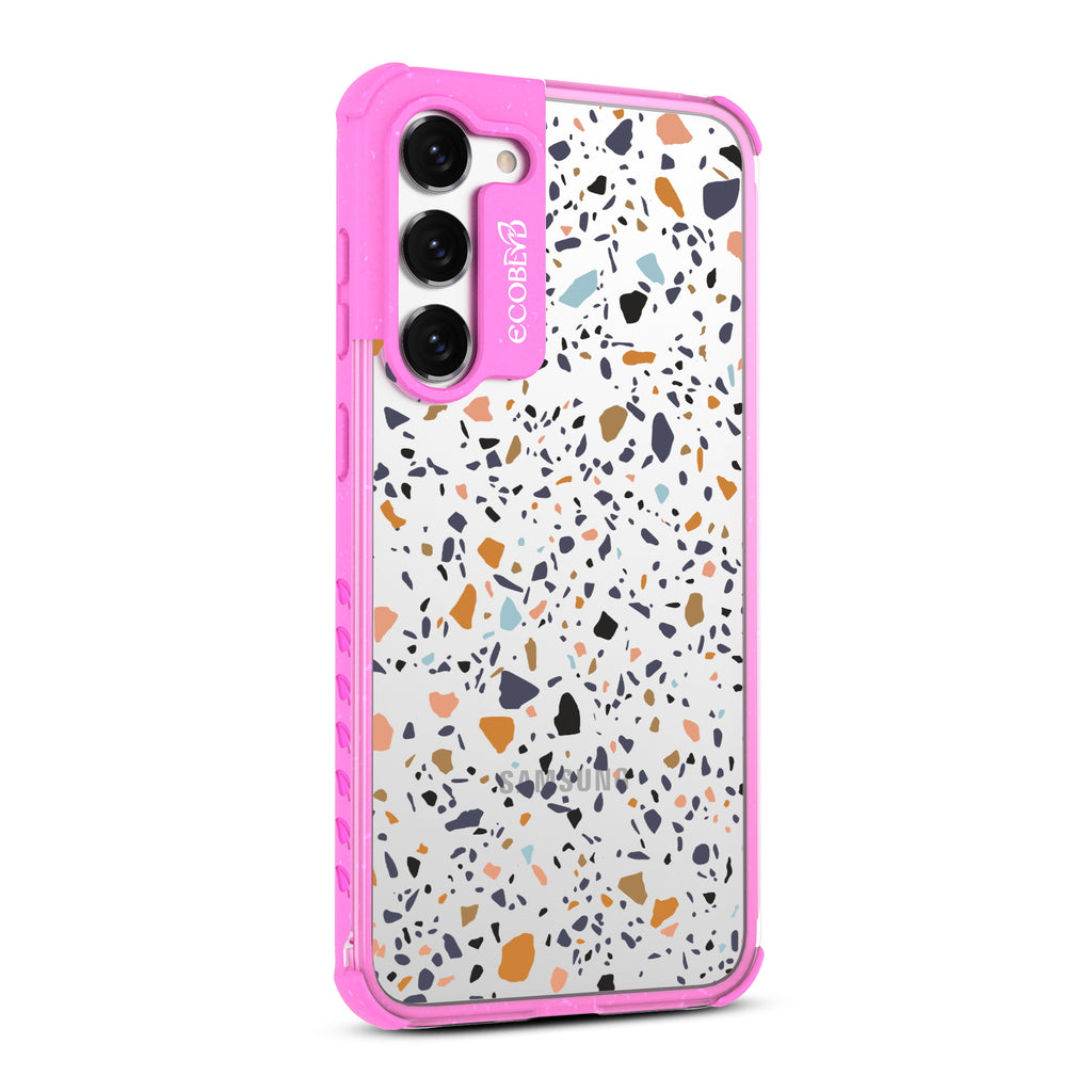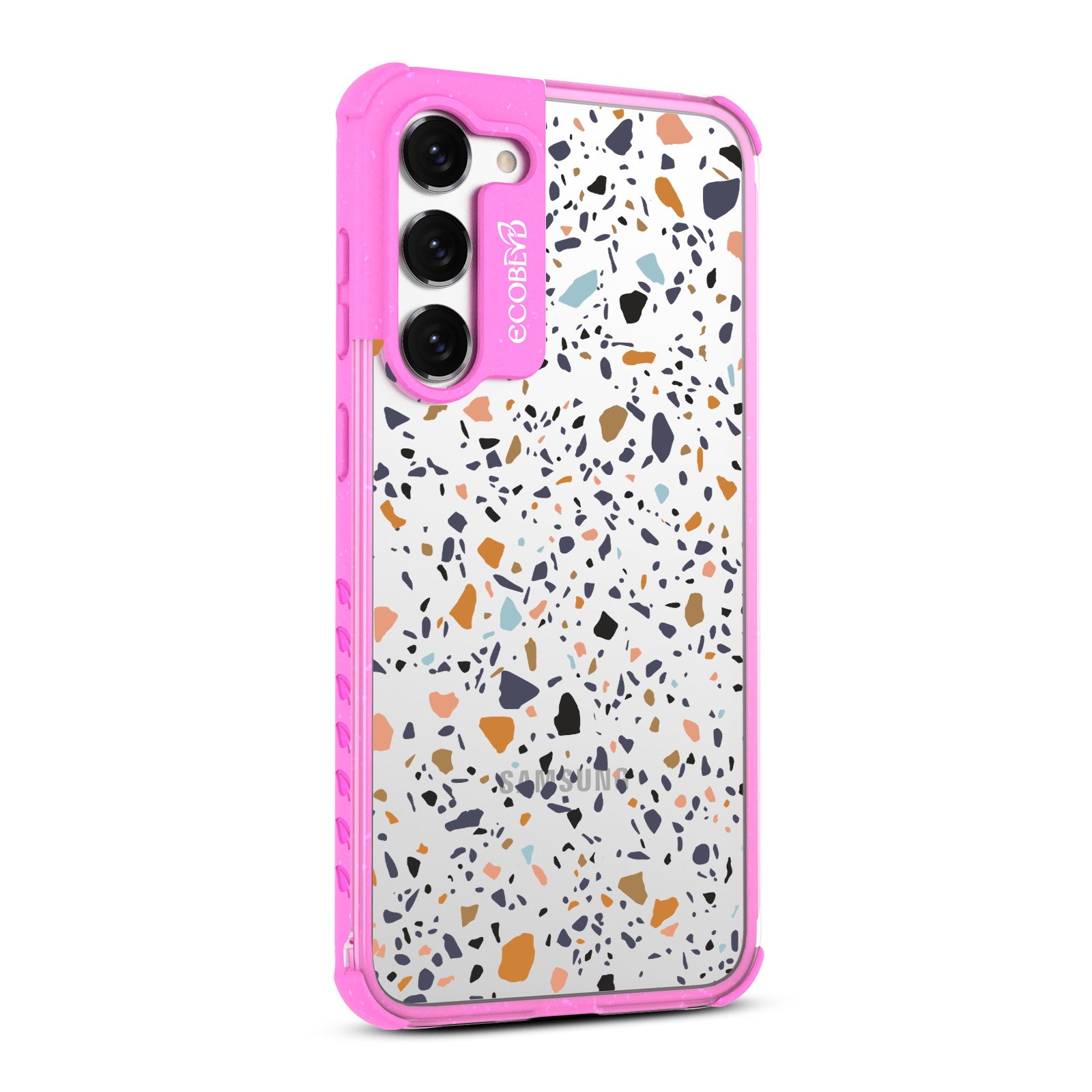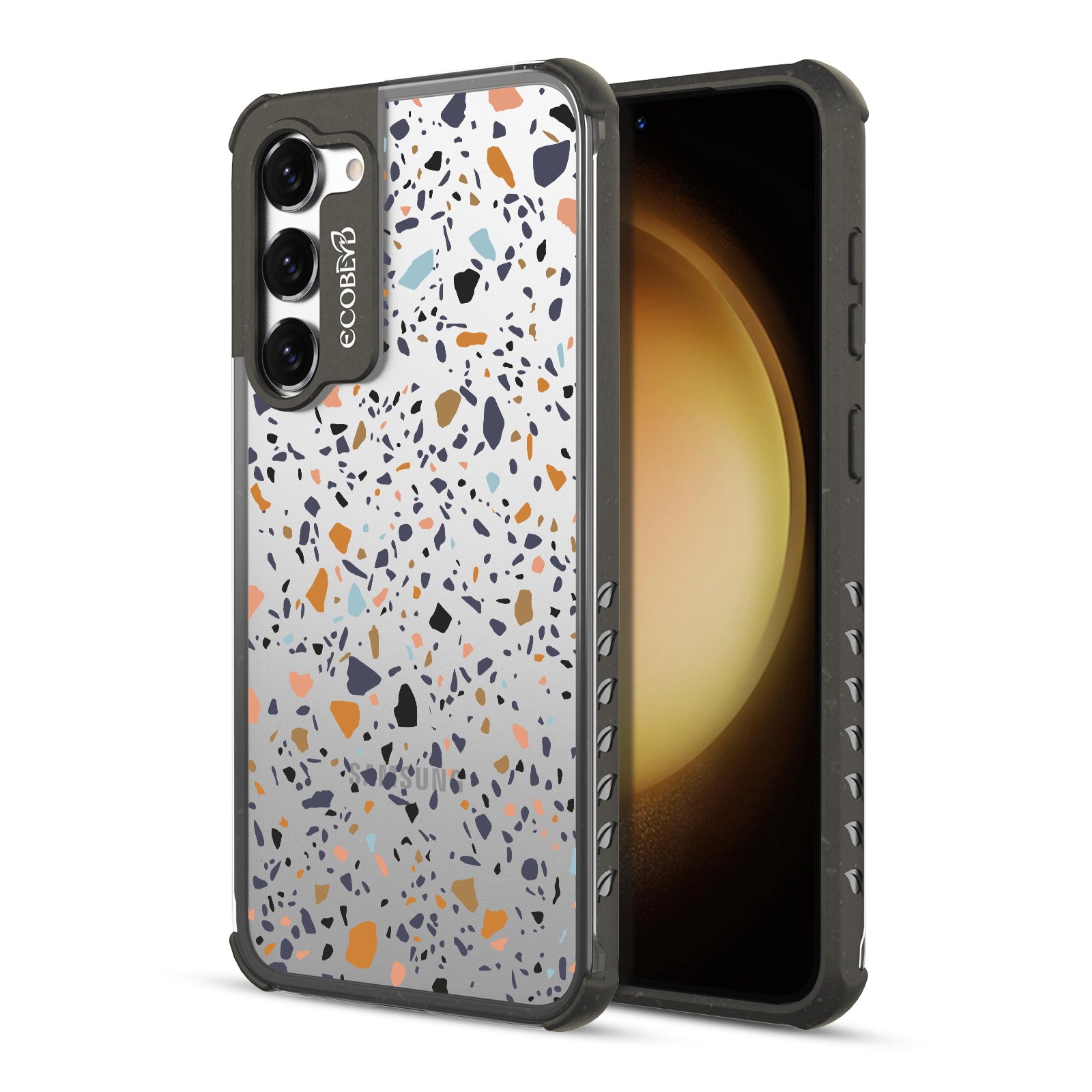 The Terrazzo design on our Laguna clear Galaxy S23 case is like confetti for your Galaxy S23, with its bold kaleidoscopic colors recalling a classic mid-century modern look that has swept fashion and architecture worldwide on five elegant colorways: Midnight Black, Cascade Blue, Foliage Green, Illuminating Yellow, and Wildflower Pink.
