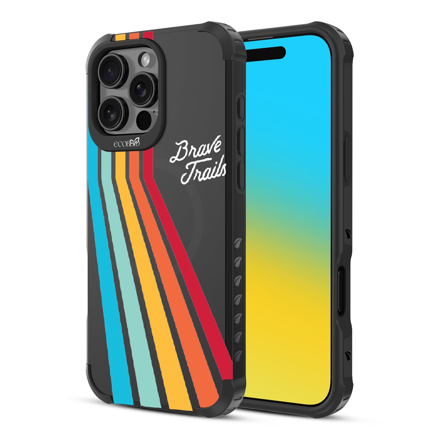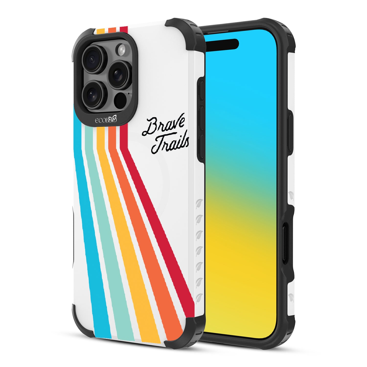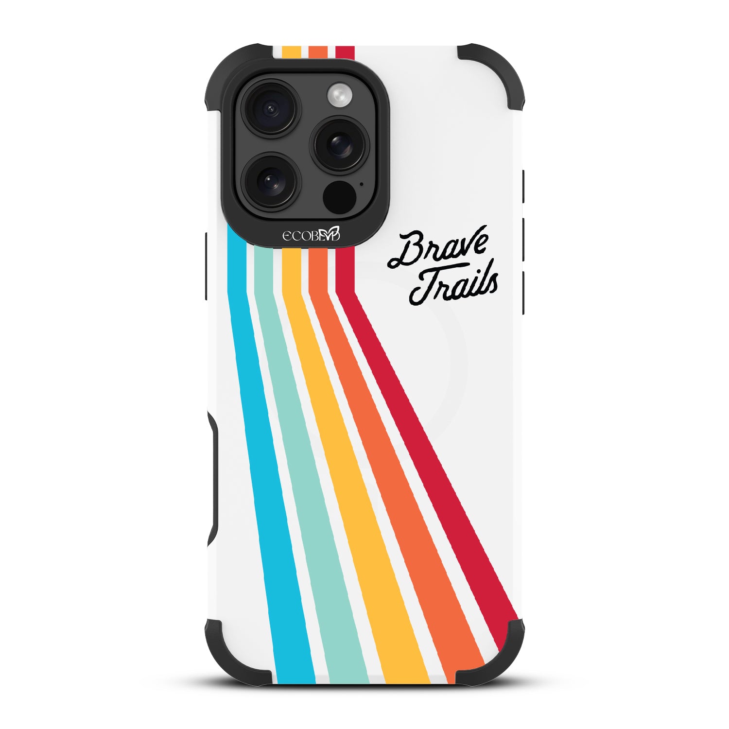 Forge your own path with the Trailblazer x Brave Trails Reforge rugged iPhone 16 Pro Max phone case. Its design celebrates the spirit of adventure and fearlessness. The intertwining trails, painted in a vibrant spectrum of rainbow colors, symbolize the diverse journeys we embark upon in life. With the Brave Trails logo shining brightly at its core, this design serves as a beacon of inspiration, encouraging you to break barriers and blaze a trail that is uniquely yours.