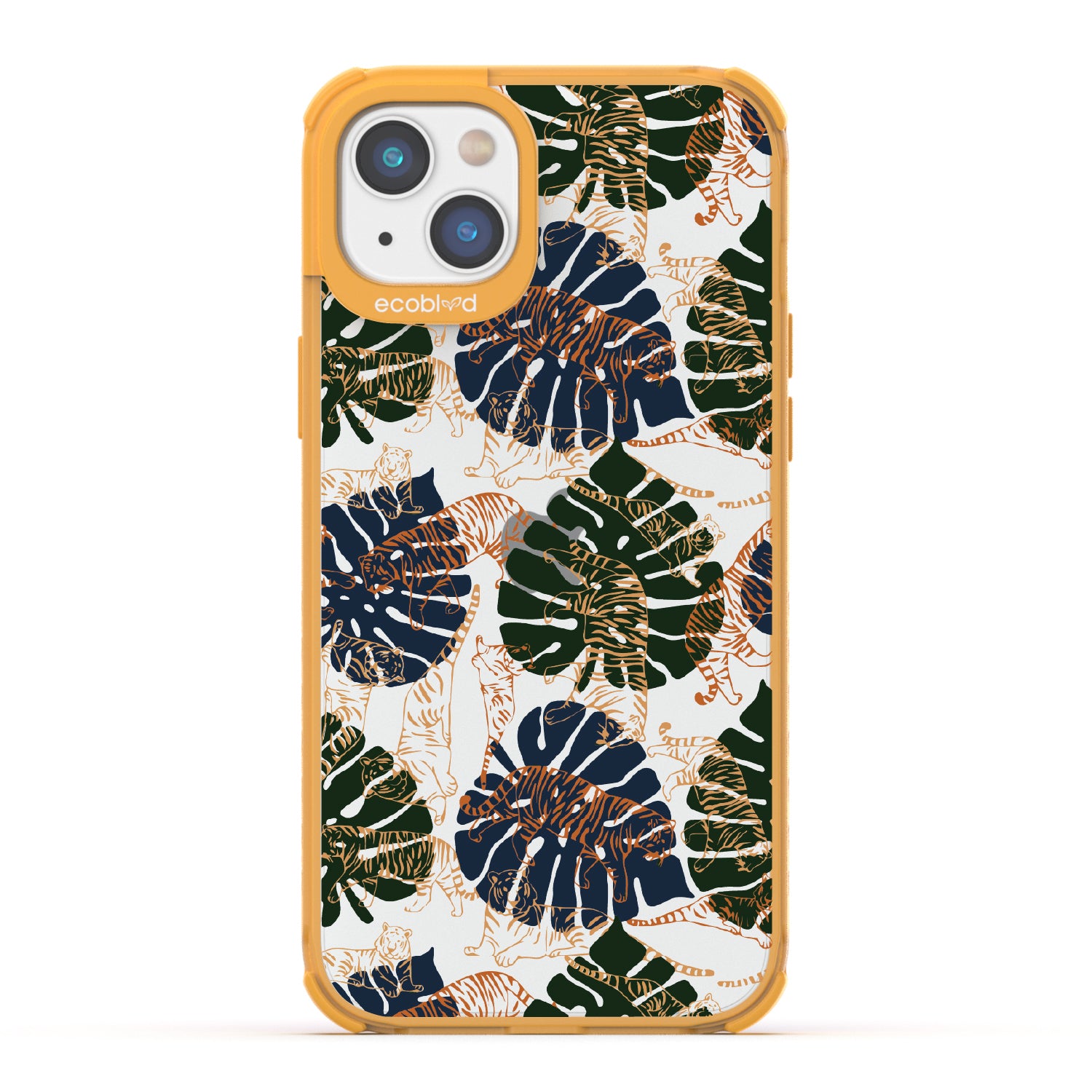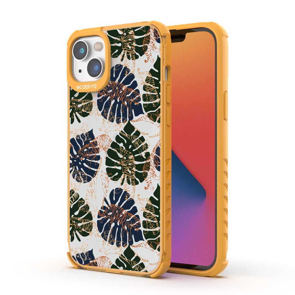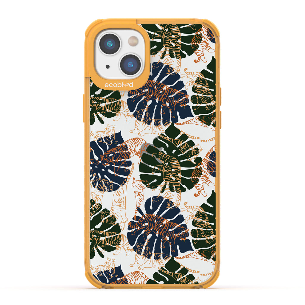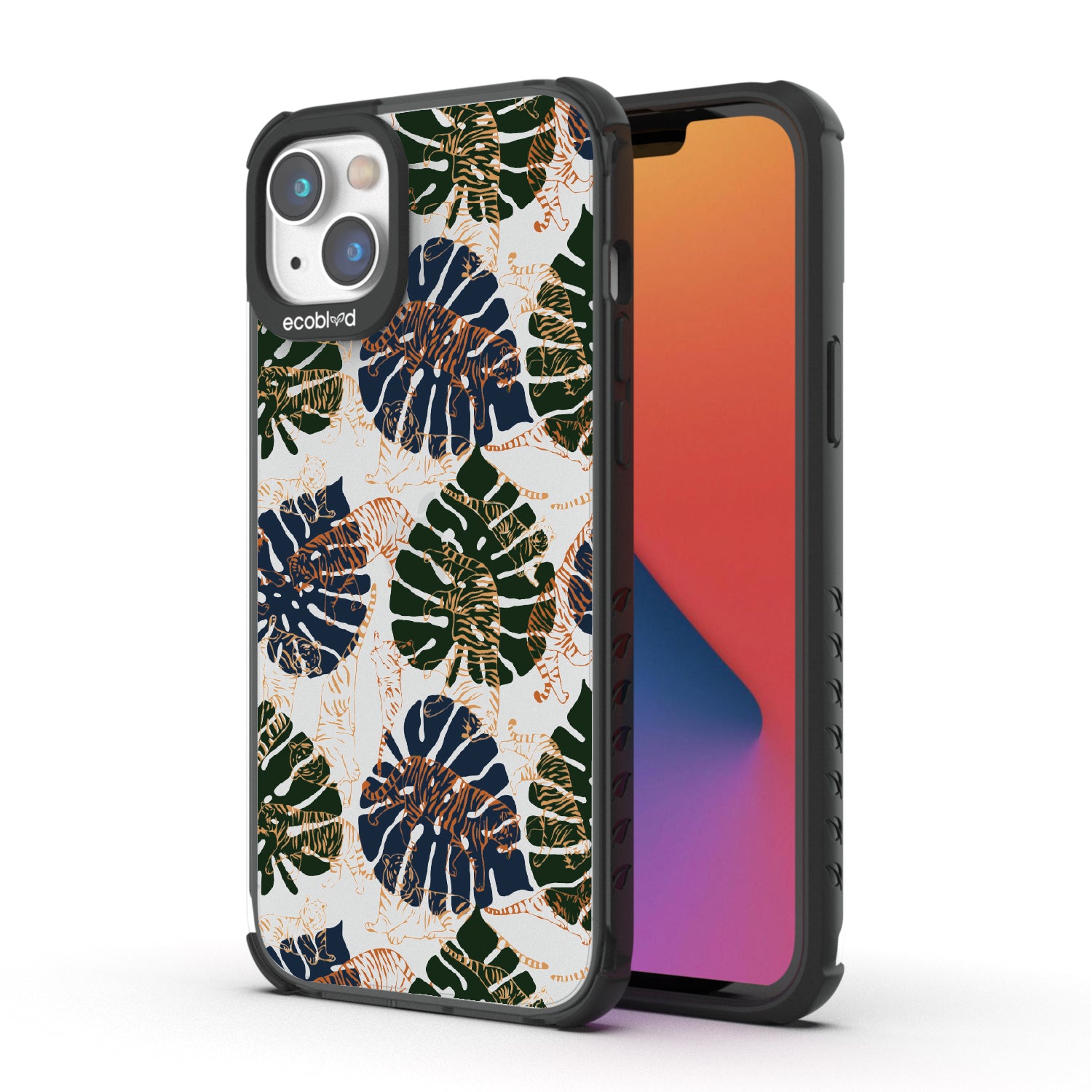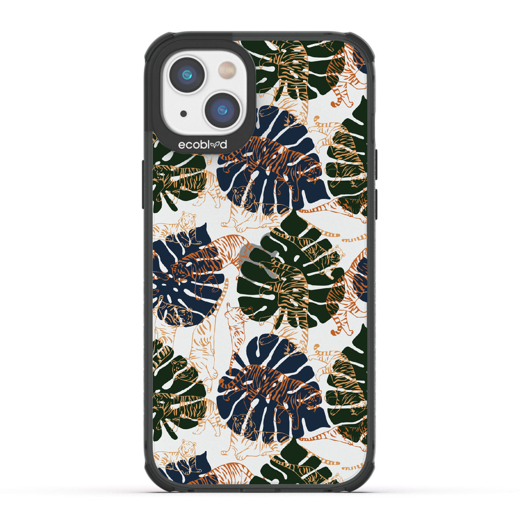 Immerse yourself in the vivid world of Tropic Roar exclusively crafted for the Laguna clear iPhone 14 Plus. This wild phone case design transports you to the heart of the jungle's allure so you can enjoy impeccable style and protection, all while supporting ocean conservation efforts. Make a roaring impression with our Tropic Roar phone case design, where the untamed allure of the jungle meets your vibrant personality. Let the tropical foliage and bold tiger silhouettes amplify your style game and set you apart as a force to be reckoned with. With this phone case, you'll be strutting confidently, turning heads, and leaving everyone in awe of your fierce fashion sense.