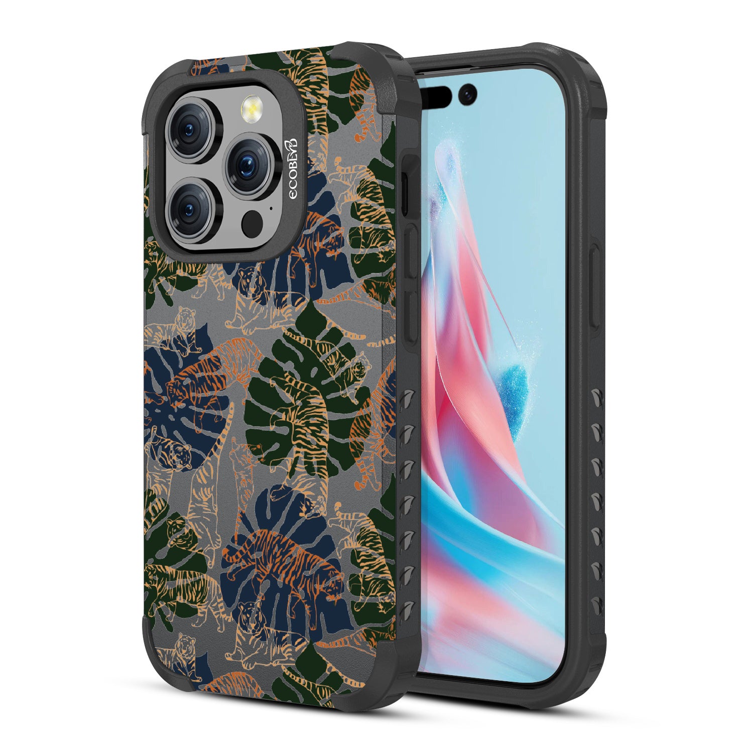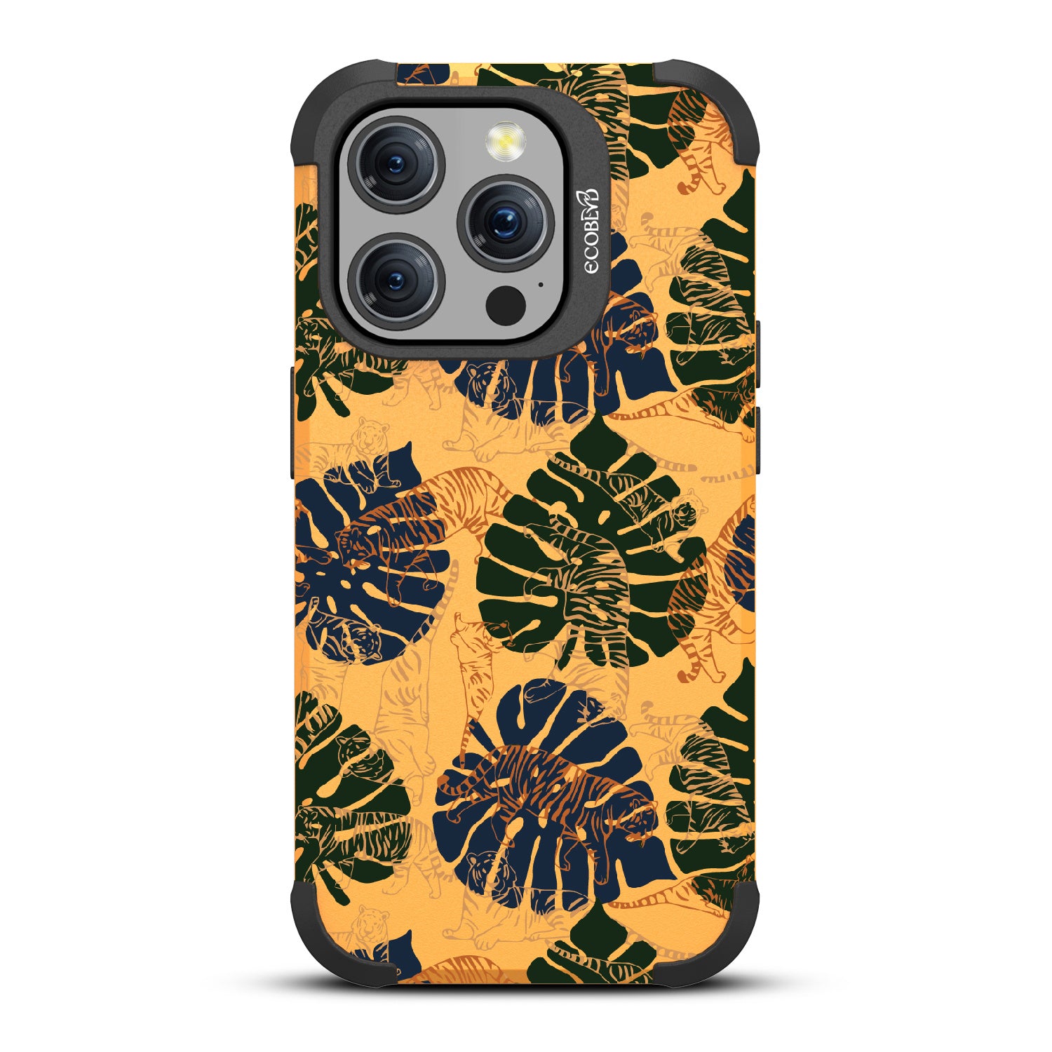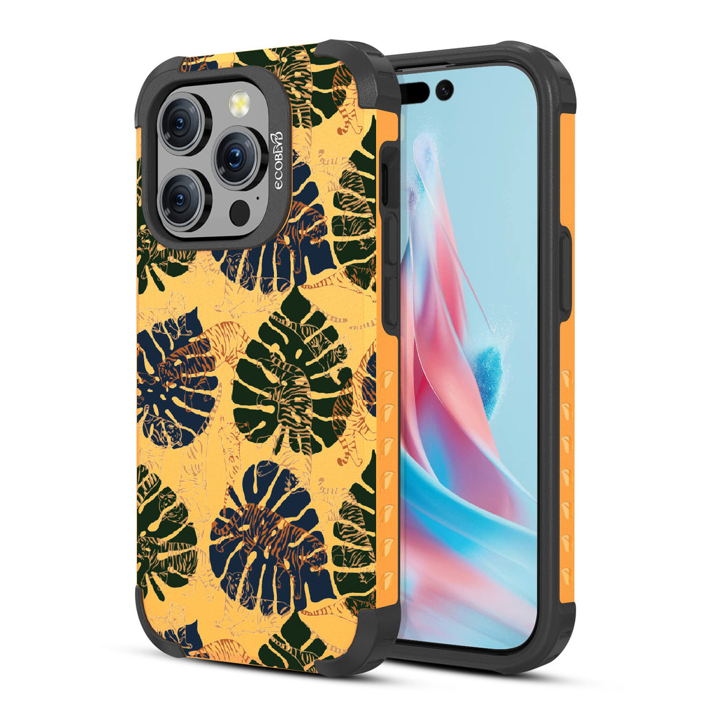 Immerse yourself in the vivid world of Tropic Roar design on our Mojave rugged and compostable iPhone 15 Pro case. This wild phone case design transports you to the heart of the jungle's allure so you can enjoy impeccable style and protection, all while supporting ocean conservation efforts. Make a roaring impression with our Tropic Roar phone case design, where the untamed allure of the jungle meets your vibrant personality. Let the tropical foliage and bold tiger silhouettes amplify your style game and set you apart as a force to be reckoned with. With this phone case, you'll be strutting confidently, turning heads, and leaving everyone in awe of your fierce fashion sense.